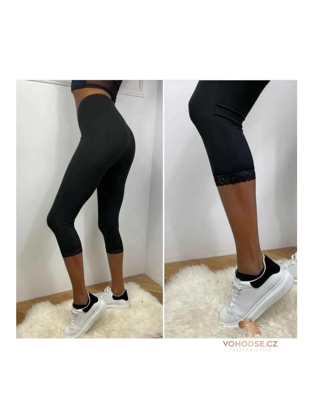 - Dámské 3/4 legíny - celé černé zdobeny krajkou