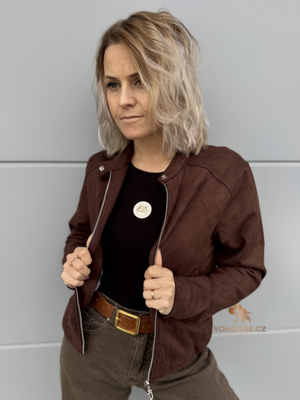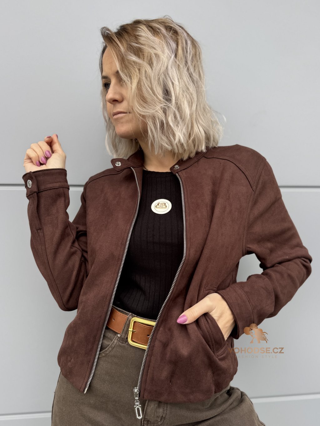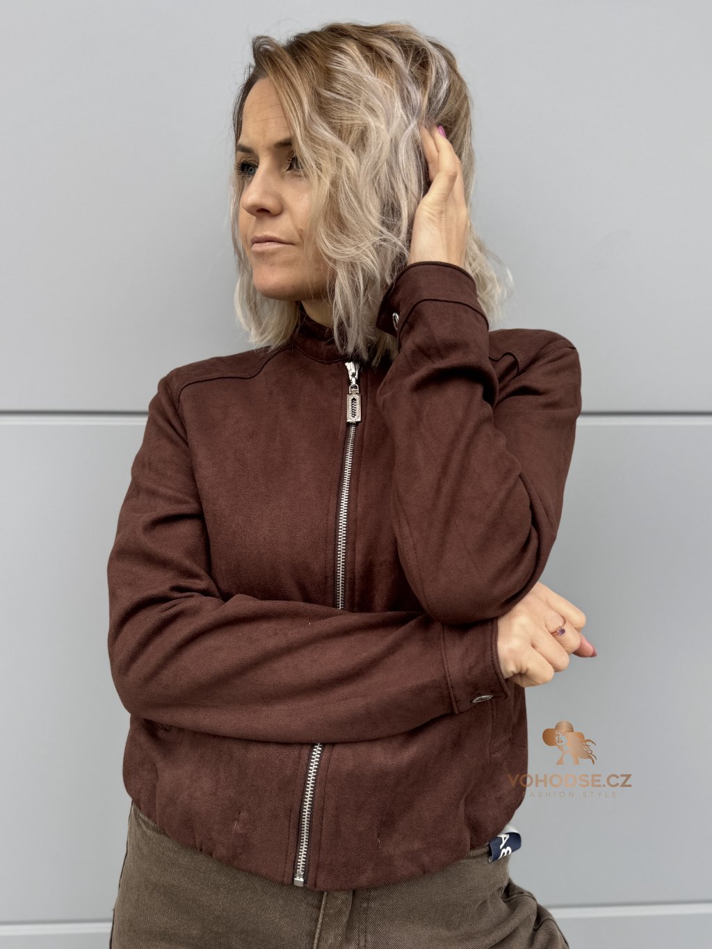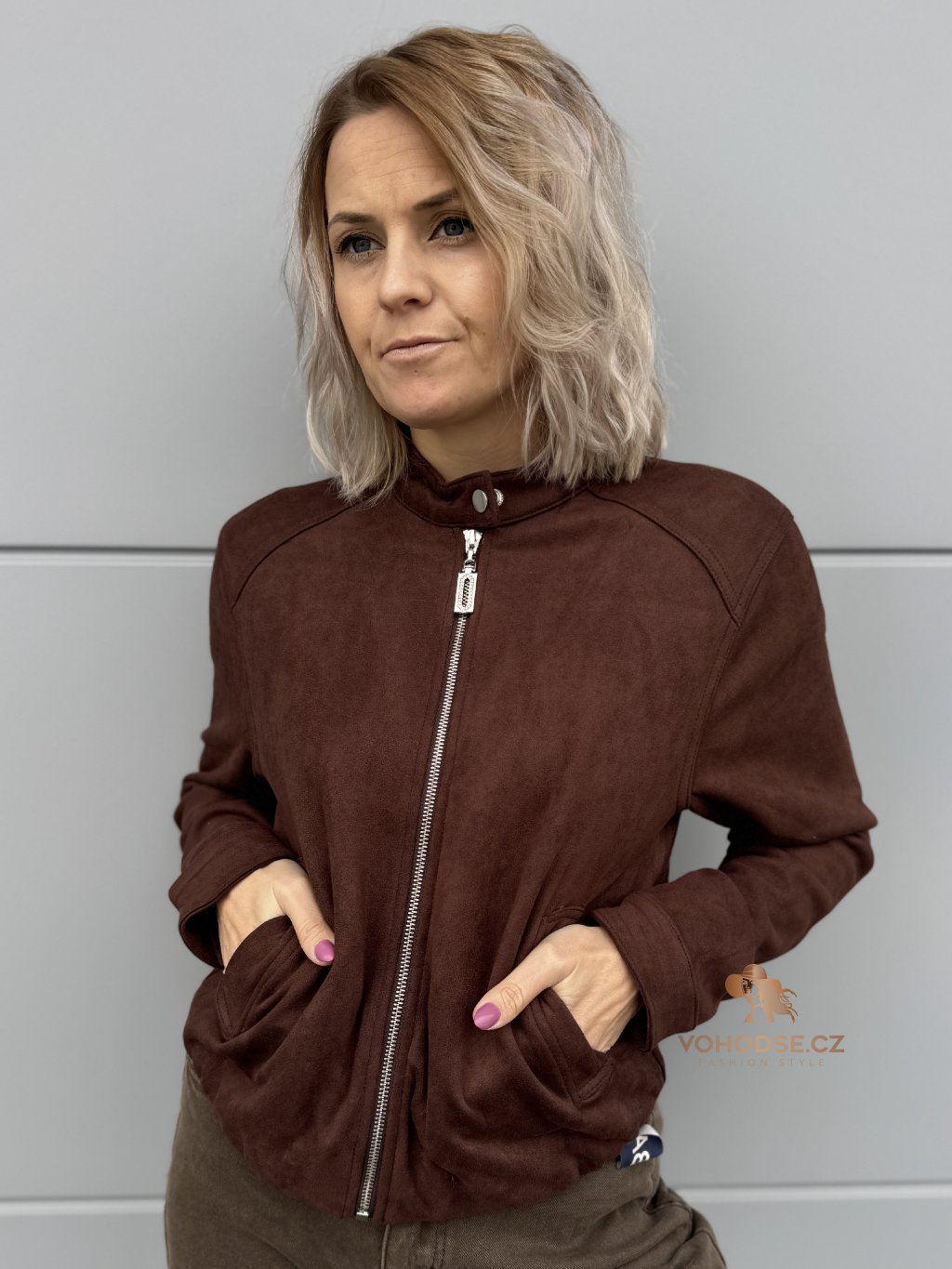 - Dámská bunda z jemného materiálu imitující broušenou kůži