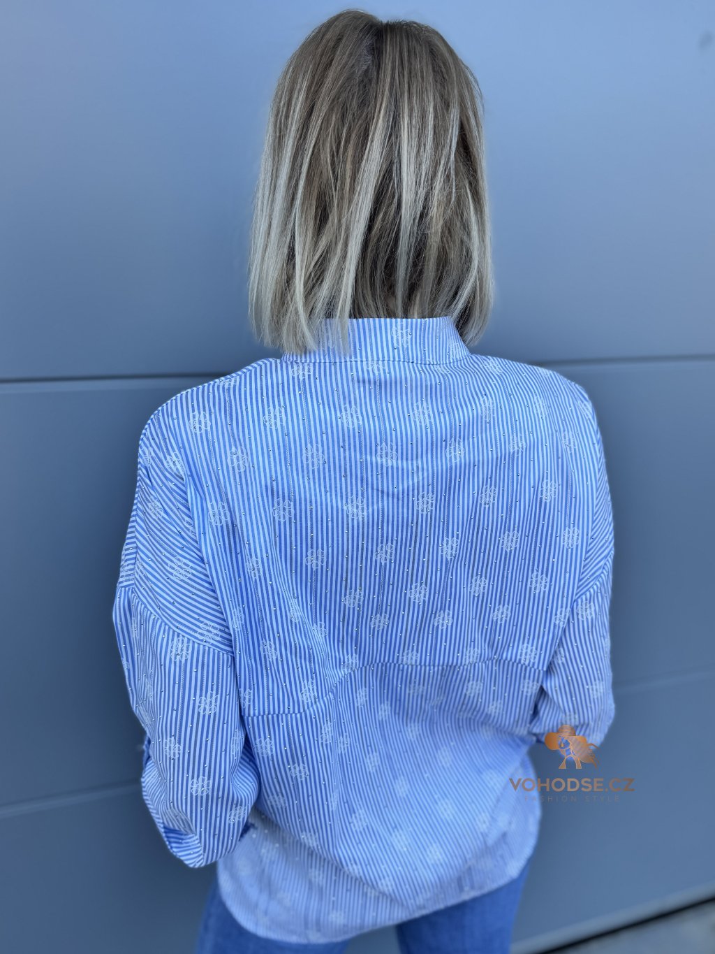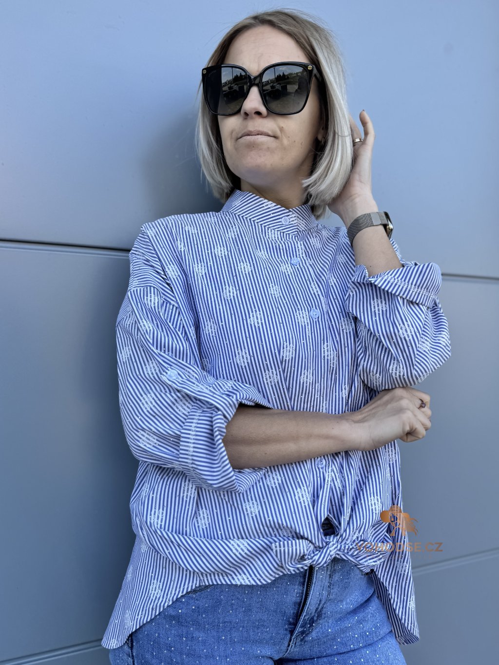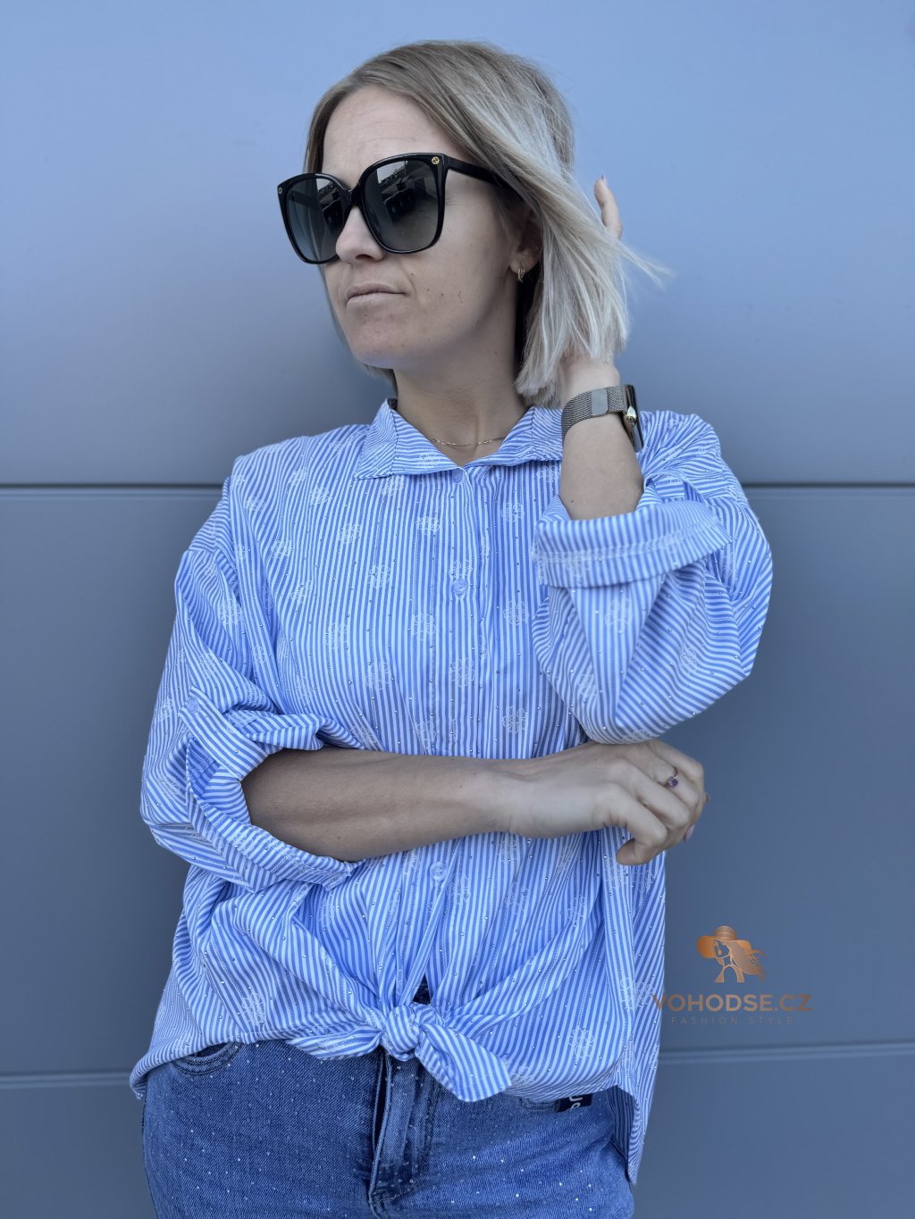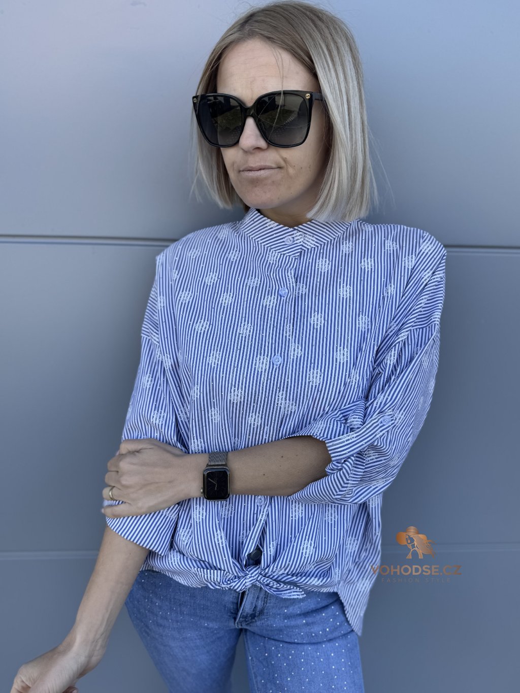 Elegantní košile, která by neměla chybět v žádném šatníku. Jemný pruže doplněný decentním vzorem a jemnými kamínky, působí svěže a stylově, zatímco volnější střih zaručuje maximální pohodlí. Lehký a příjemný materiál je ideální na celodenní nošení. Košili můžete nosit klasicky zapnutou, volně přes kalhoty nebo stylově uvázanou pro ležérní Look.