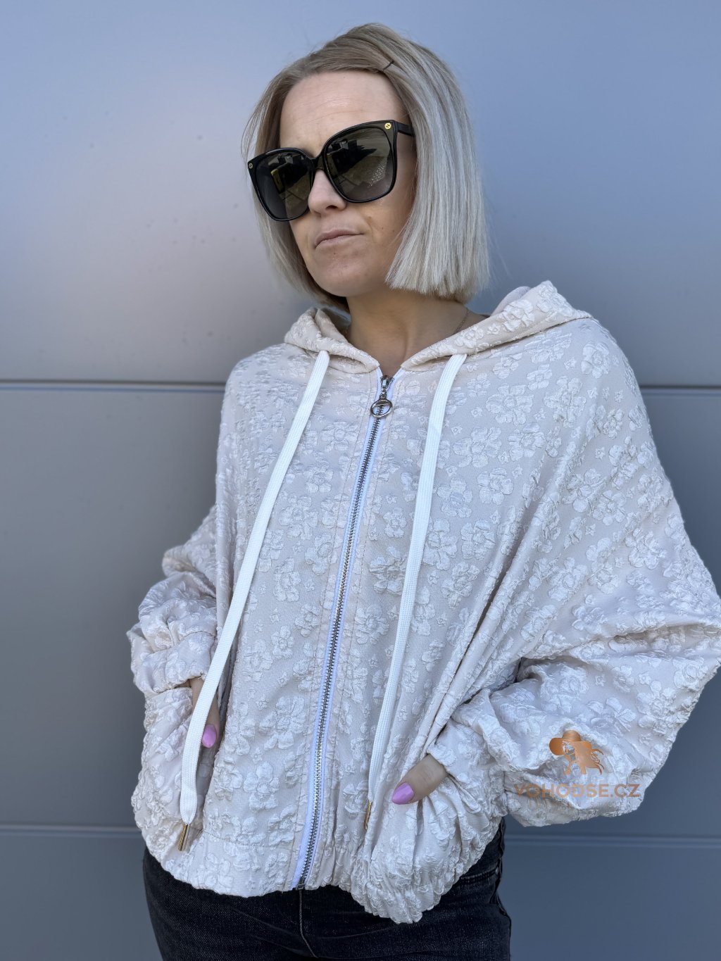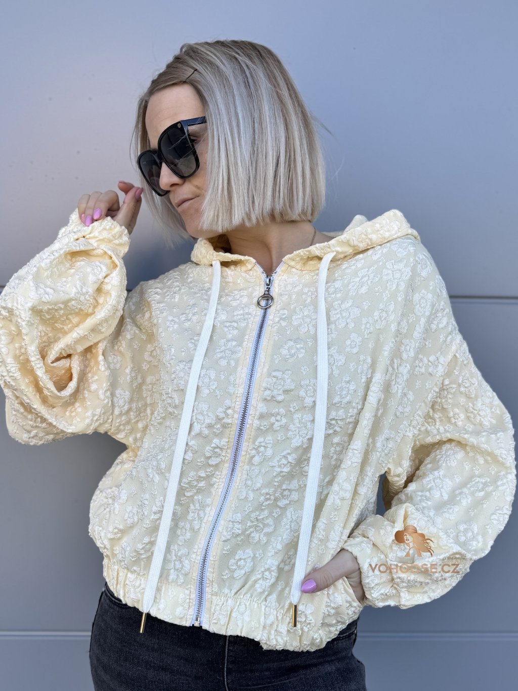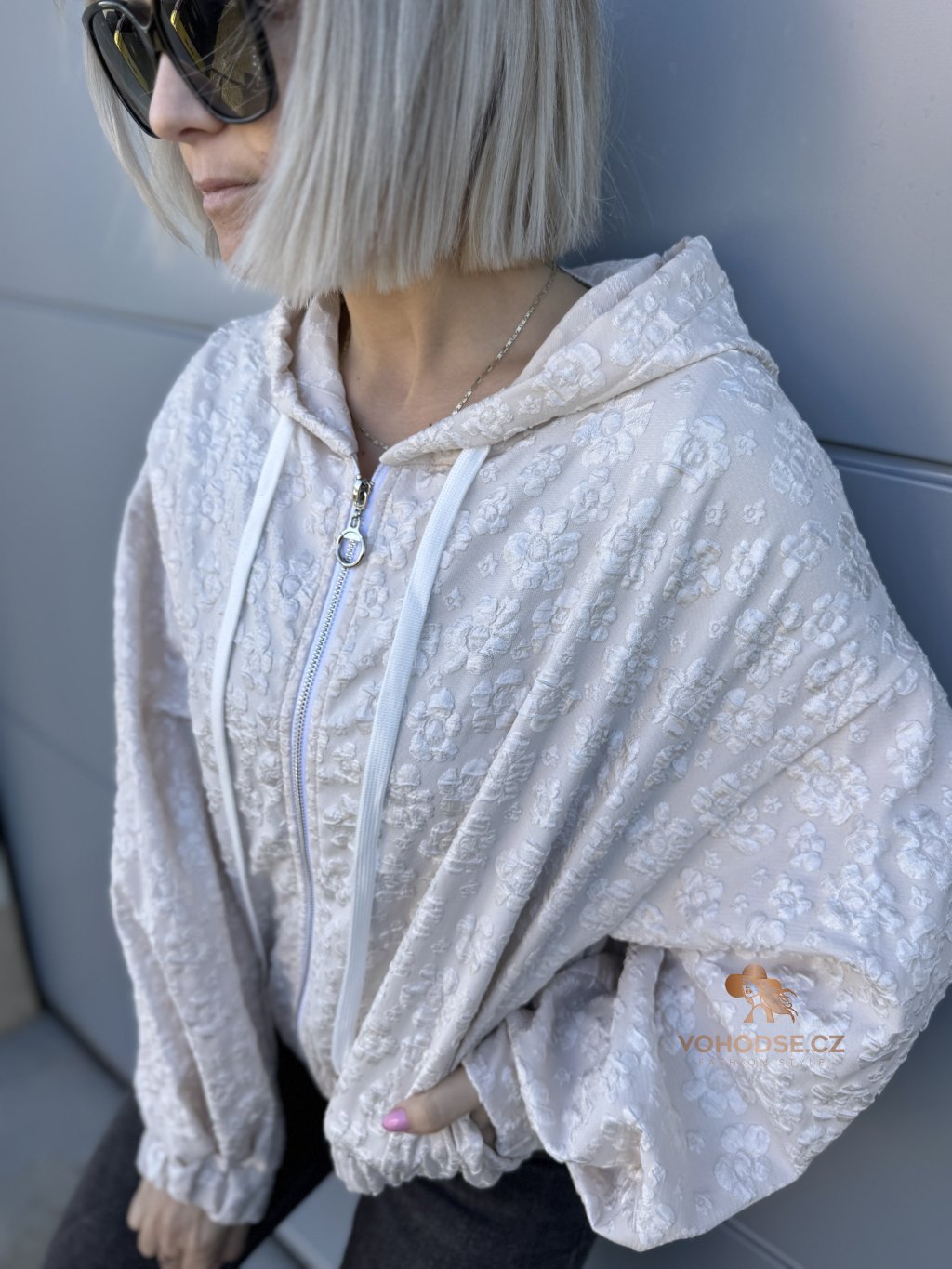 Stylová a originální mikinová bunda, která zaujme na první pohled jemnou plastickou květinovou strukturou. Lehký materiál, pohodlný střih a praktické detaily z nic dělají ideální kousek na jaro, léto i chladnější večery. Zapínání na zip, kapuce se šňůrkami a pružné zakončená rukávu i spodního lemu zajišťují maximální komfort při nošení.