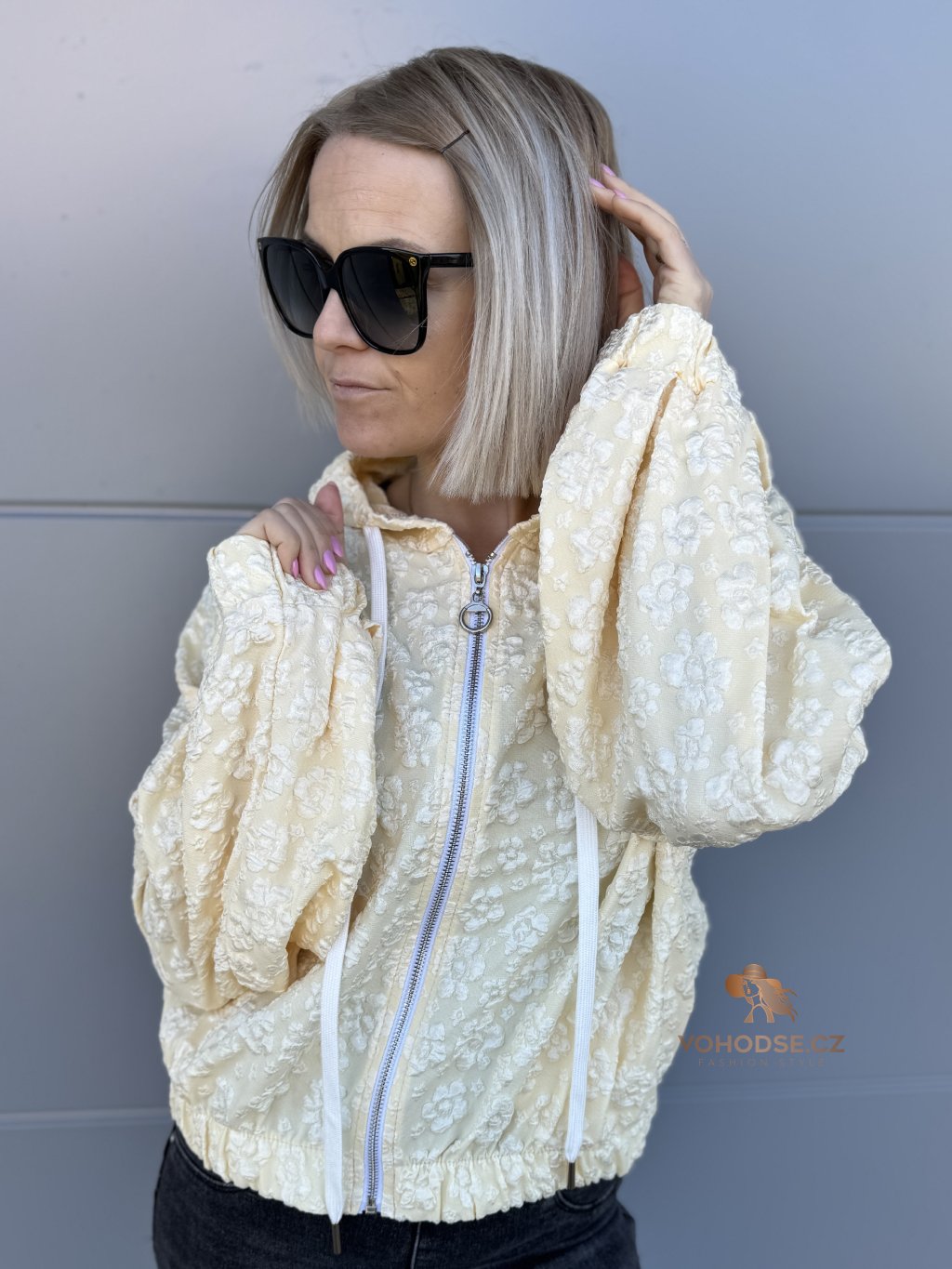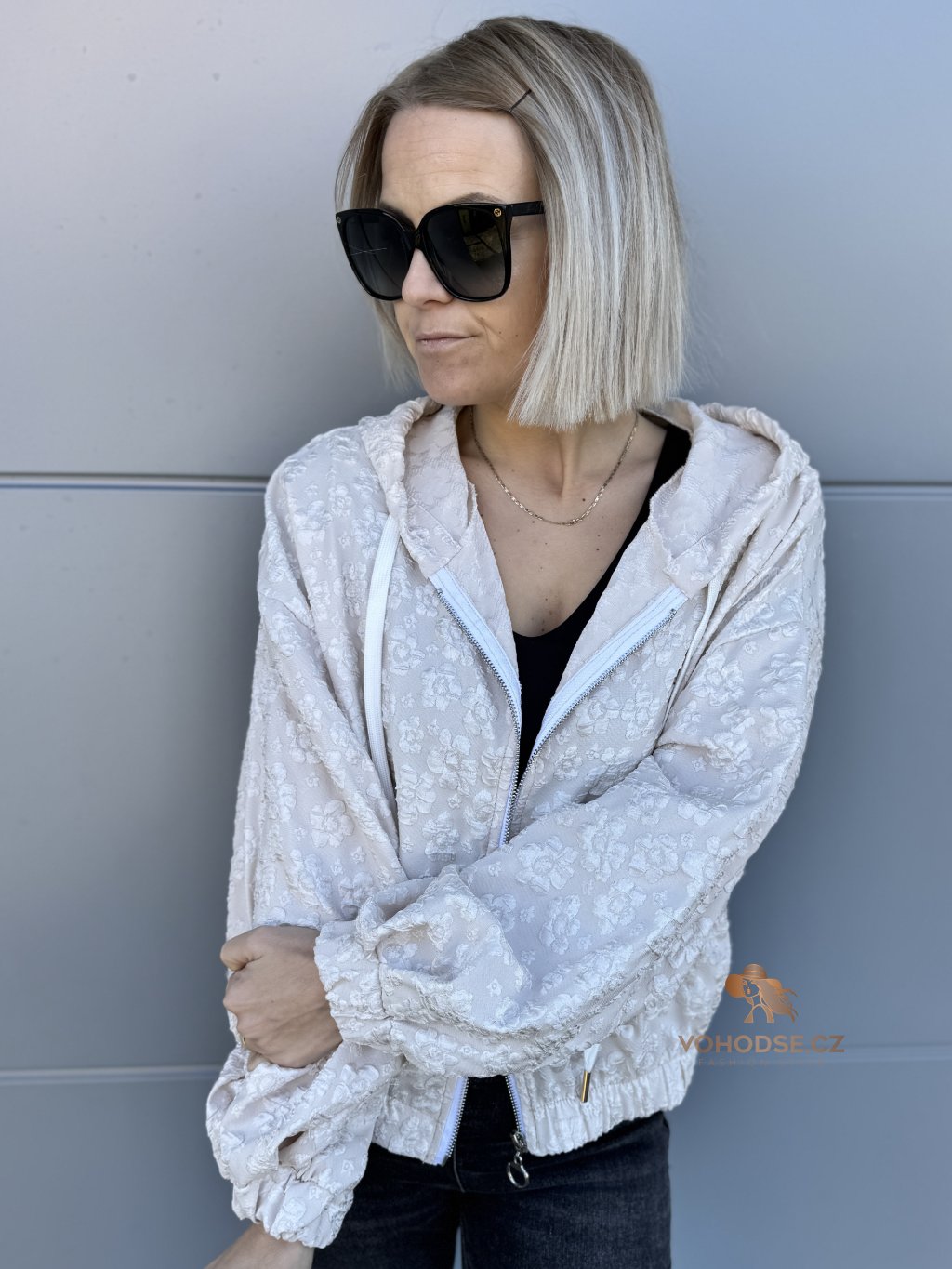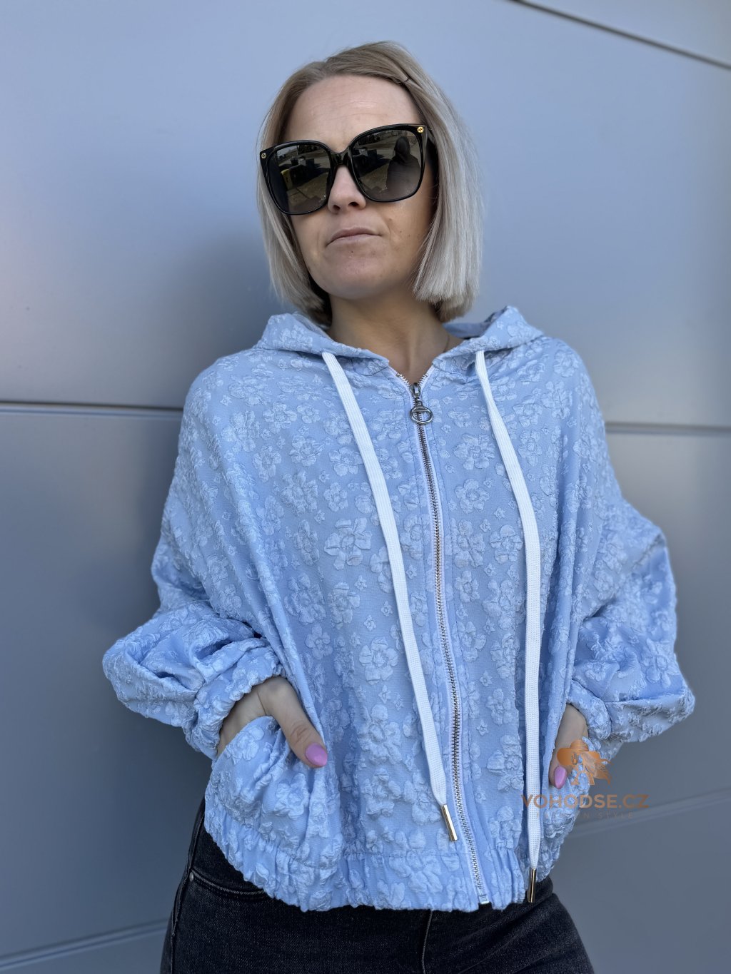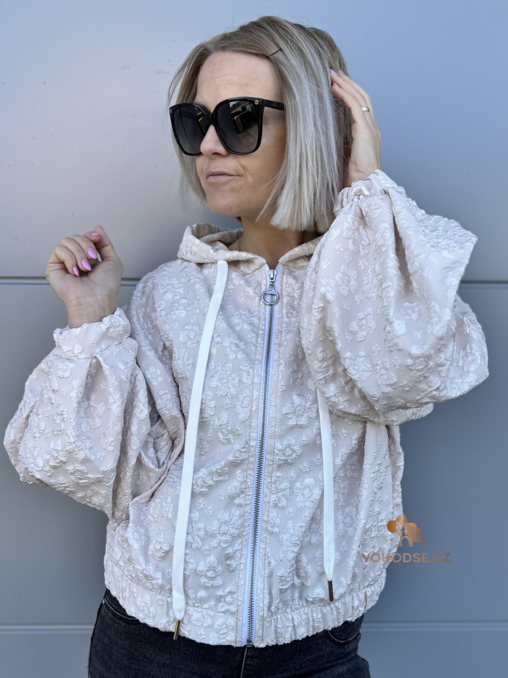 Stylová a originální mikinová bunda, která zaujme na první pohled jemnou plastickou květinovou strukturou. Lehký materiál, pohodlný střih a praktické detaily z nic dělají ideální kousek na jaro, léto i chladnější večery. Zapínání na zip, kapuce se šňůrkami a pružné zakončená rukávu i spodního lemu zajišťují maximální komfort při nošení.