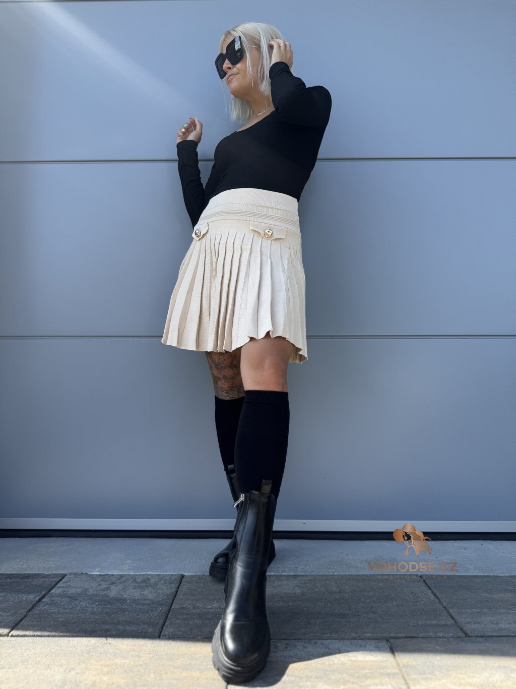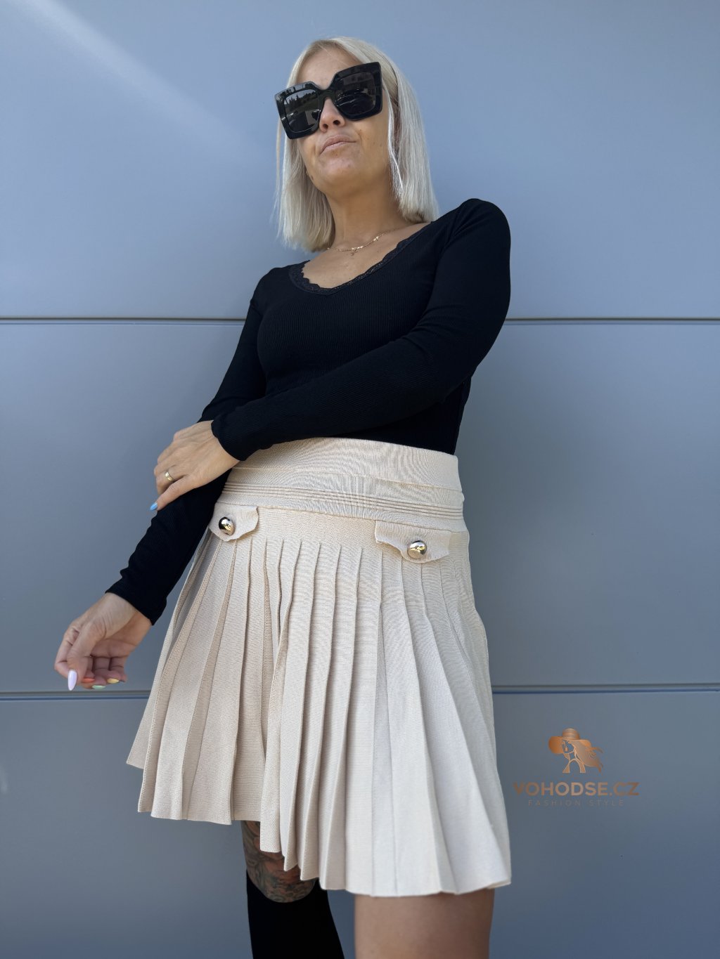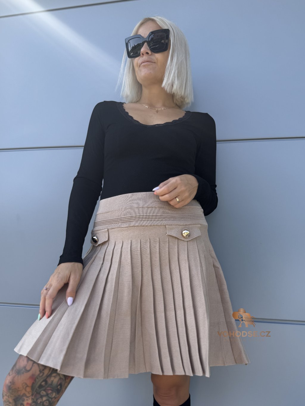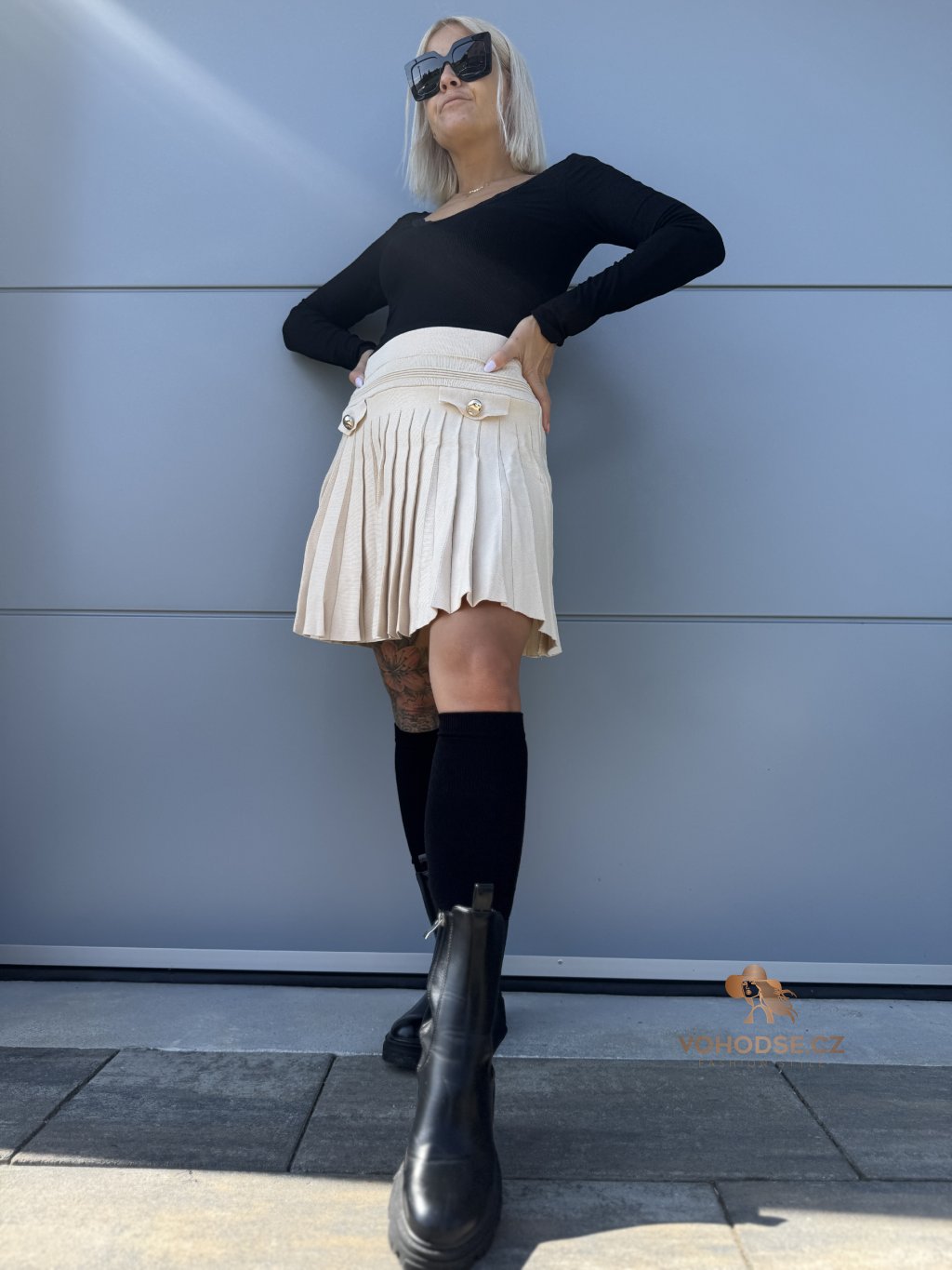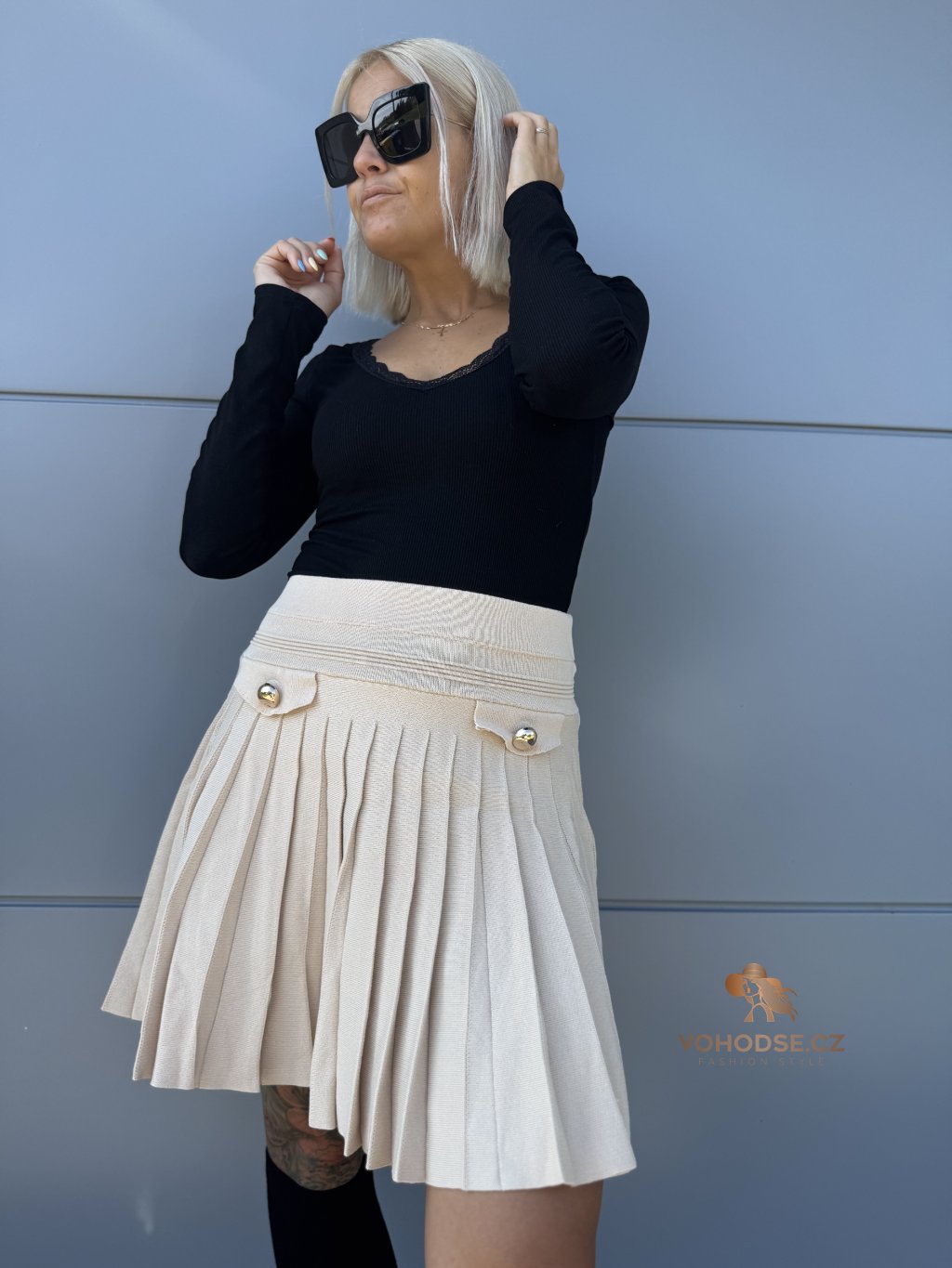 - Překládaná, v pase na gumu, zdobena zlatými knoflíky