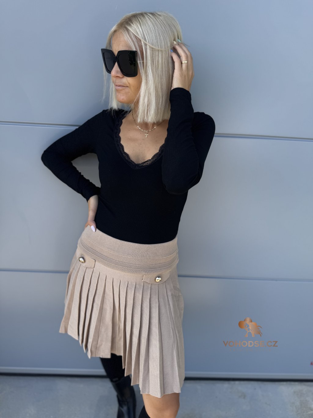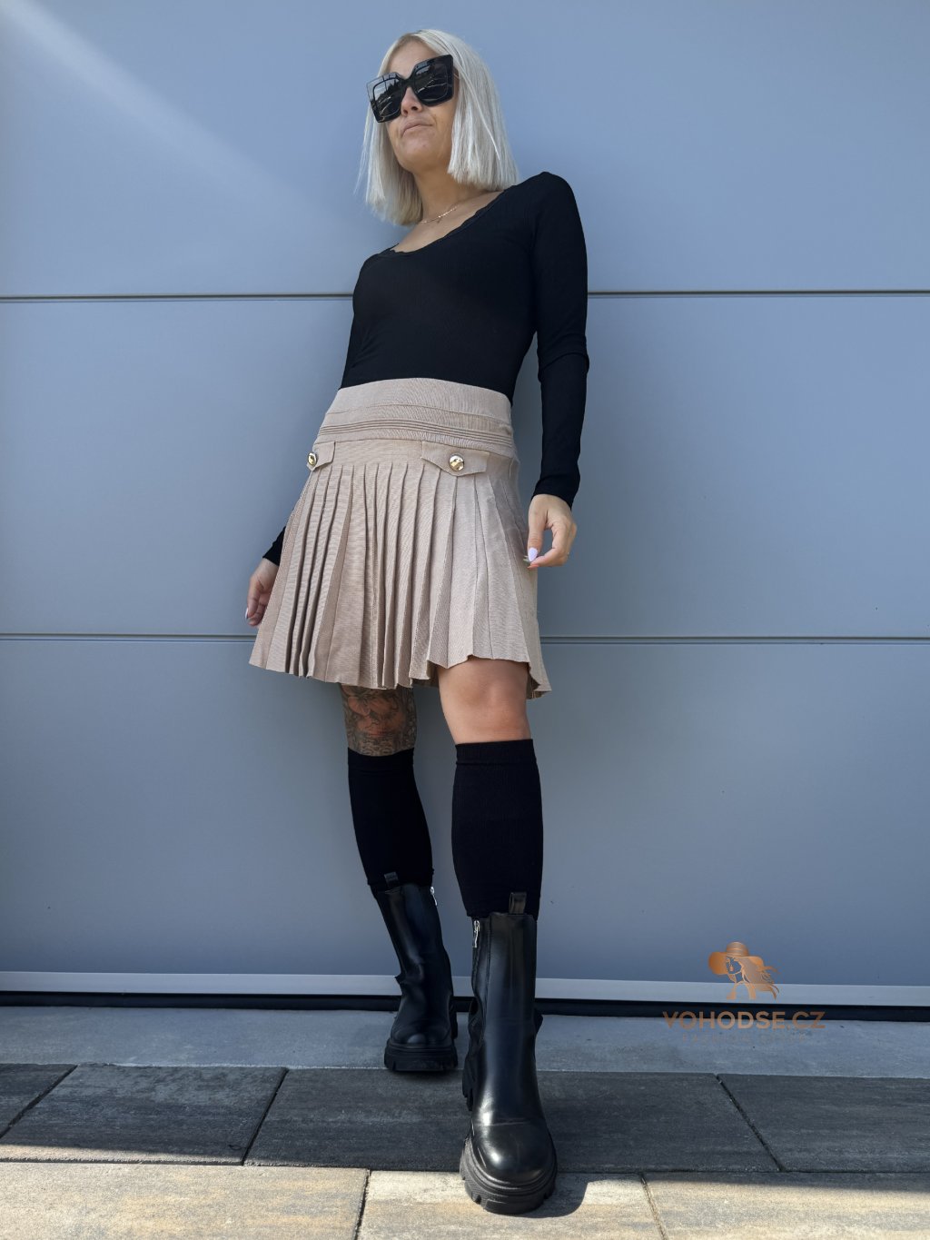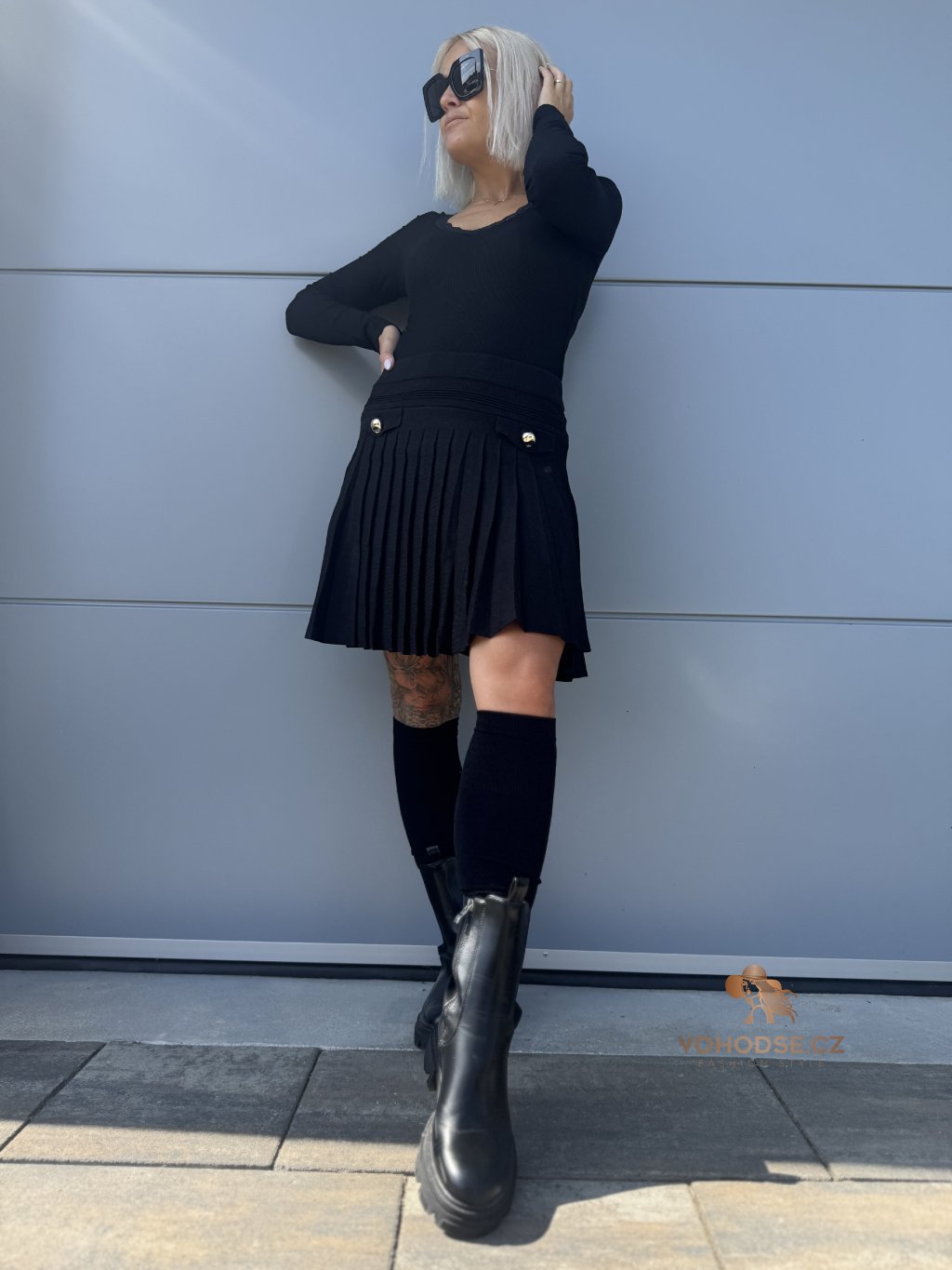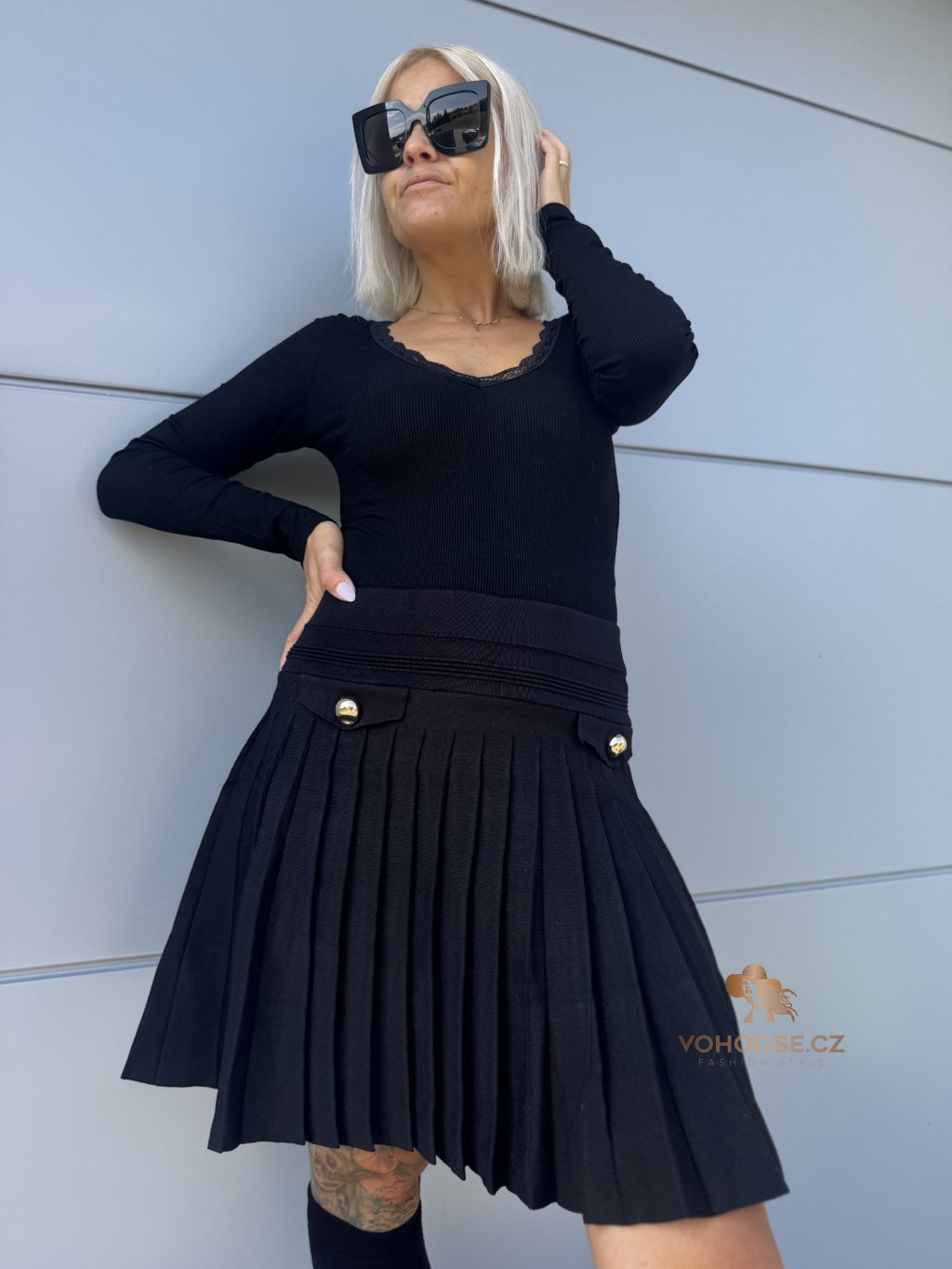 - Překládaná, v pase na gumu, zdobena zlatými knoflíky