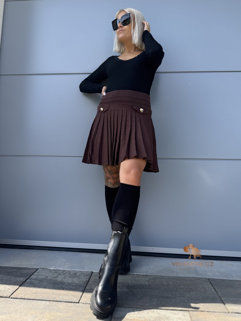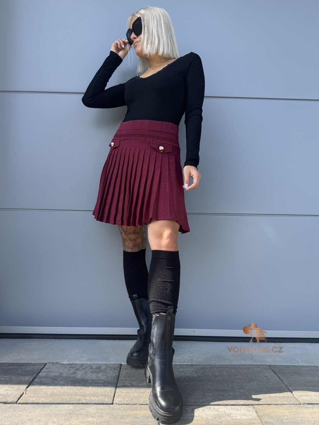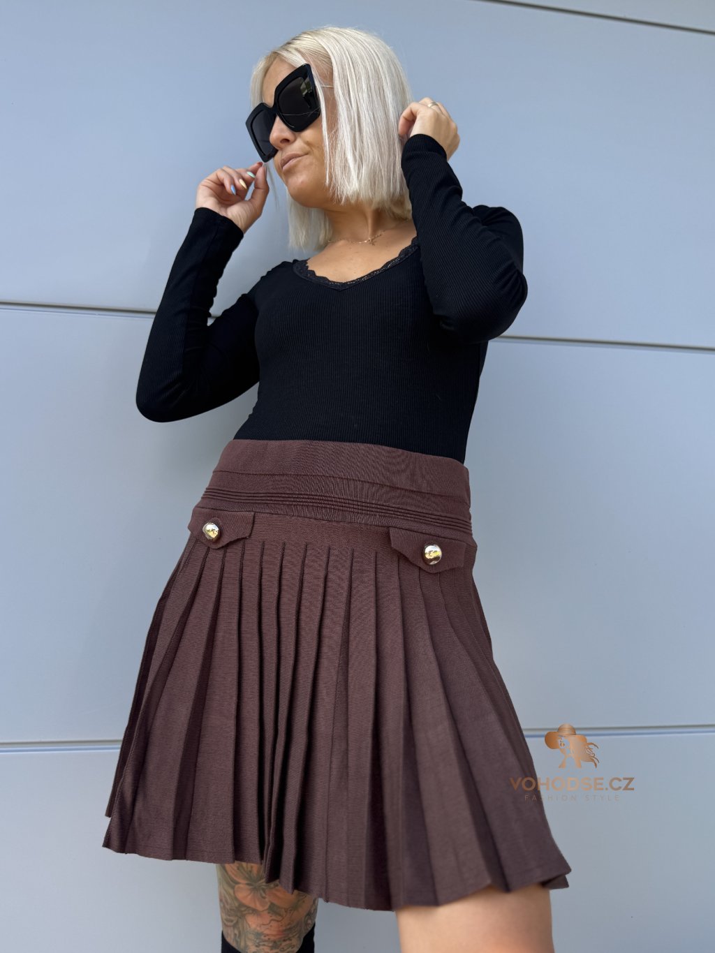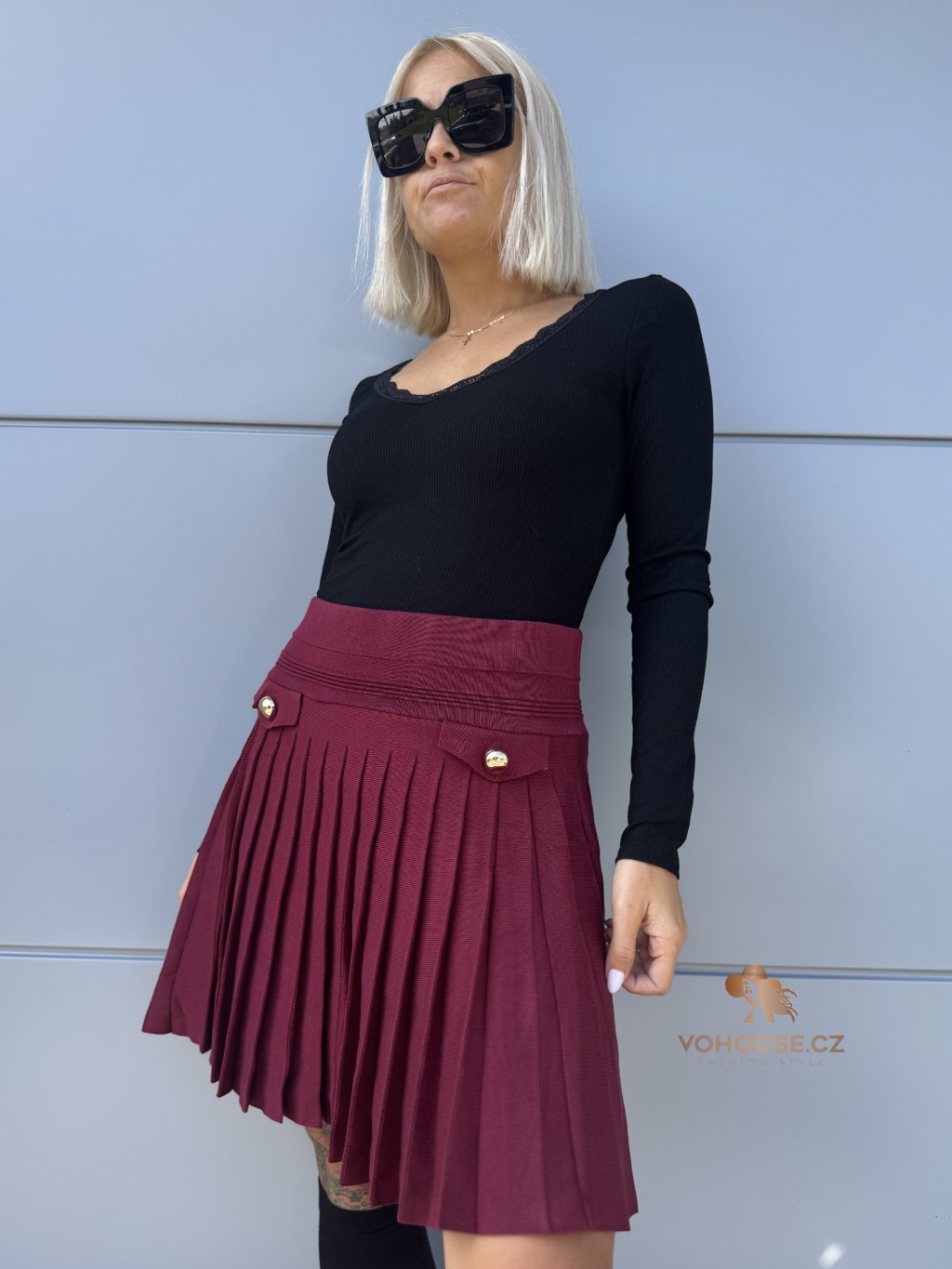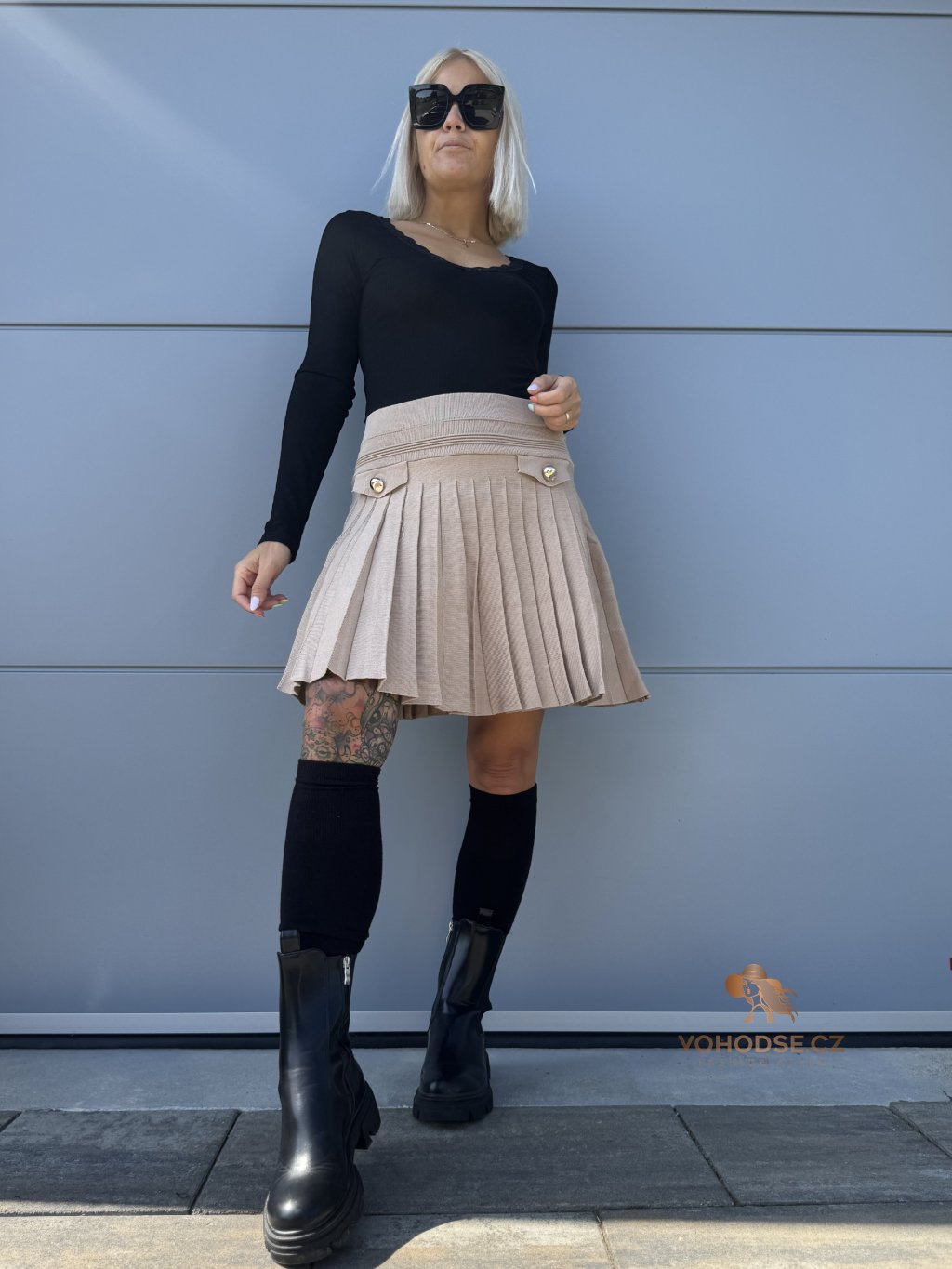 - Překládaná, v pase na gumu, zdobena zlatými knoflíky