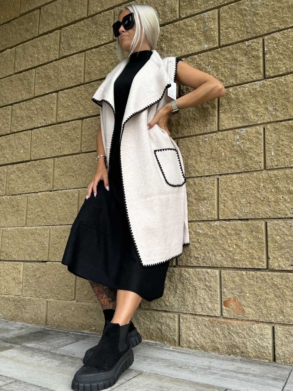 • Úpletová dámská vesta zdobena nášivkou okolo lemu