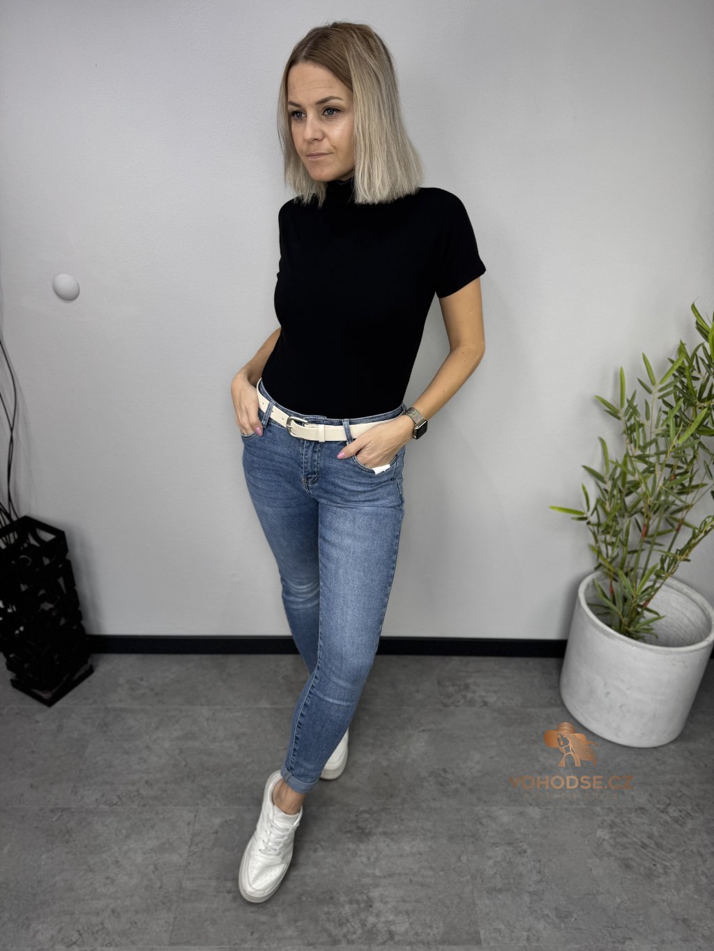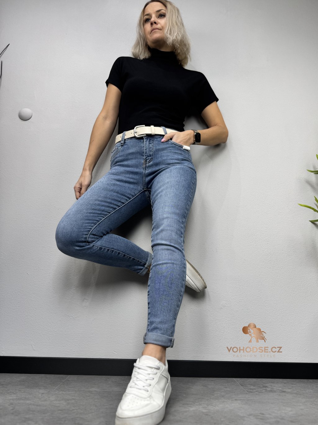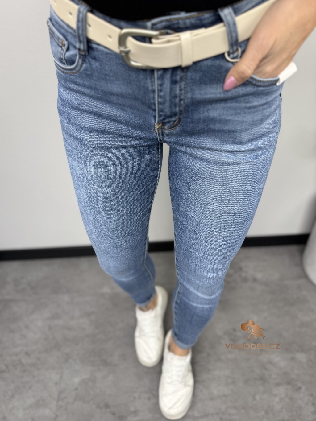 • Dámské džíny s vyšším pasem - SKINNY blue včetně pásku