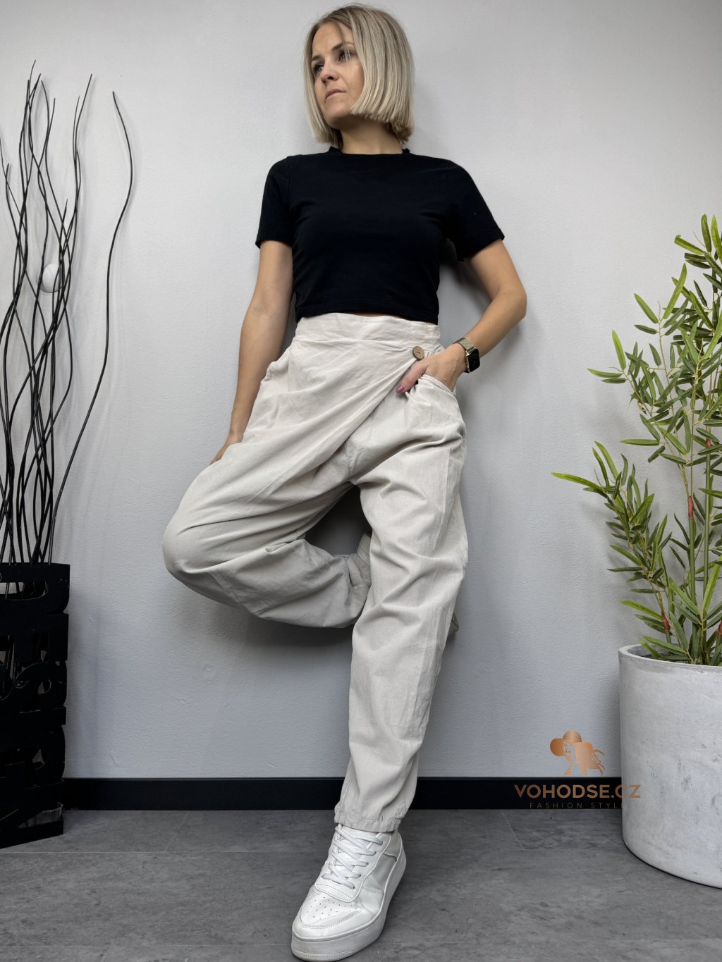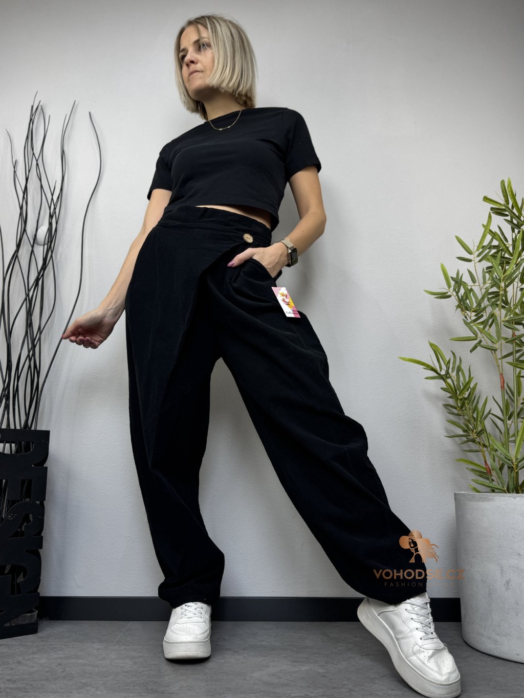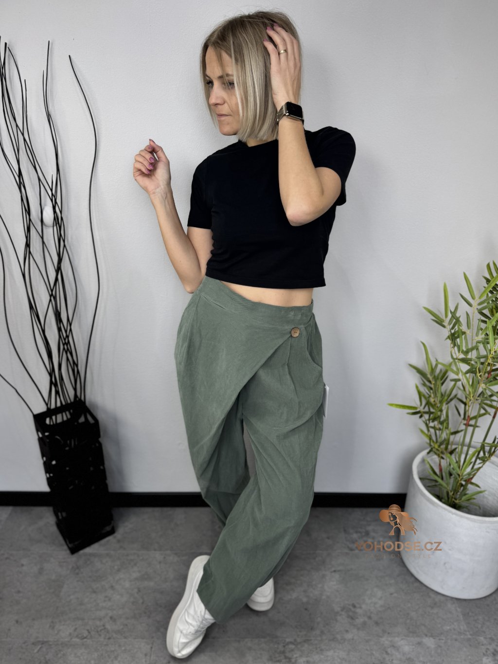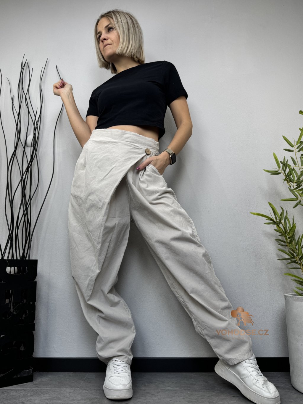 Stylové dámské kalhoty z tenkého manšestrového materiálu jsou ideální volbou pro pohodlné každodenní nošení. Lehký a příjemný materiál zajišťuje komfort po celý den a zároveň dodává outfitu moderní vzhled. Kalhoty nemají zapínání, v pase jsou na pružnou gumu. Volnější střih je vhodný i pro plnoštíhlé dámy. Perfektně se kombinuje s tričkem, svetrem i košilí.