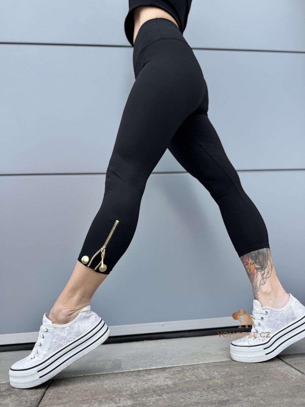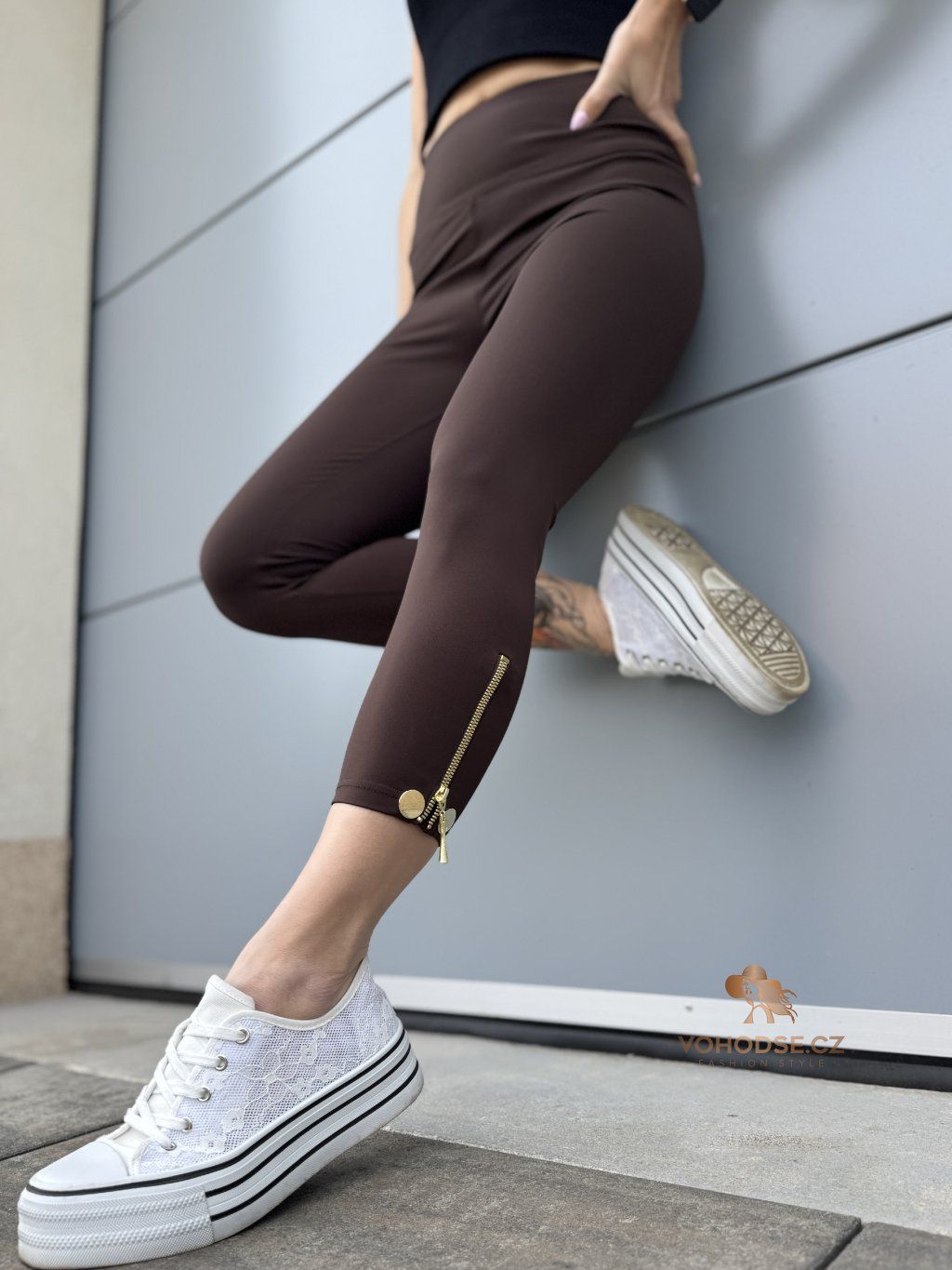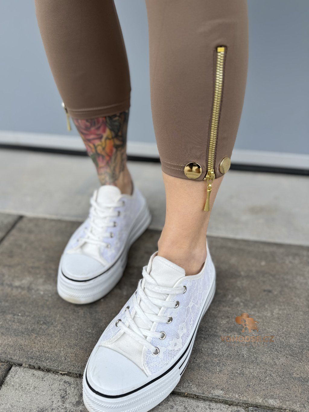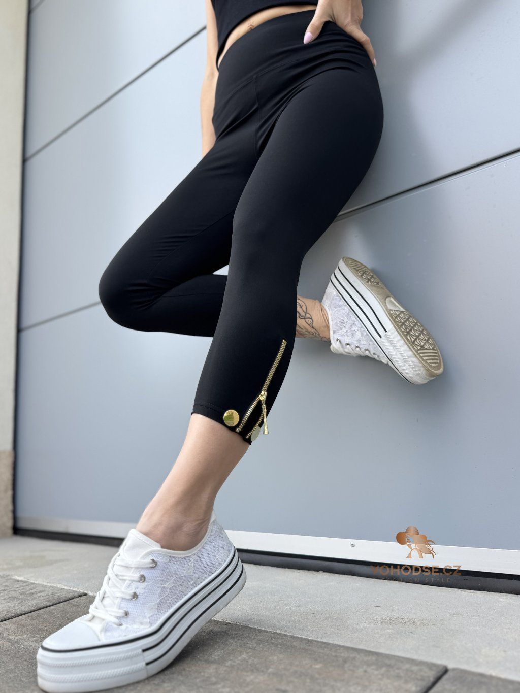 Dokonalé legíny, které spojují komfort a detail, co zaujme,. Přiléhavý střih krásně zvýrazní postavu, zatímco pružný materiál zajistí maximální pohodlí po celý den. Stylovým prvkem je zip u kotníku se zlatým detailem, který dodává legínám šmrnc a dělá z nich víc než jen basic kousek.