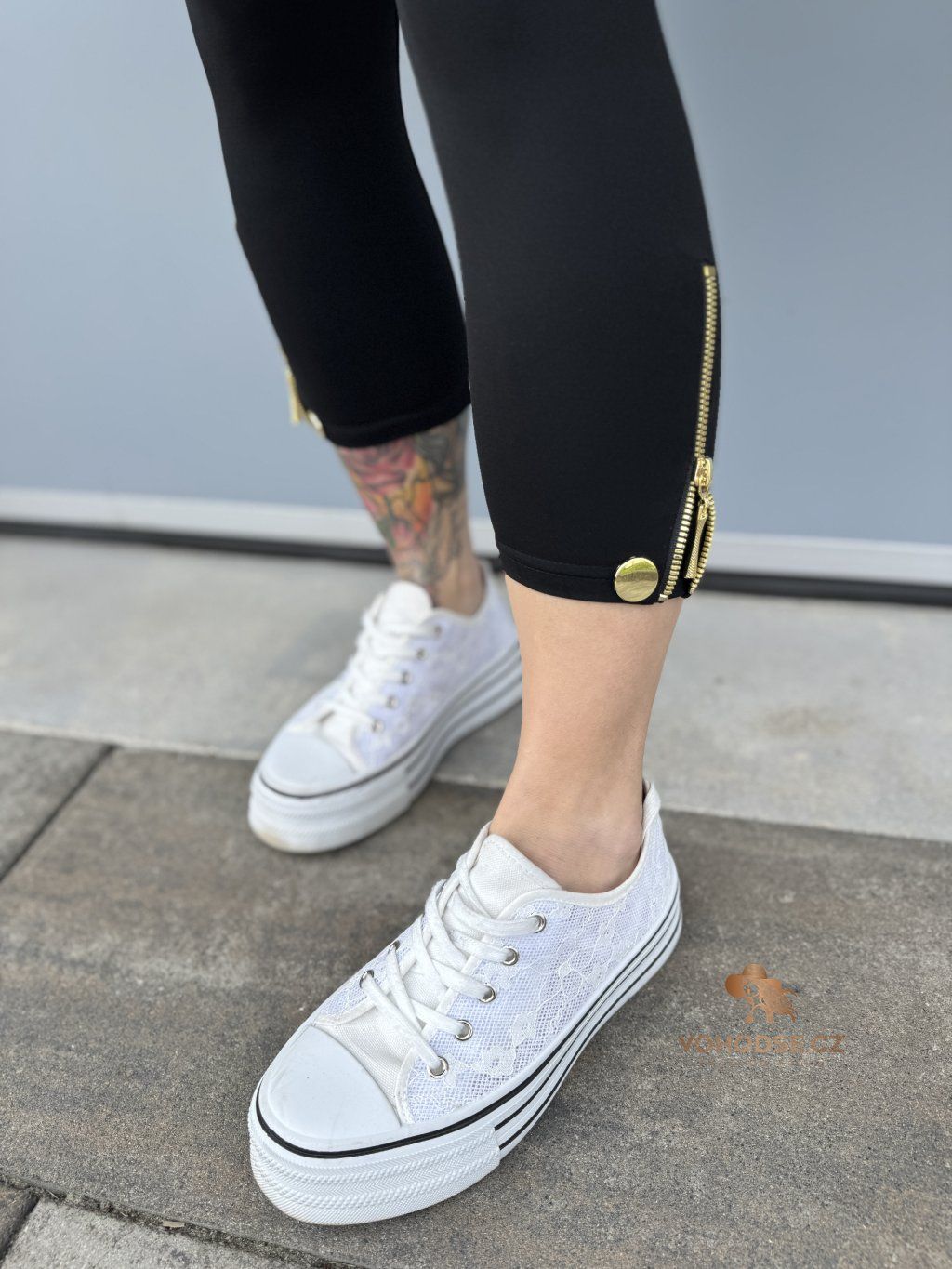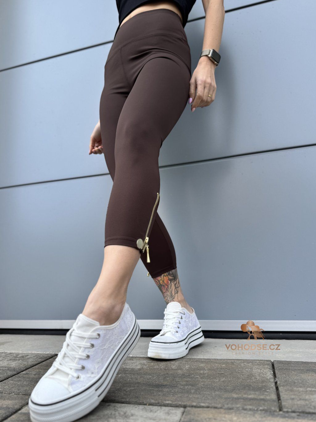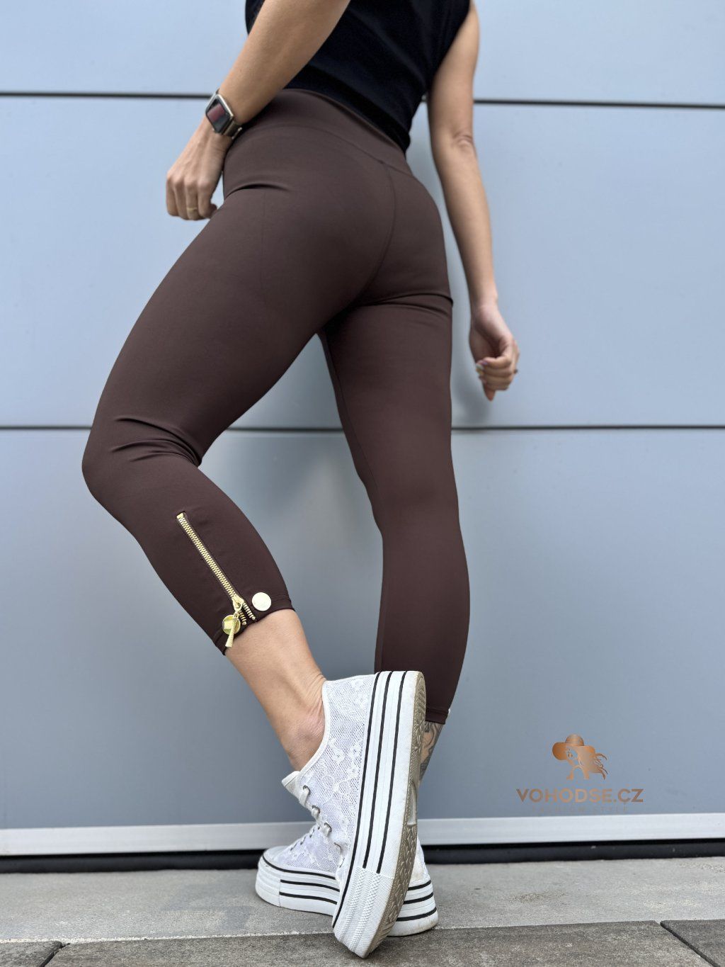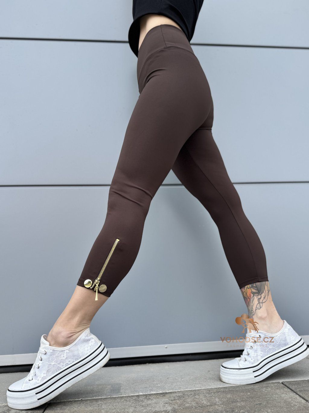 Dokonalé legíny, které spojují komfort a detail, co zaujme,. Přiléhavý střih krásně zvýrazní postavu, zatímco pružný materiál zajistí maximální pohodlí po celý den. Stylovým prvkem je zip u kotníku se zlatým detailem, který dodává legínám šmrnc a dělá z nich víc než jen basic kousek.