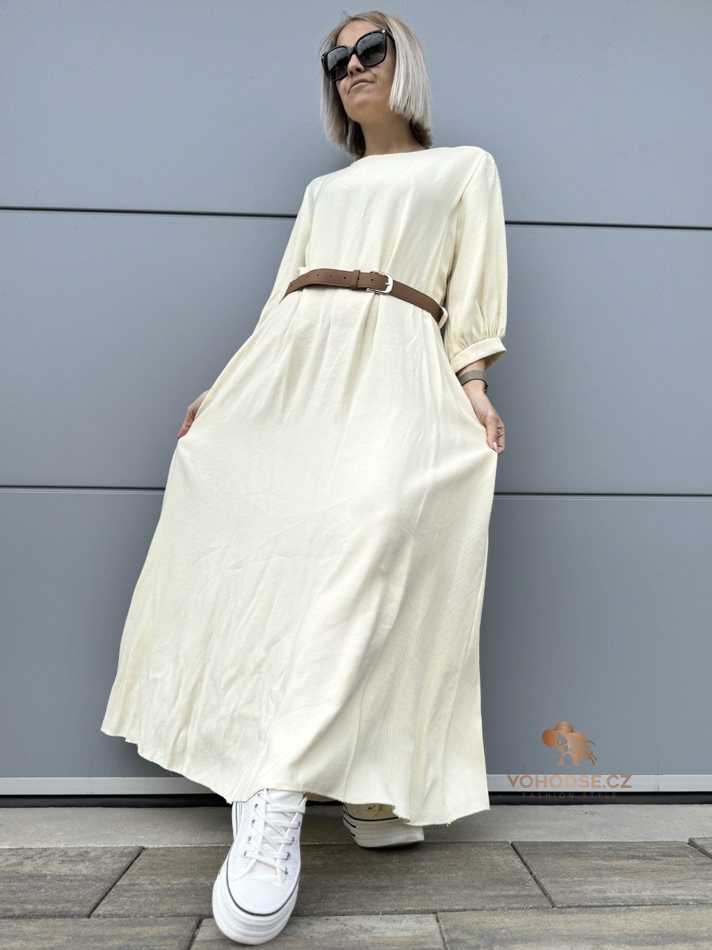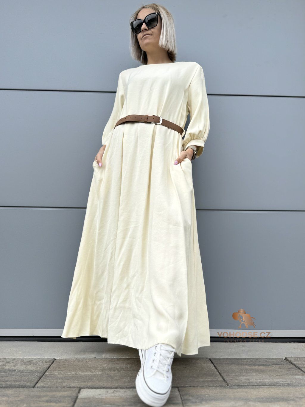 Dokonalý kousek pro dny, kdy chceš vypadat skvěle bez námahy. Tyto maxi šaty krásně kopírují pohyb a zajišťují maximální komfort po celý den. Volnější střih lichotí postavě a díky pásku si jednoduše upravíš siluetu podle sebe.