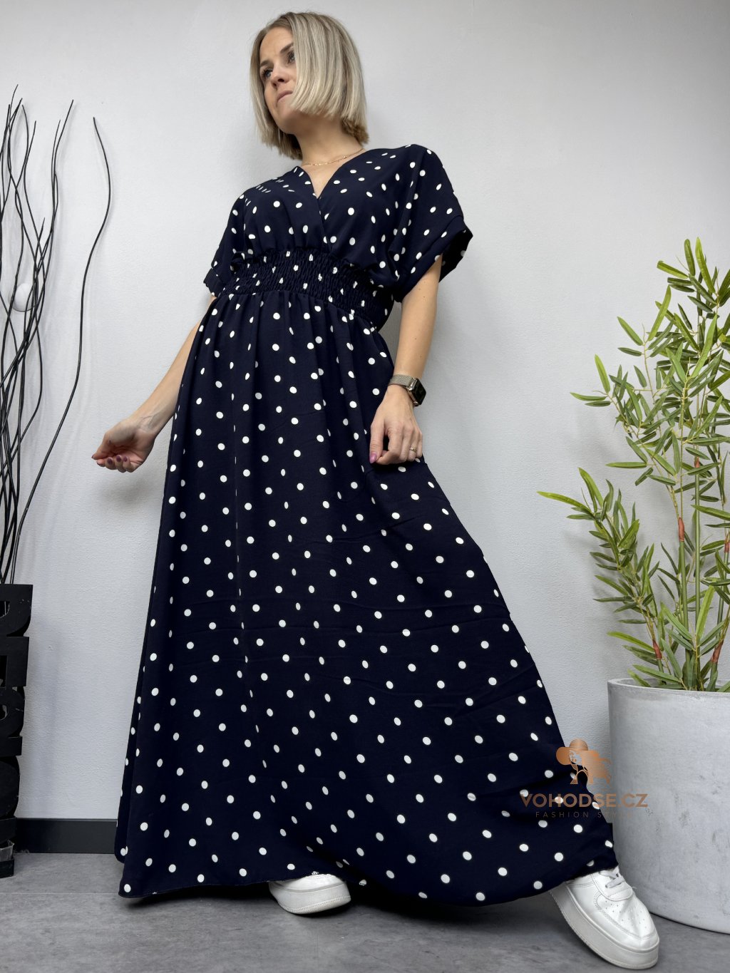 Lehké, vzdušné a maximálně pohodlné - přesně takové jsou tyto stylové maxi šaty s nadčasovým puntíkovaným vzorem. Díky pružné gumě v pase krásně zvýrazní siluetu a zároveň zajistí pohodlí po celý den. Volnější střih a jemný materiál dělají z těchto šatů ideální kousek pro každodenní nošení i speciální příležitosti.