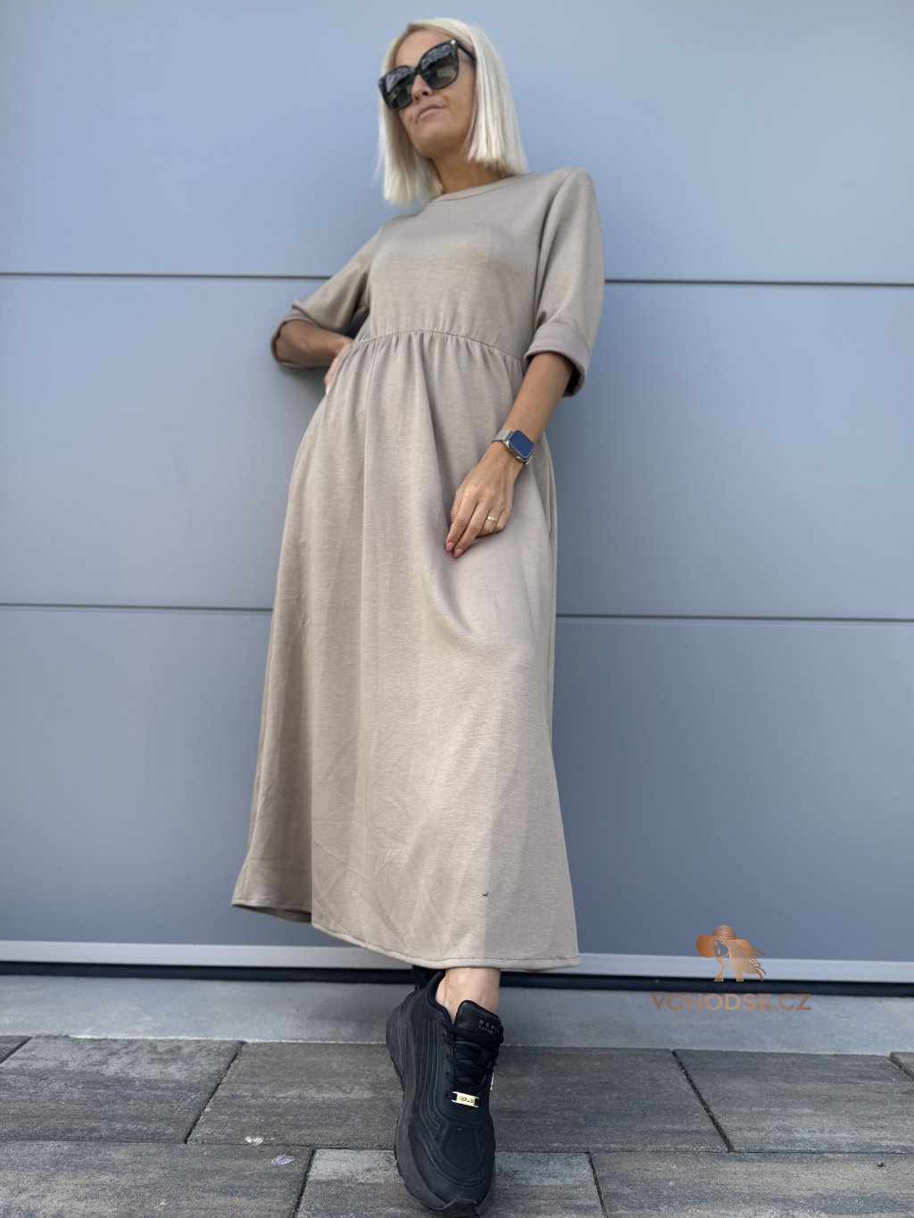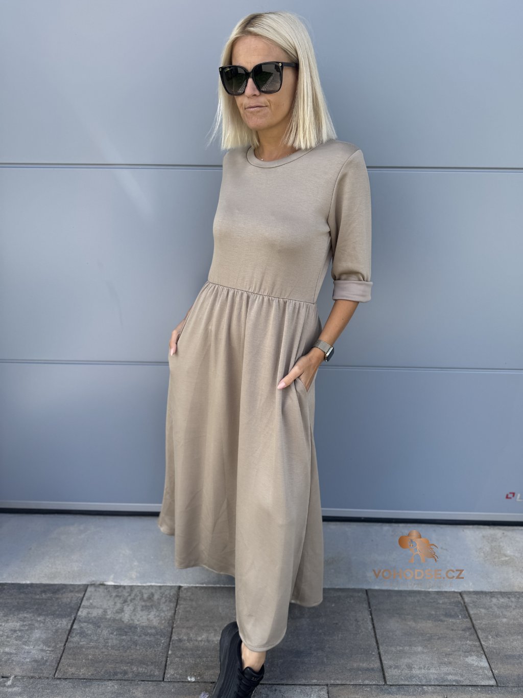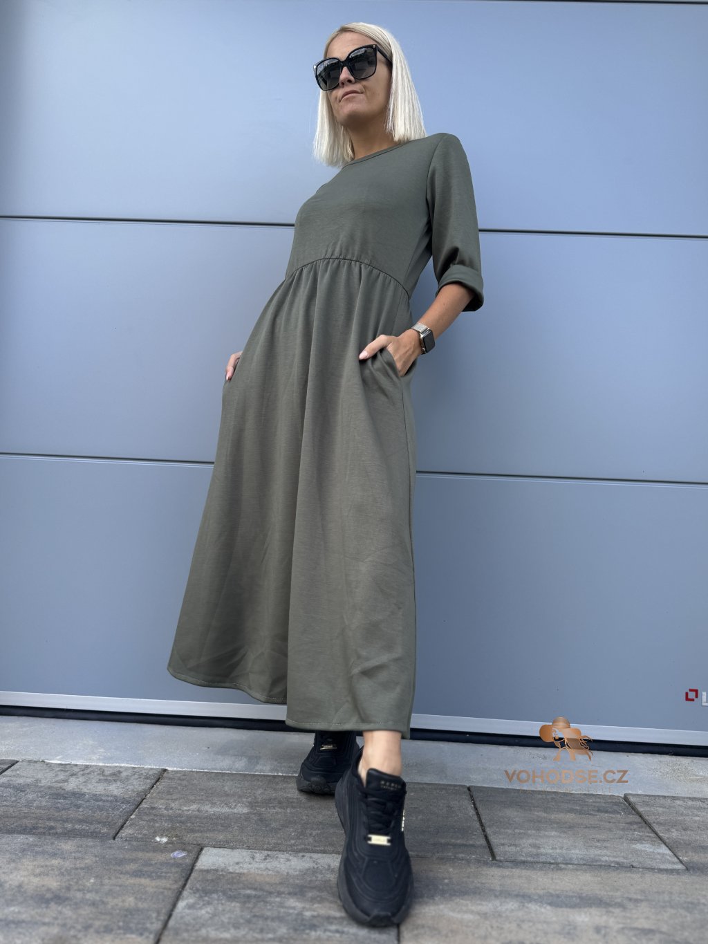 - Dlouhé dámské šaty s 3/4 délkou rukávu
