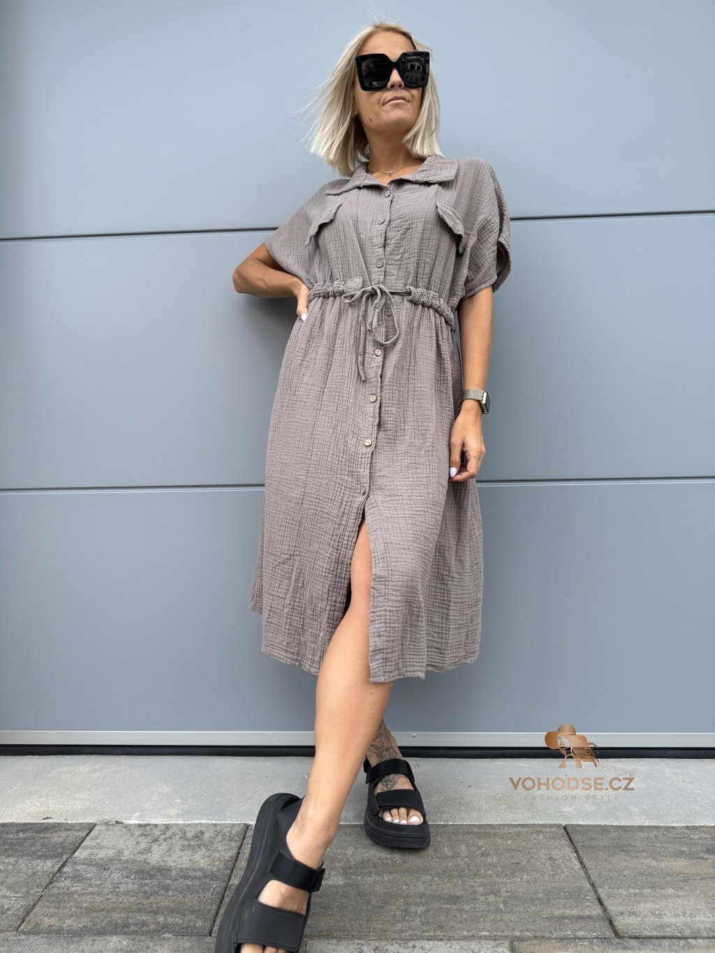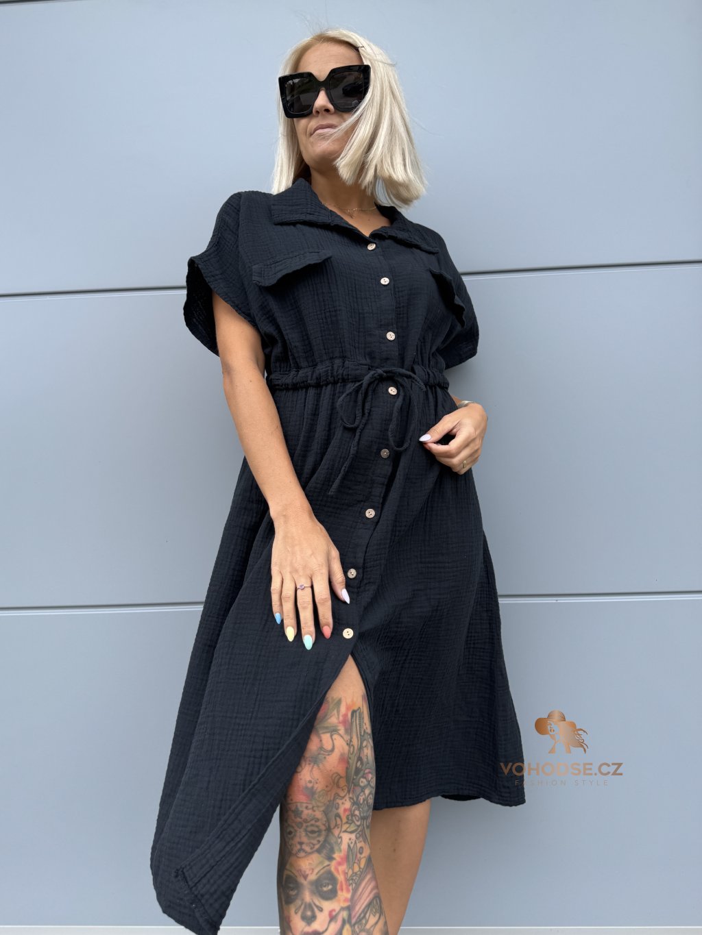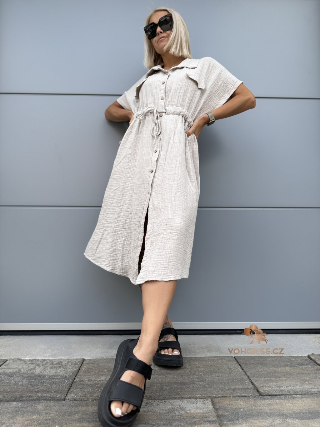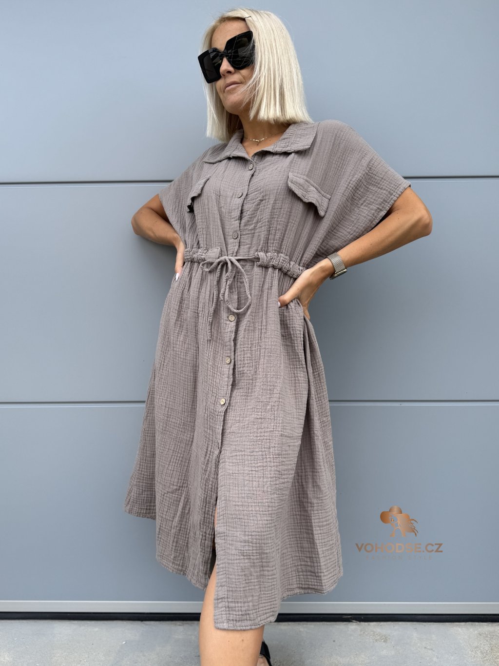 - Moderní dámské košilové šaty z mušelínového materiálu