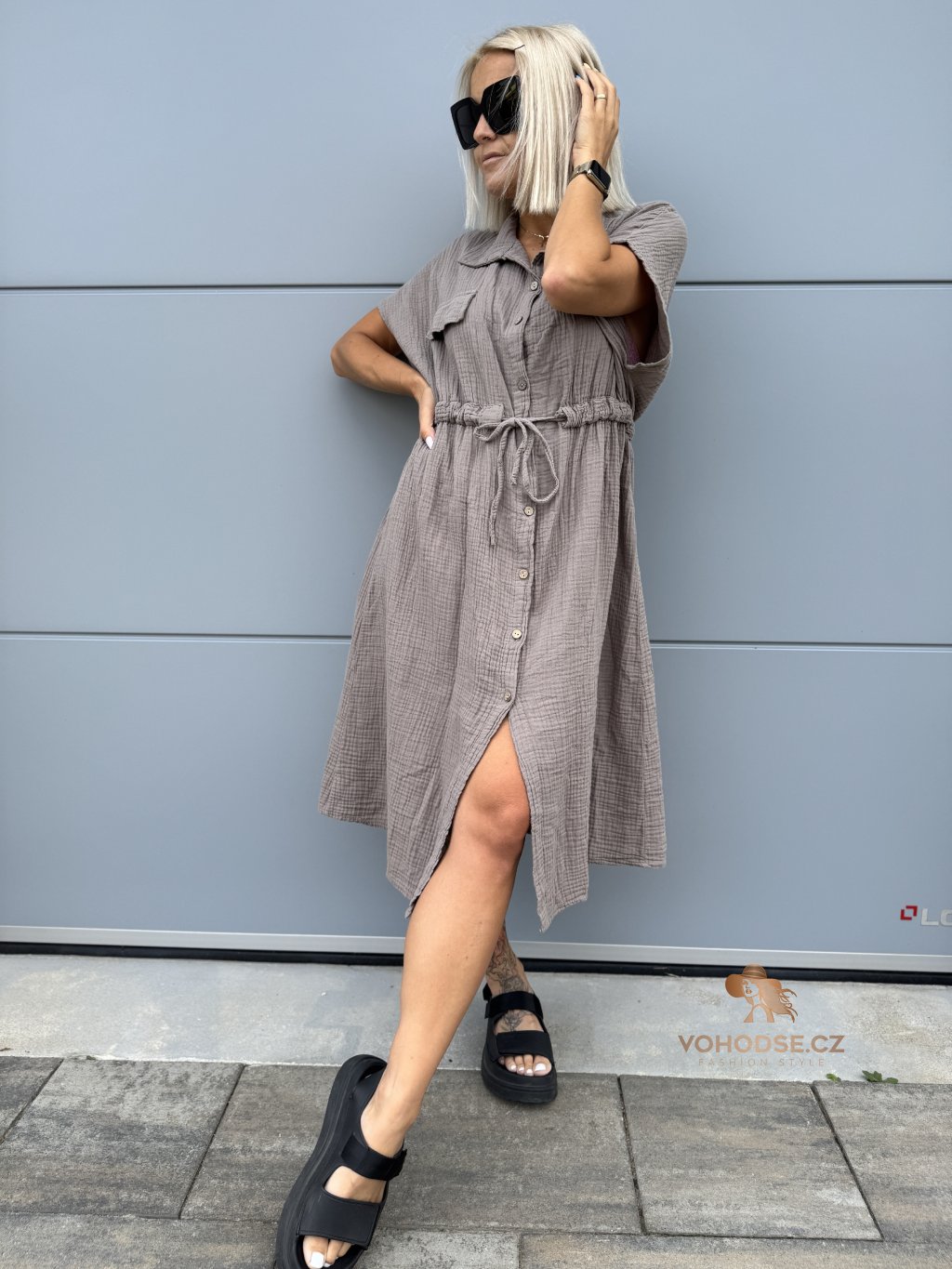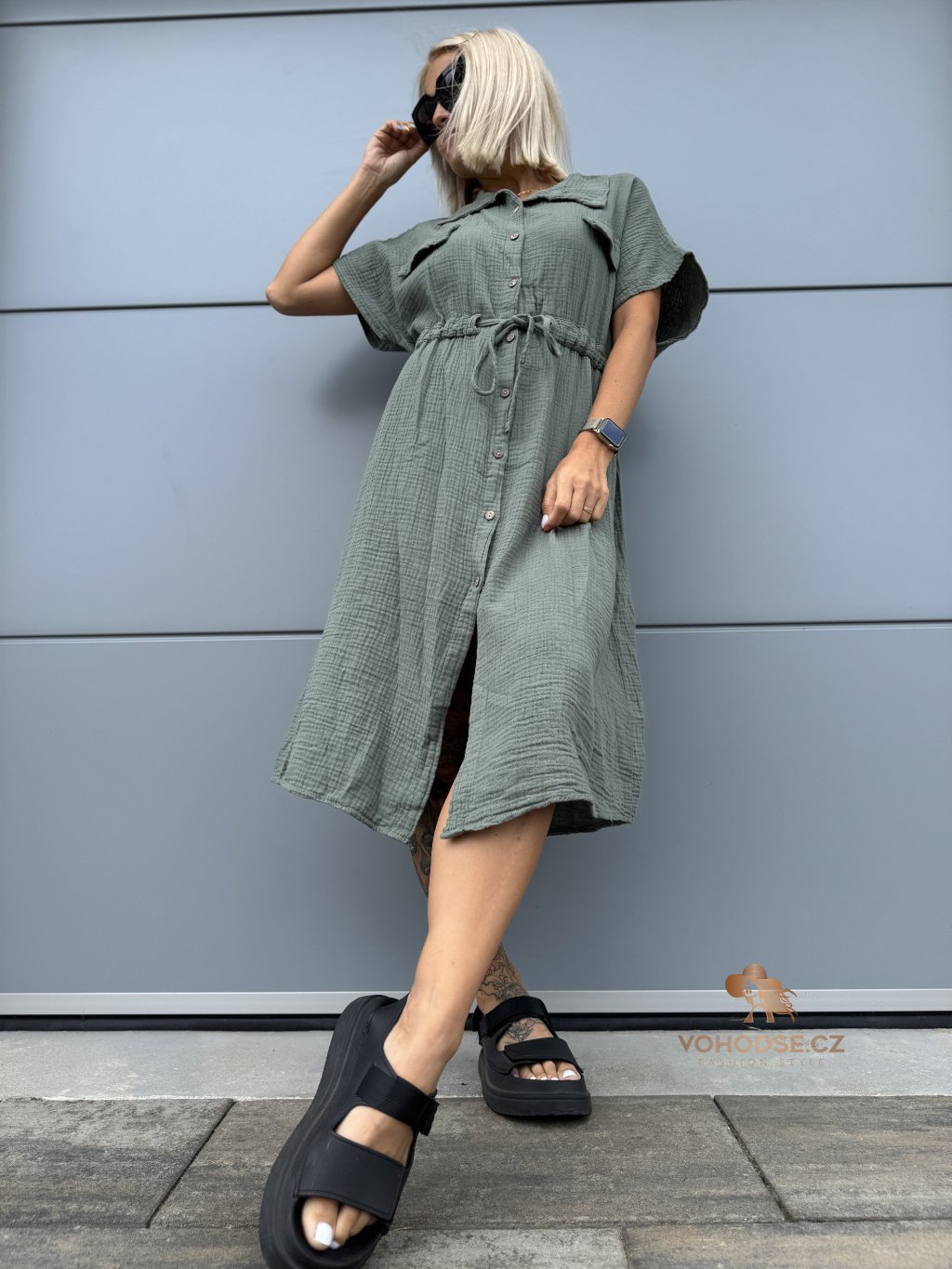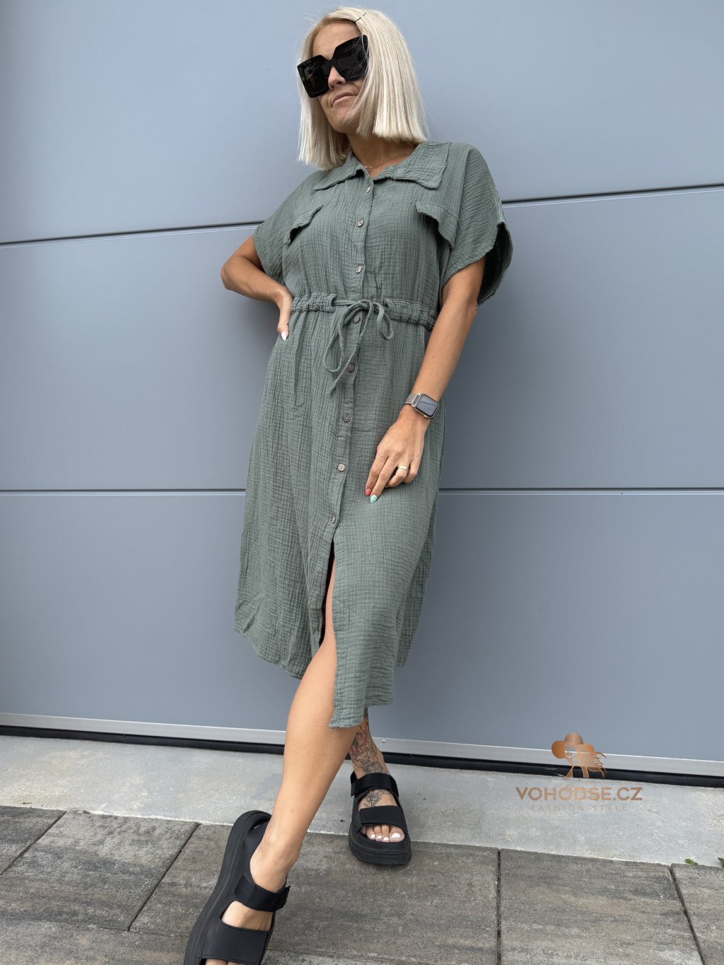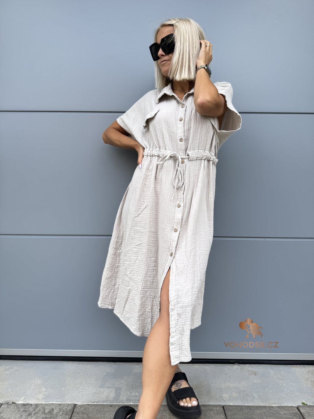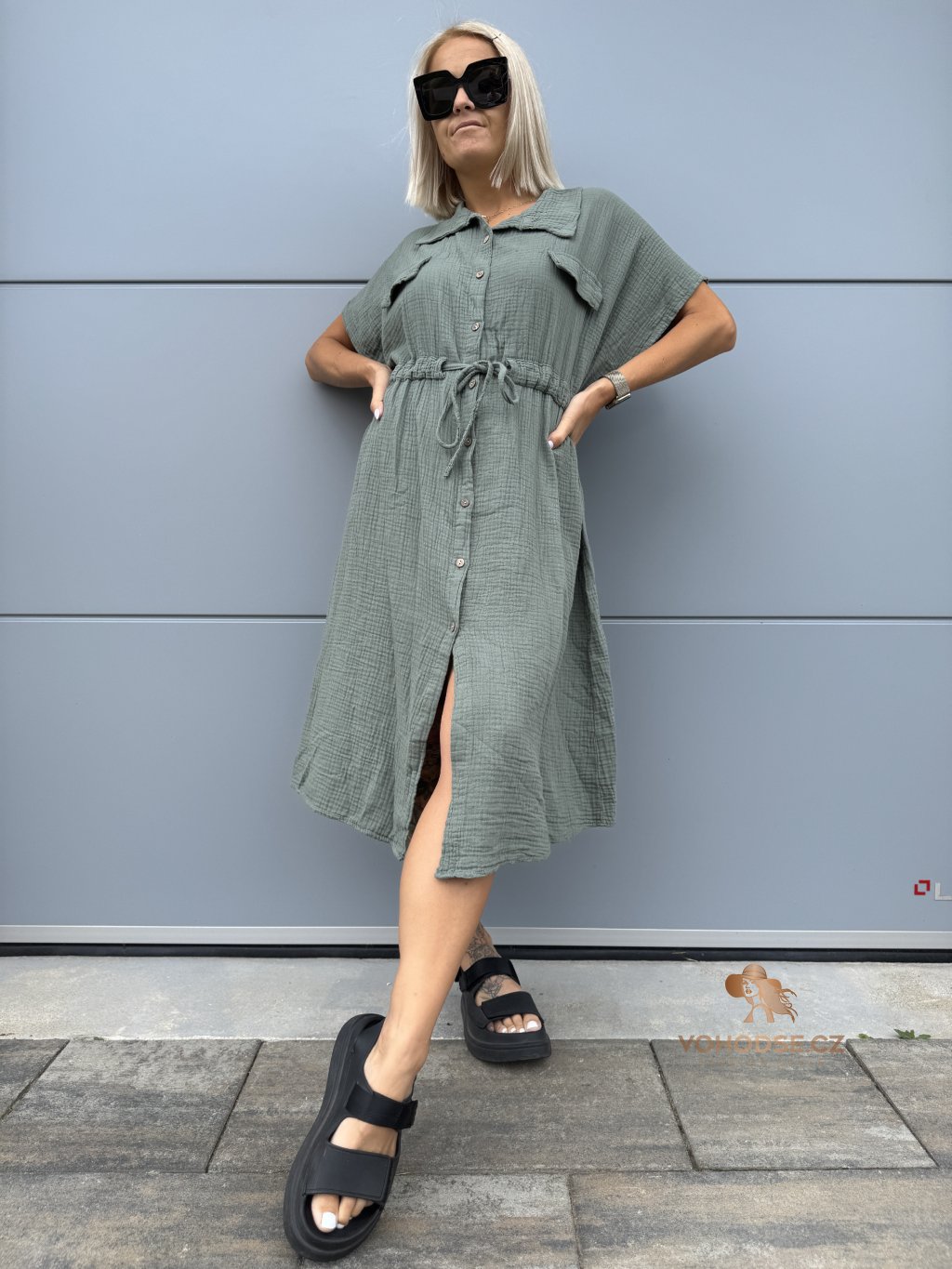 - Moderní dámské košilové šaty z mušelínového materiálu