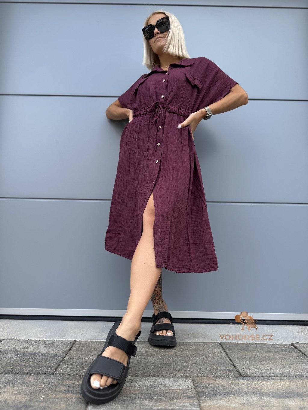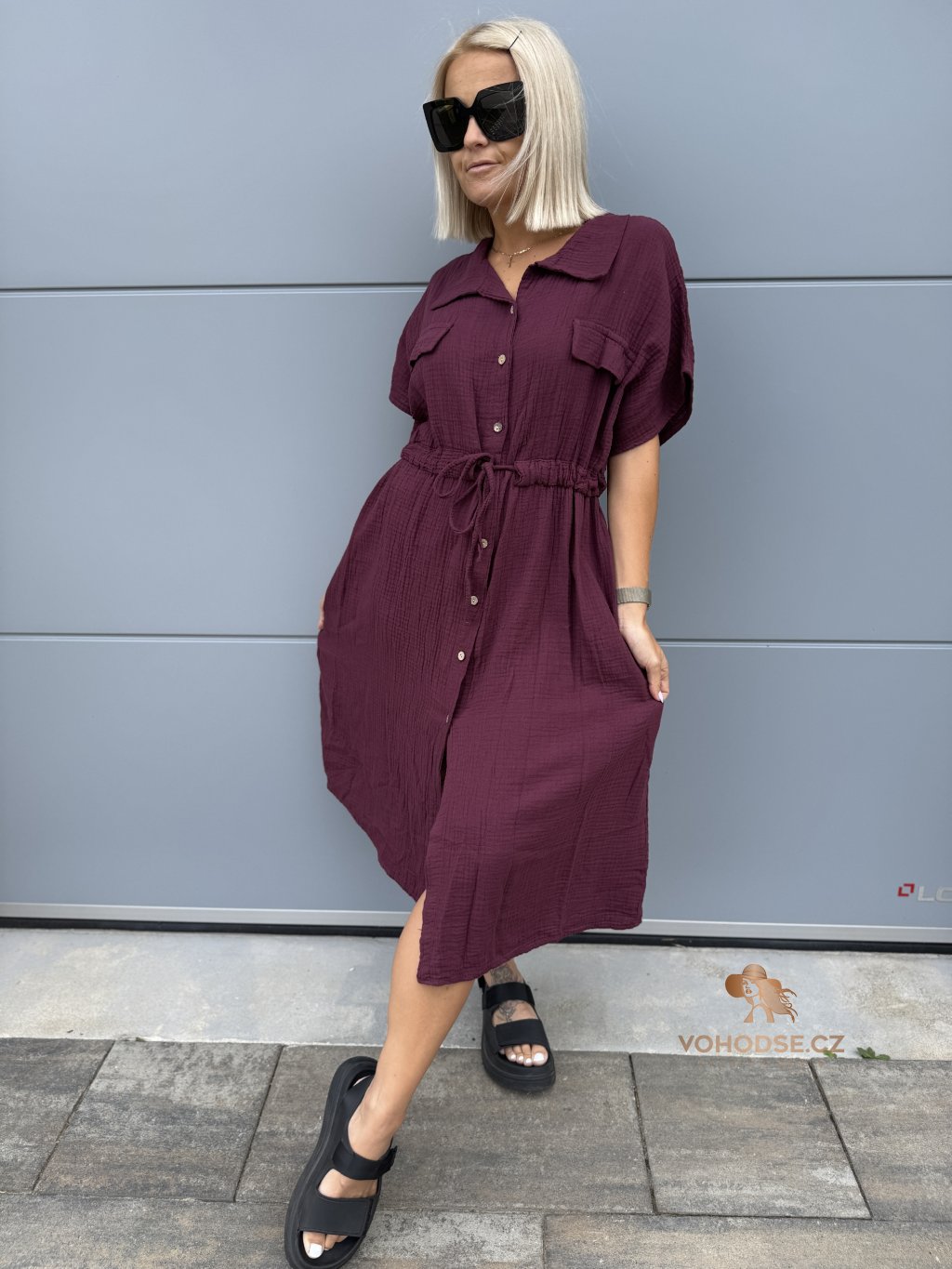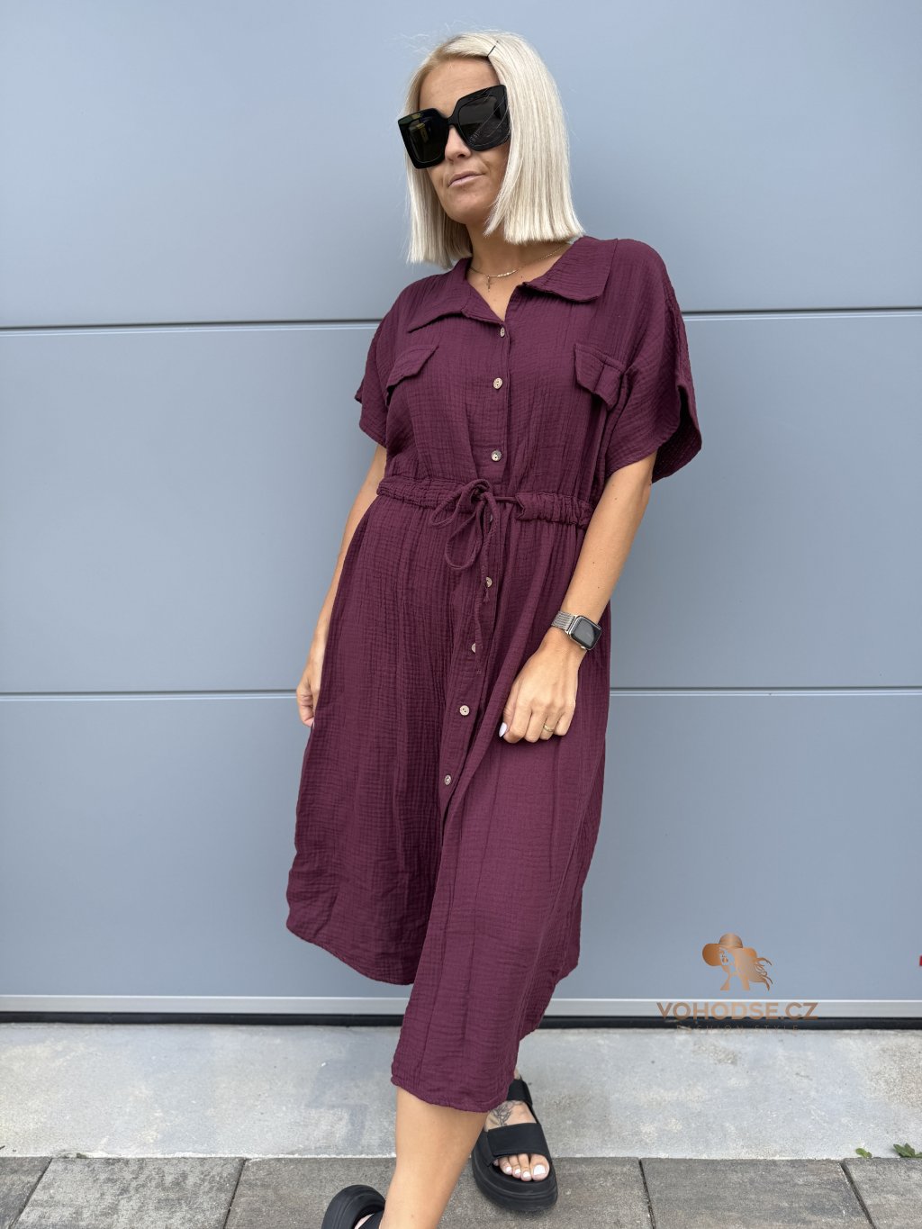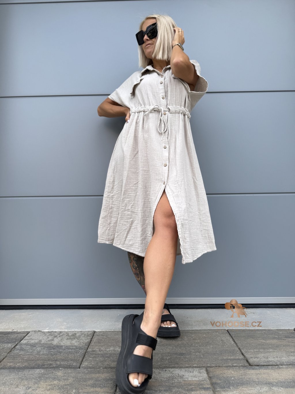 - Moderní dámské košilové šaty z mušelínového materiálu