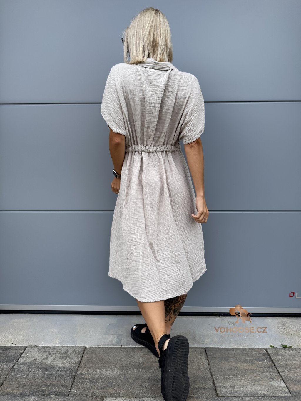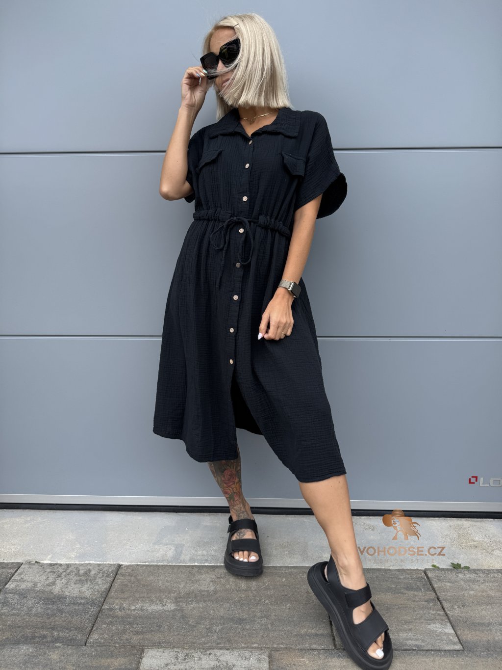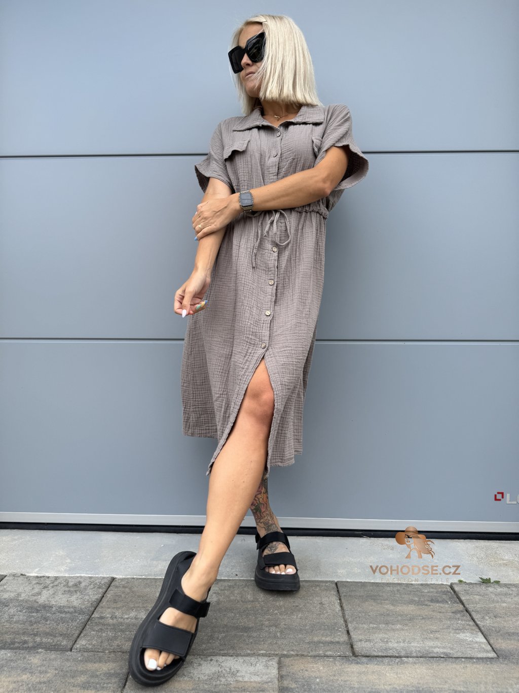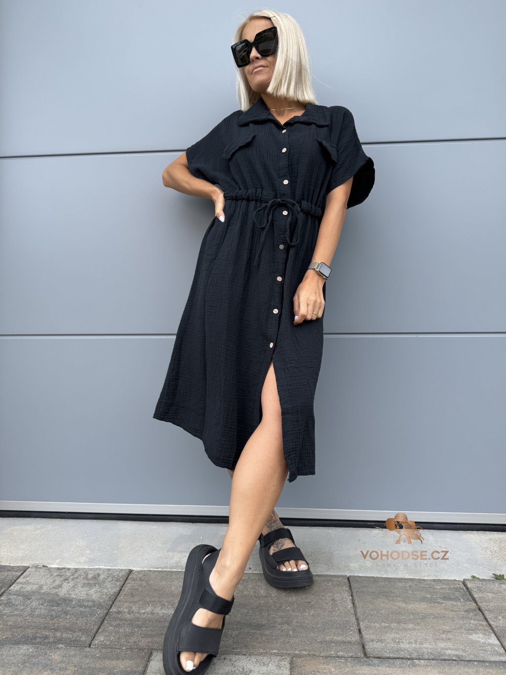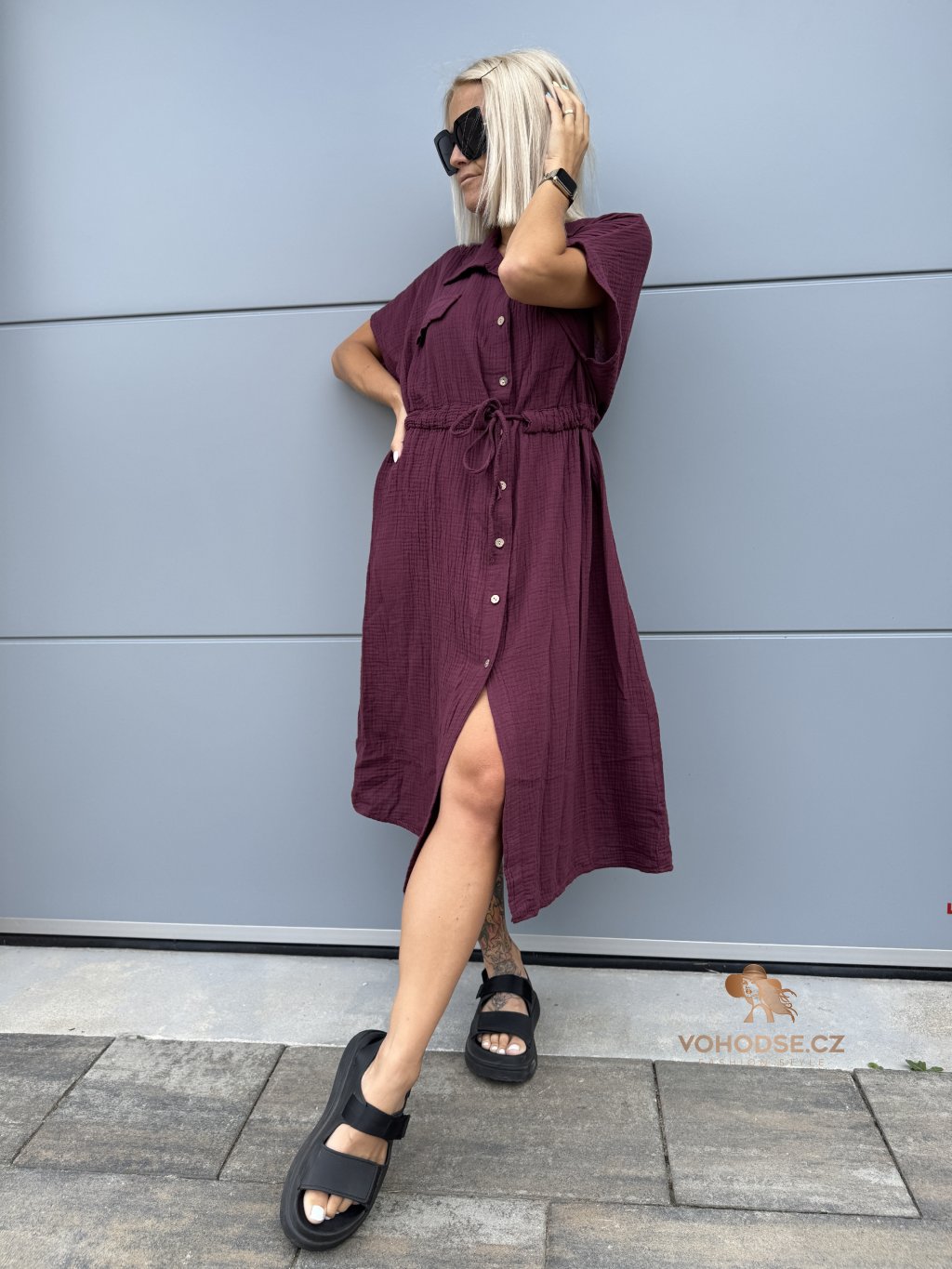 - Moderní dámské košilové šaty z mušelínového materiálu