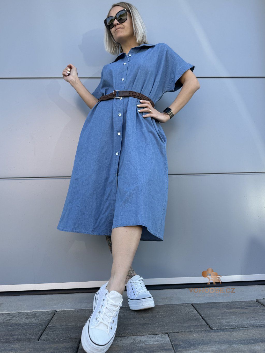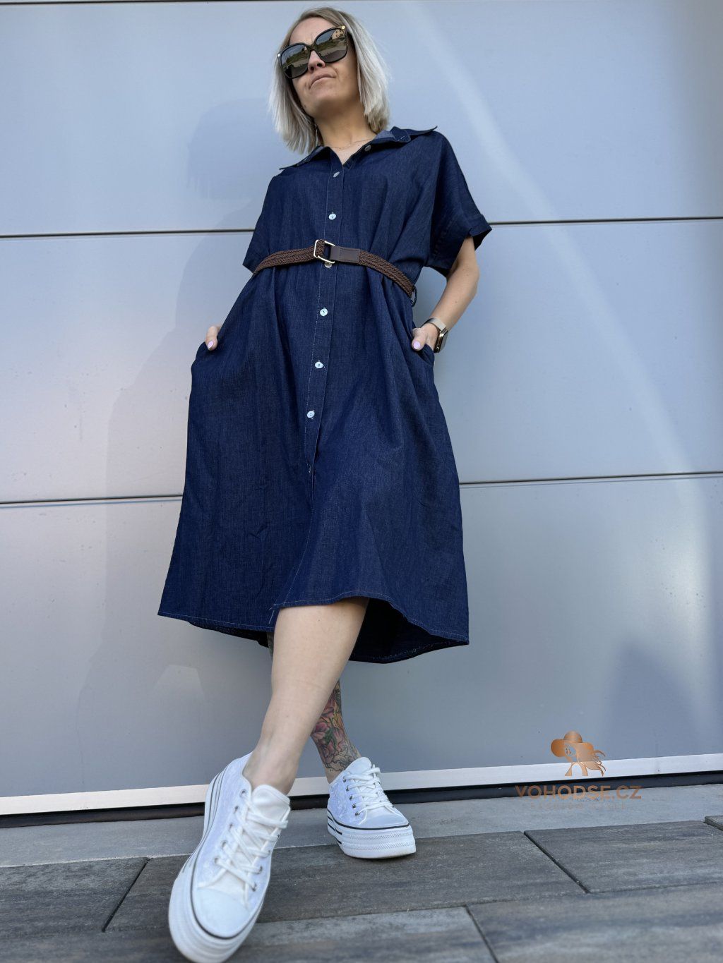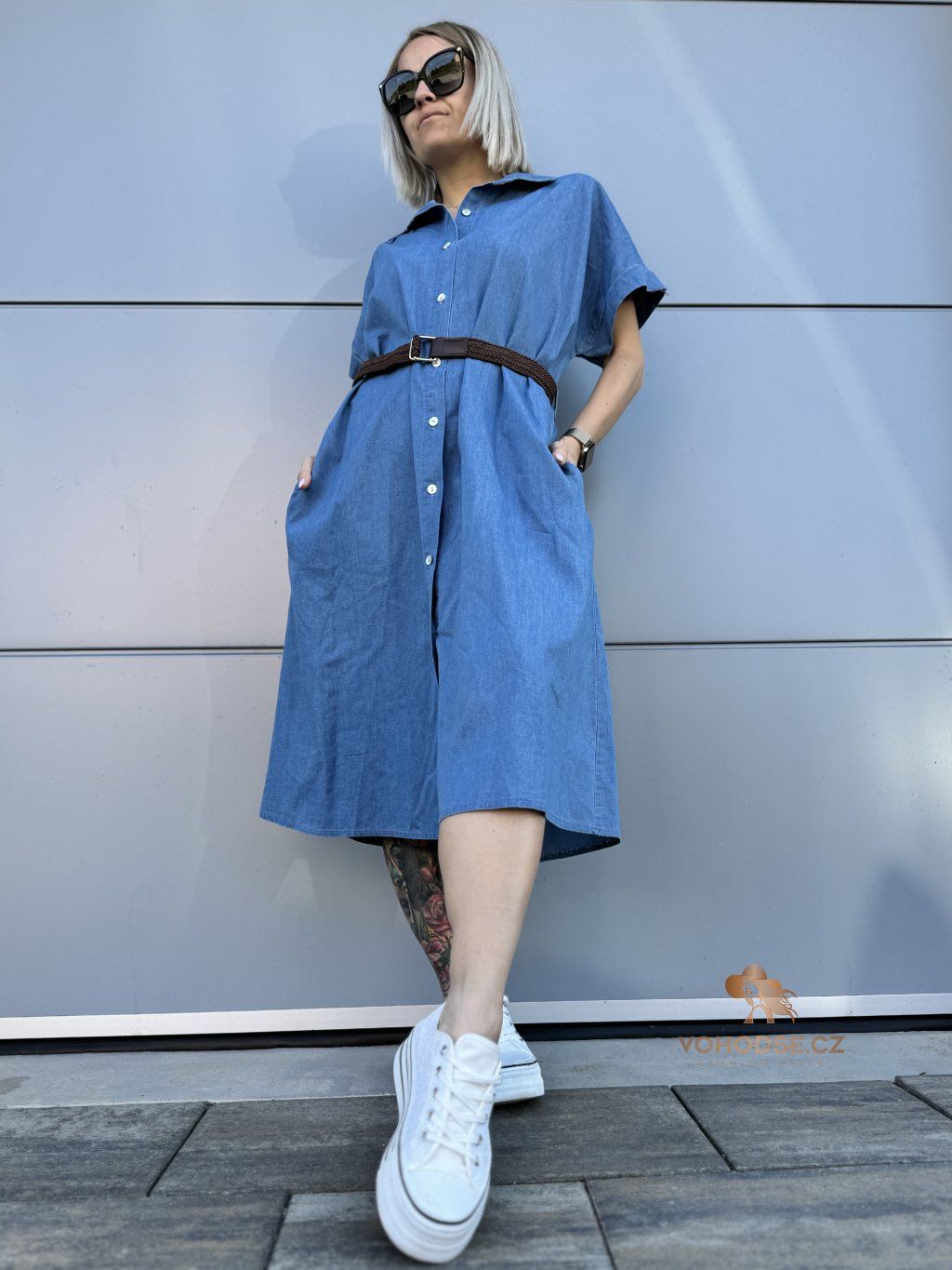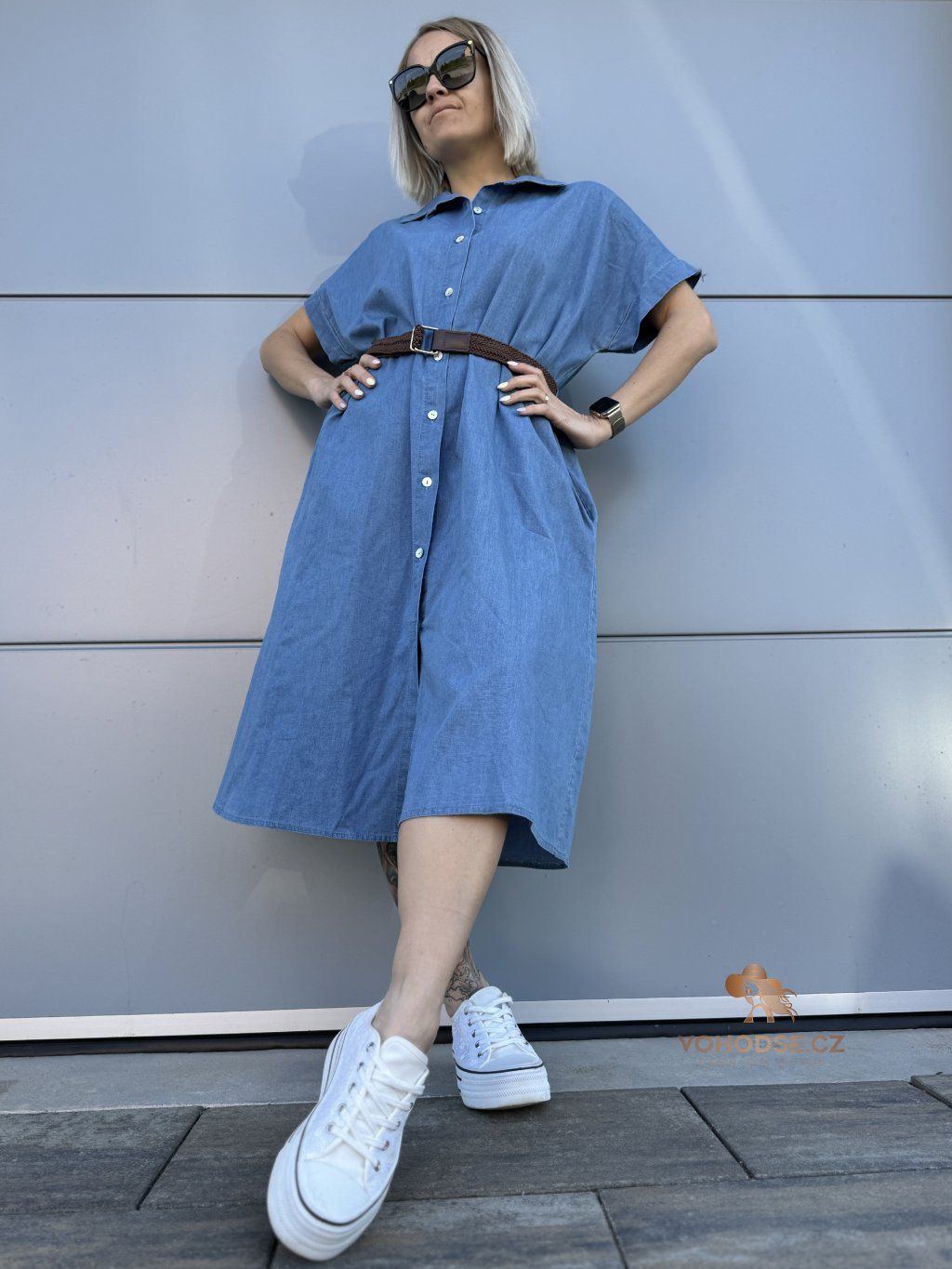 Styl, který nikdy nevyjde z módy. Tyhle košilové šaty z lehkého denimu jsou ideální volbou pro každý den - kombinují pohodlí, jednoduchost a šmrnc v jednom kousku. Volnější střih zajišťuje maximální komfort, zatímco pásek krásně zvýrazní pas a dodá siluetě ženskost. Knoflíkové zapínání po celé délce podtrhuje jejich ležérně elegantní vzhled.