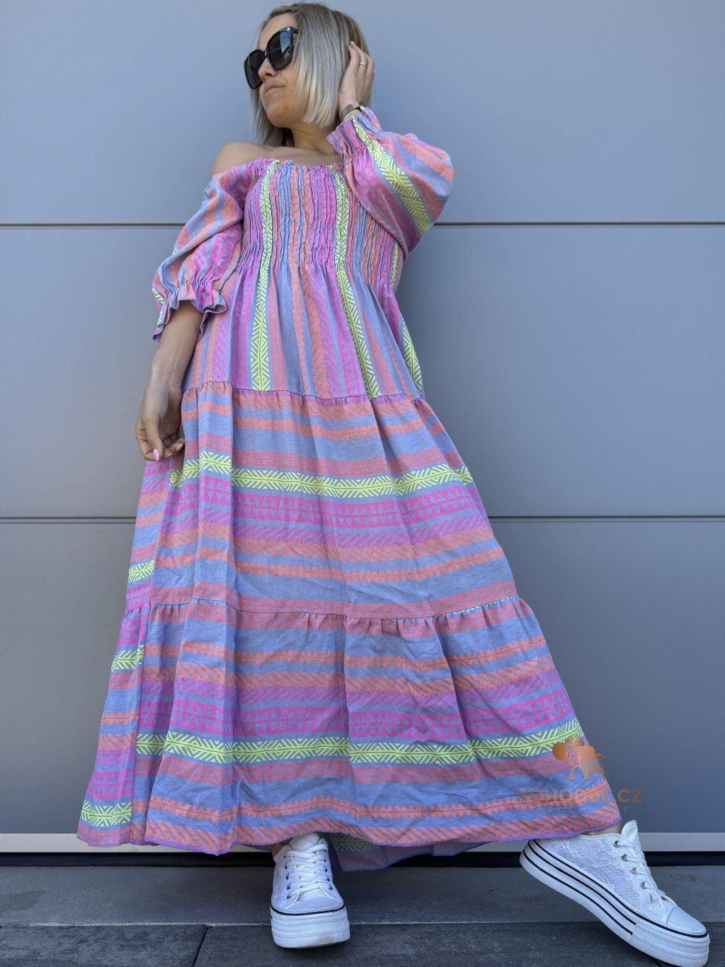 Lehké, vzdušné a nepřehlédnutelné. Tyto maxi šaty jsou ideální volbou na léto, dovolenou i pohodové dny ve městě. Výrazné barvy a vzory dodávají outfitu energii a originalitu.