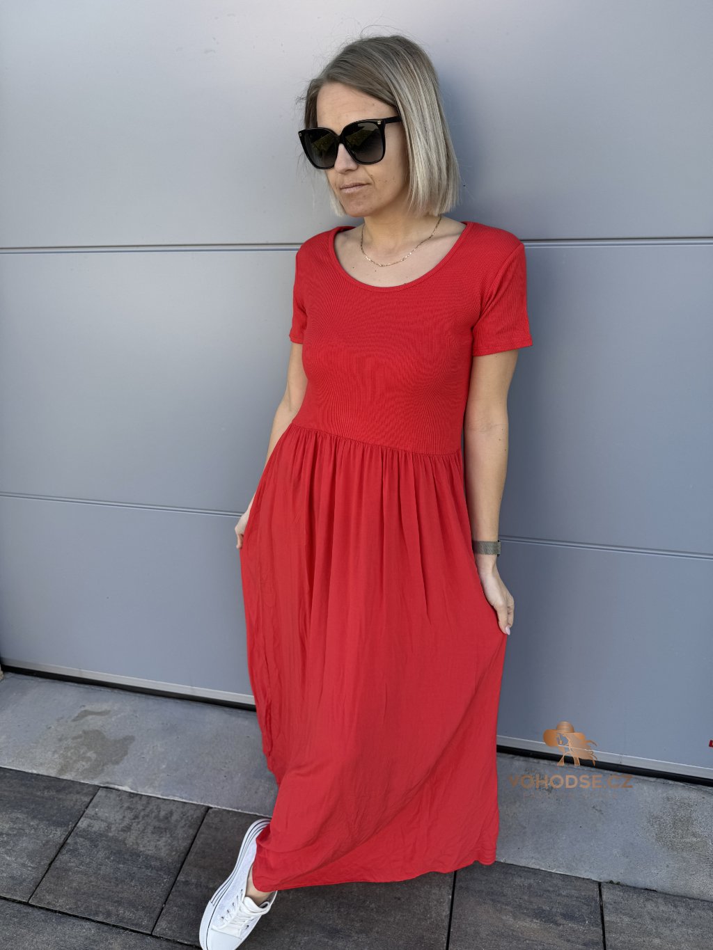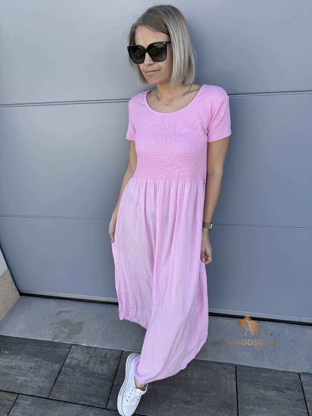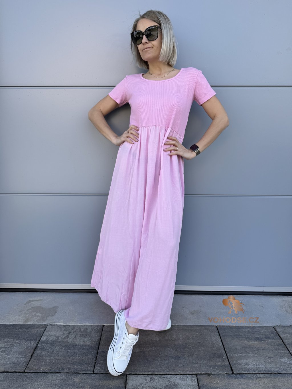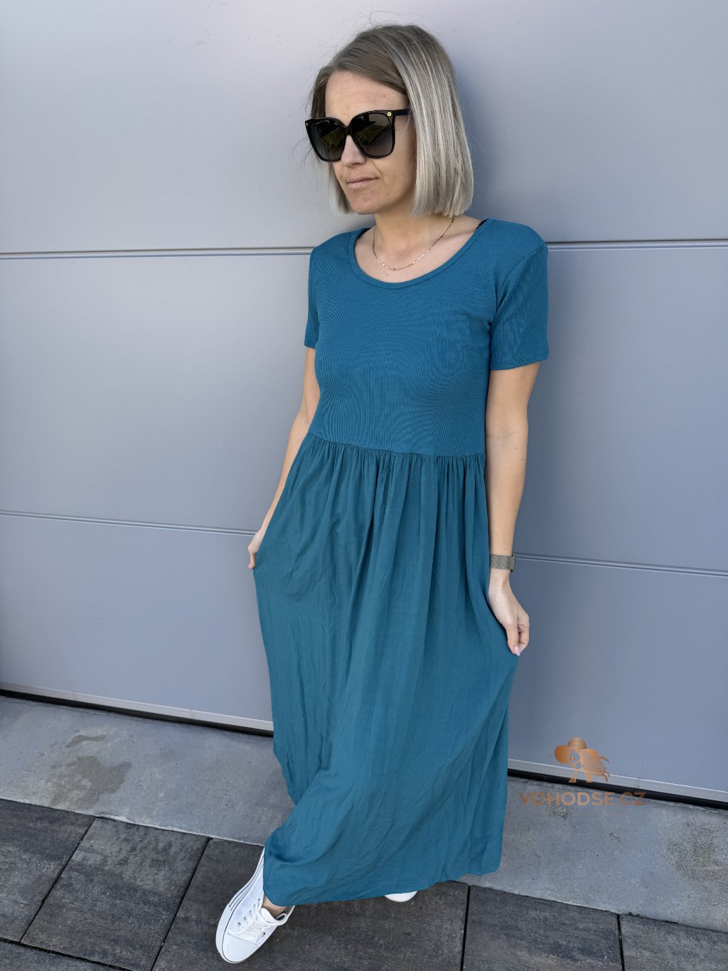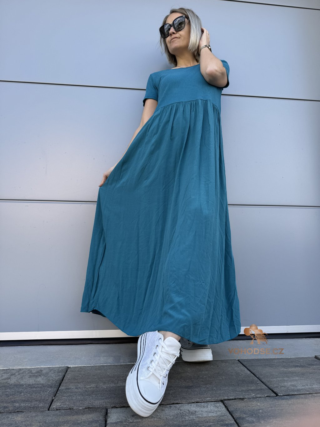 - Perfektní dlouhé dámské šaty s krátkým rukávem