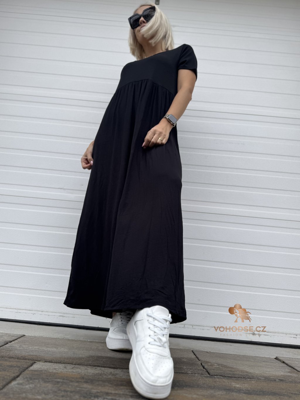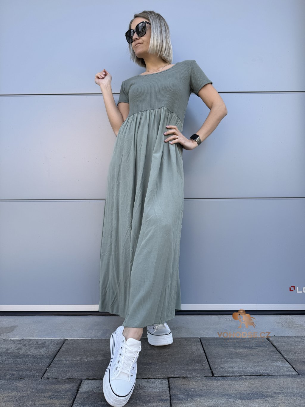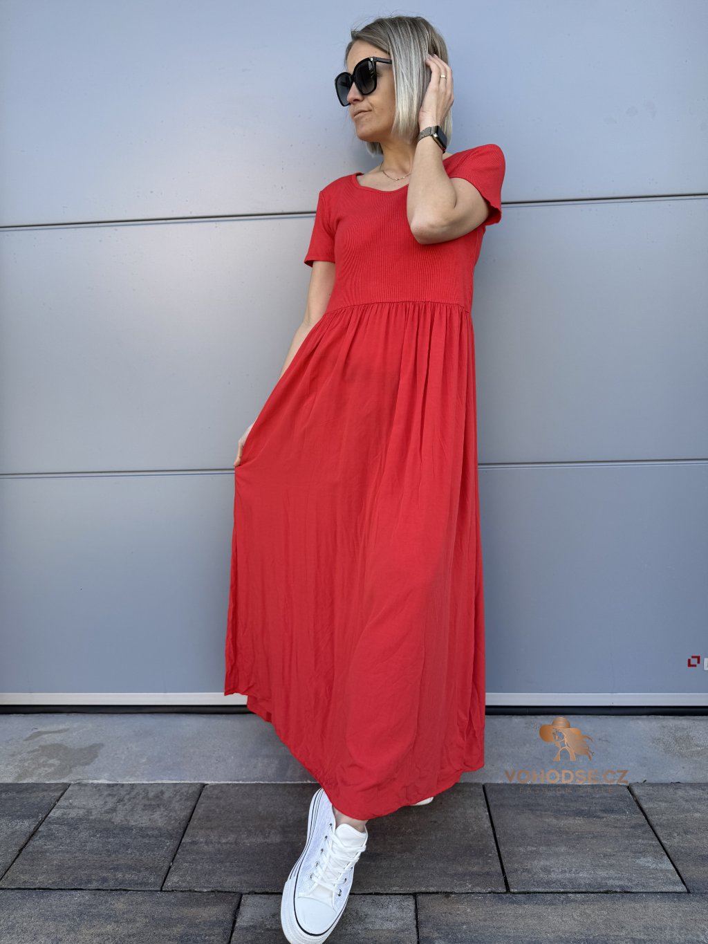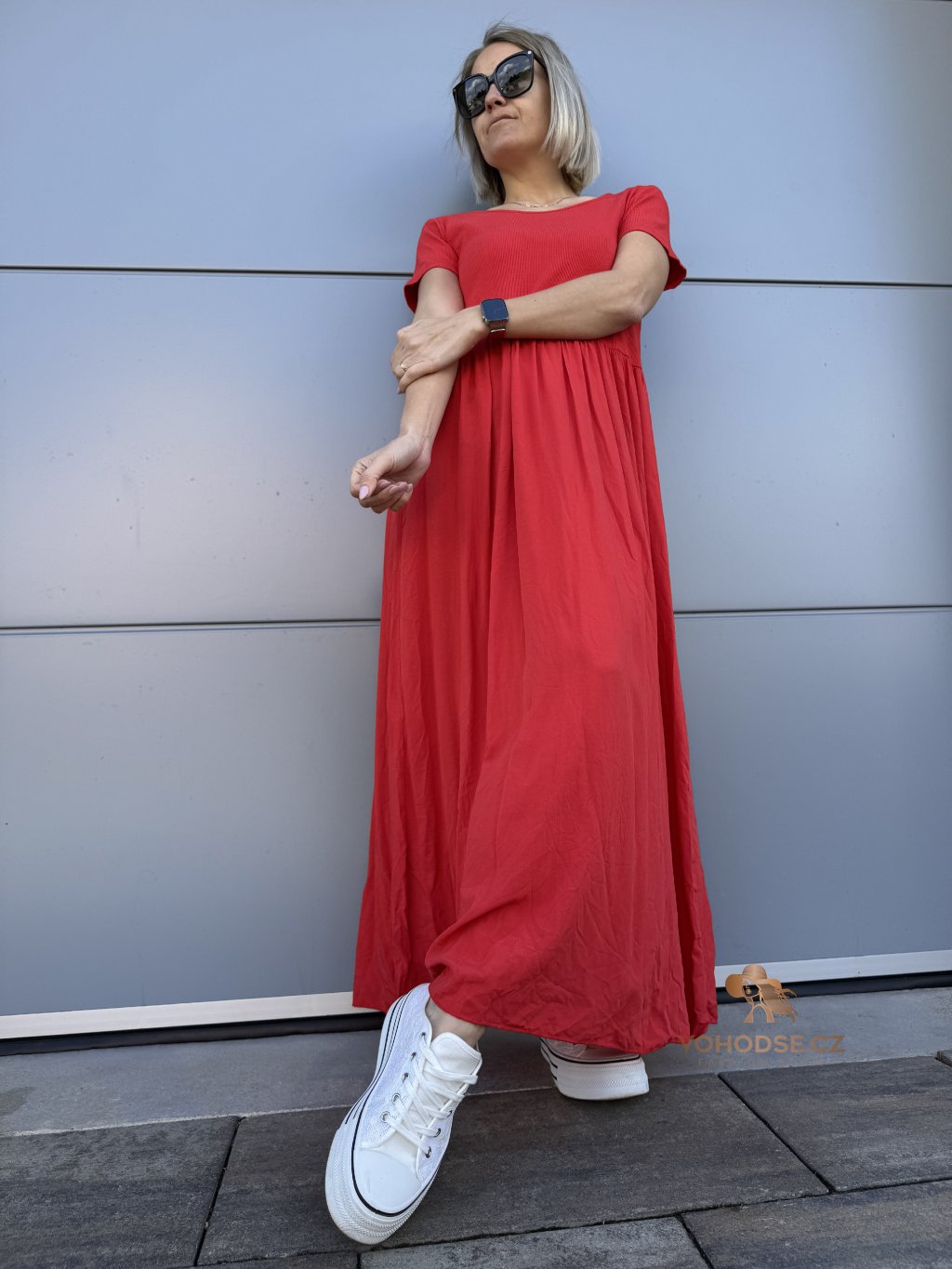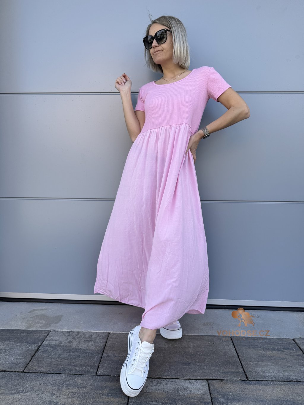 - Perfektní dlouhé dámské šaty s krátkým rukávem