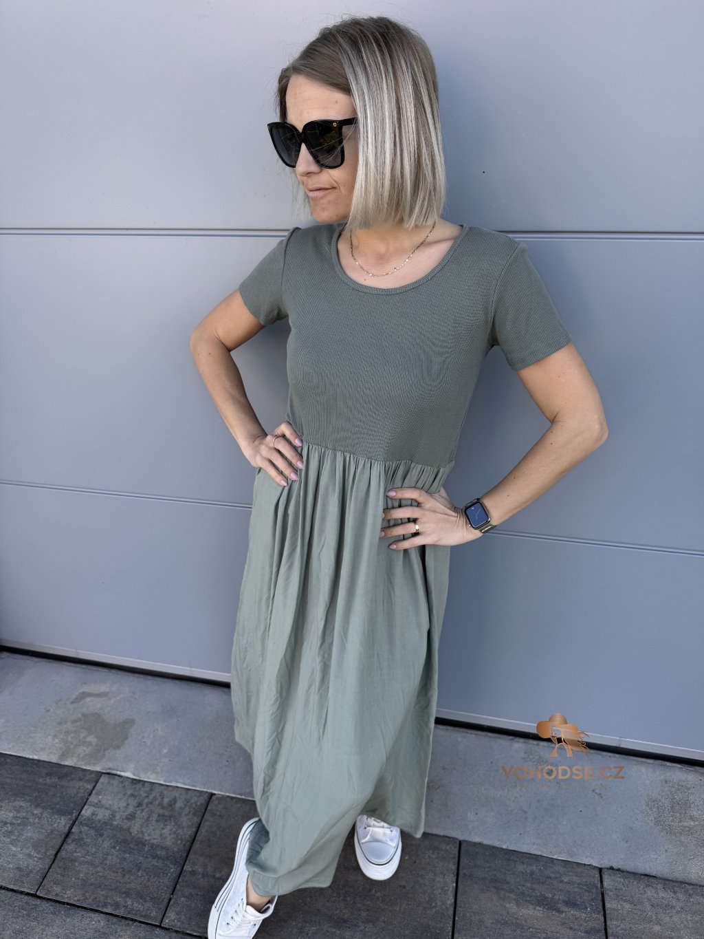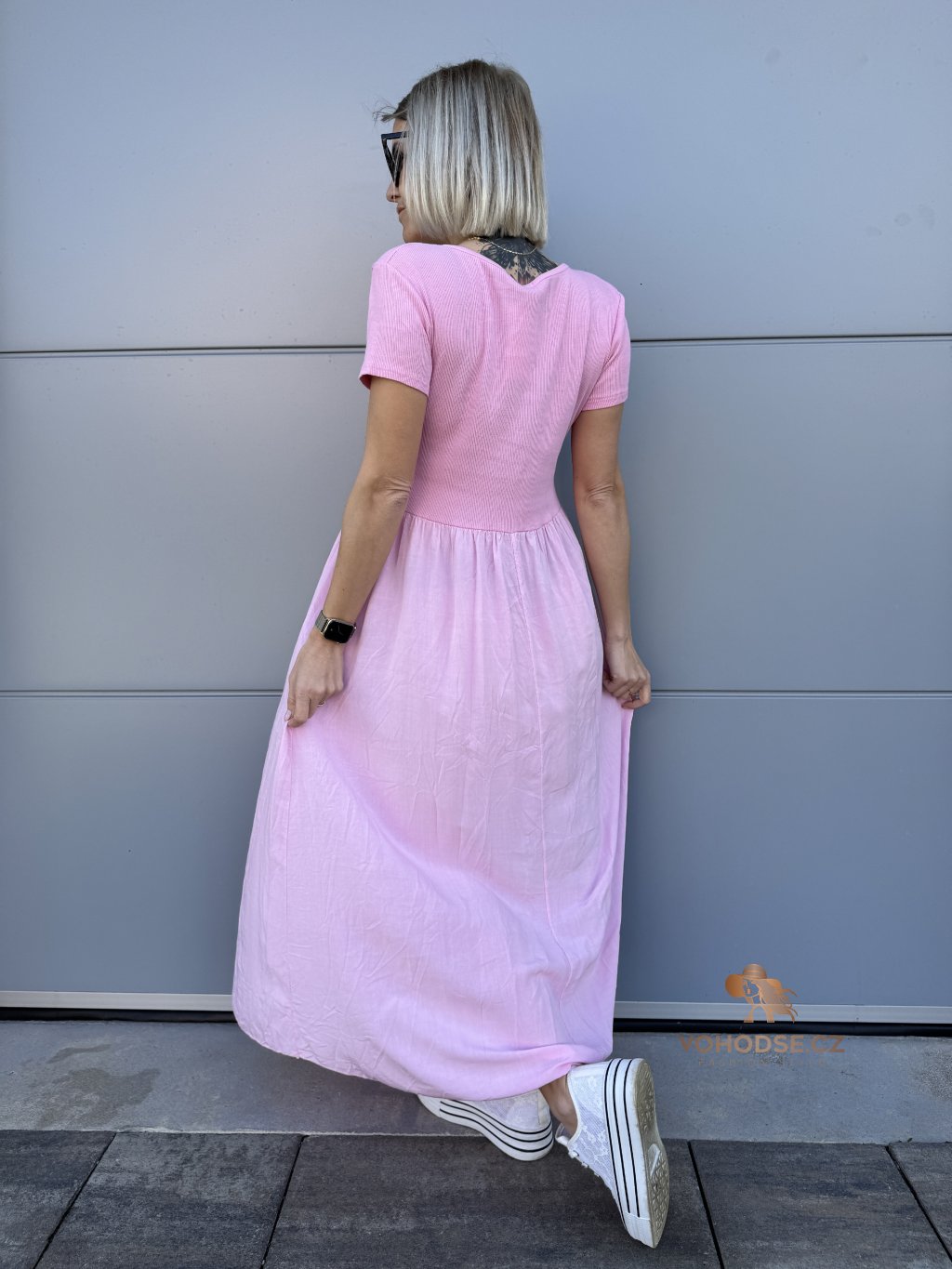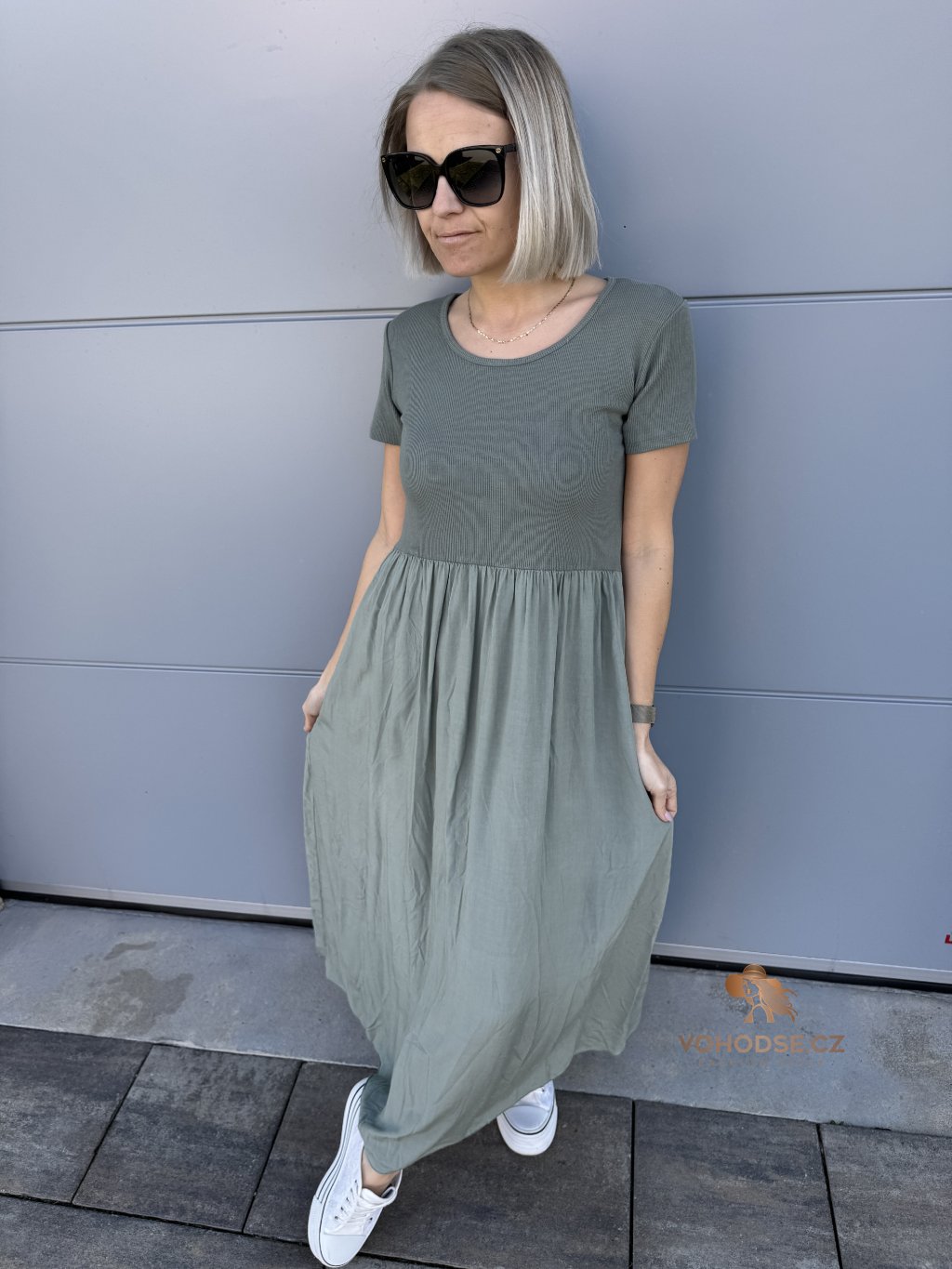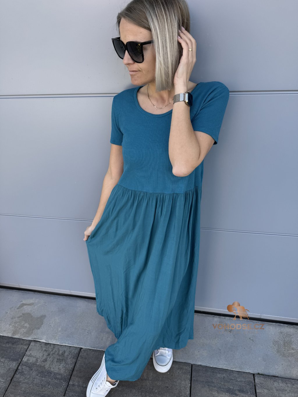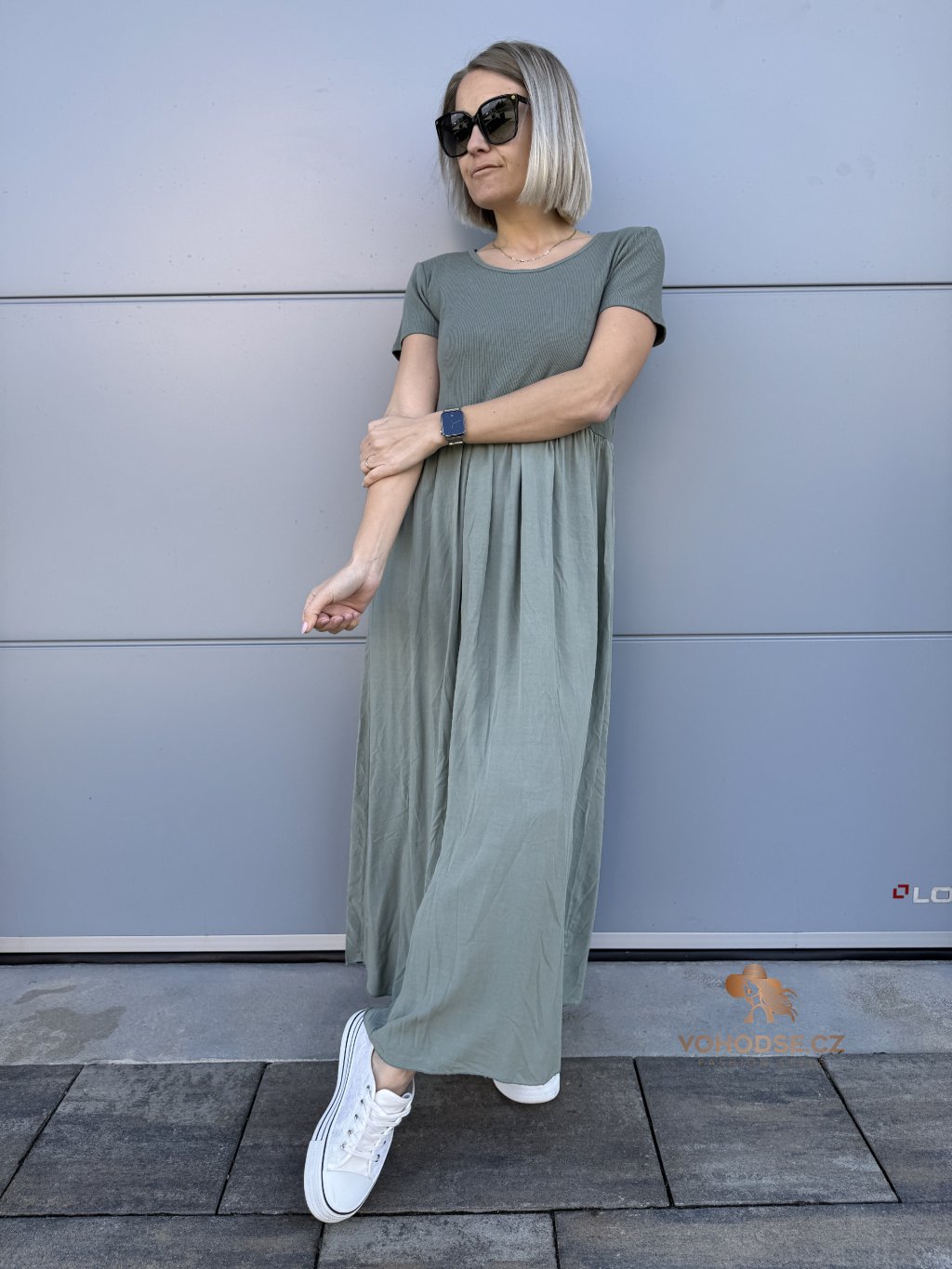 - Perfektní dlouhé dámské šaty s krátkým rukávem