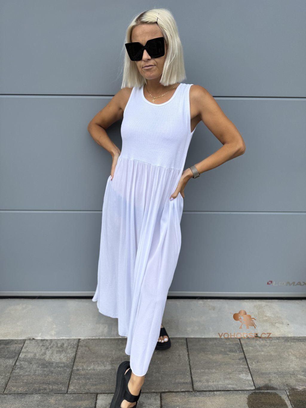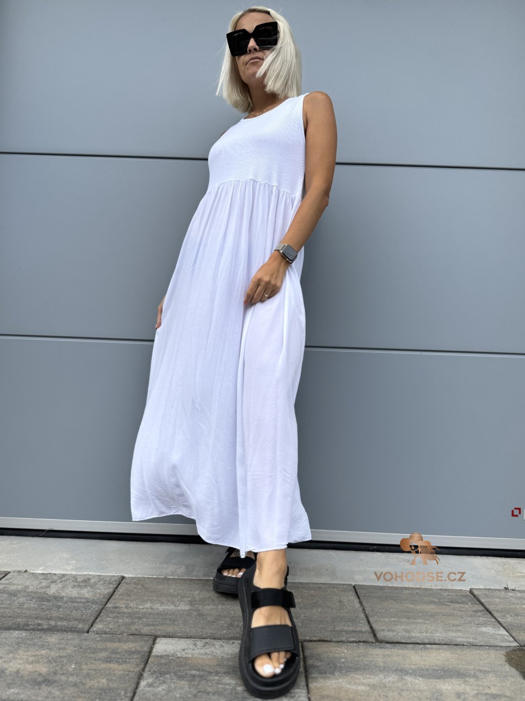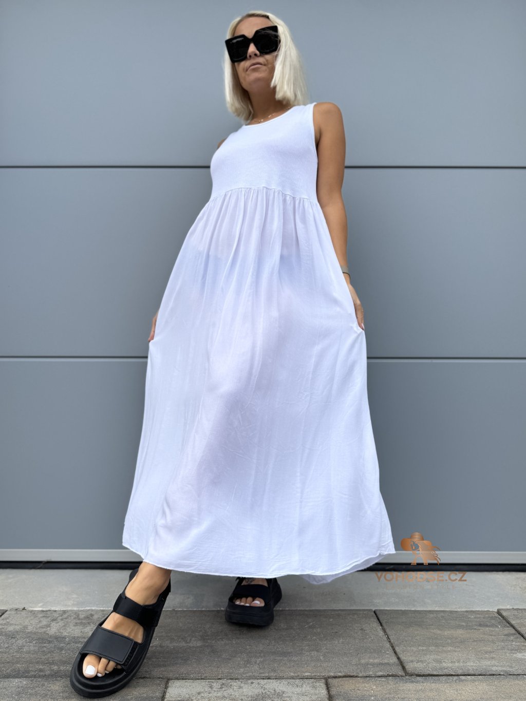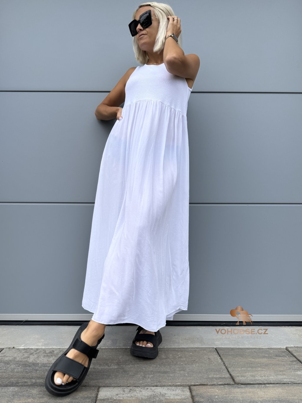- Moderní dámské šaty bez rukávu nově v dlouhém provedení