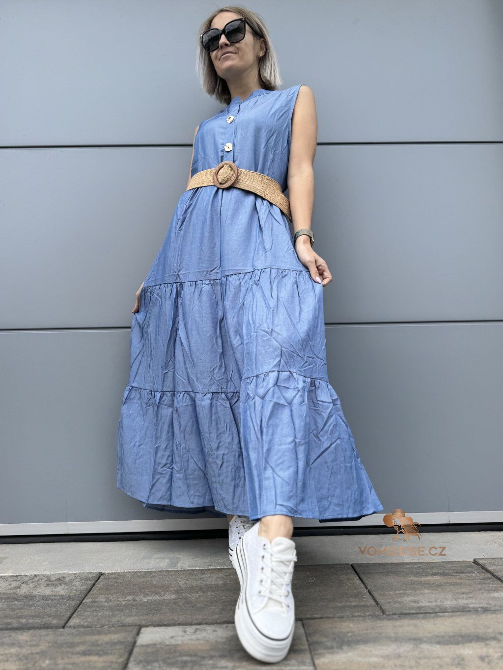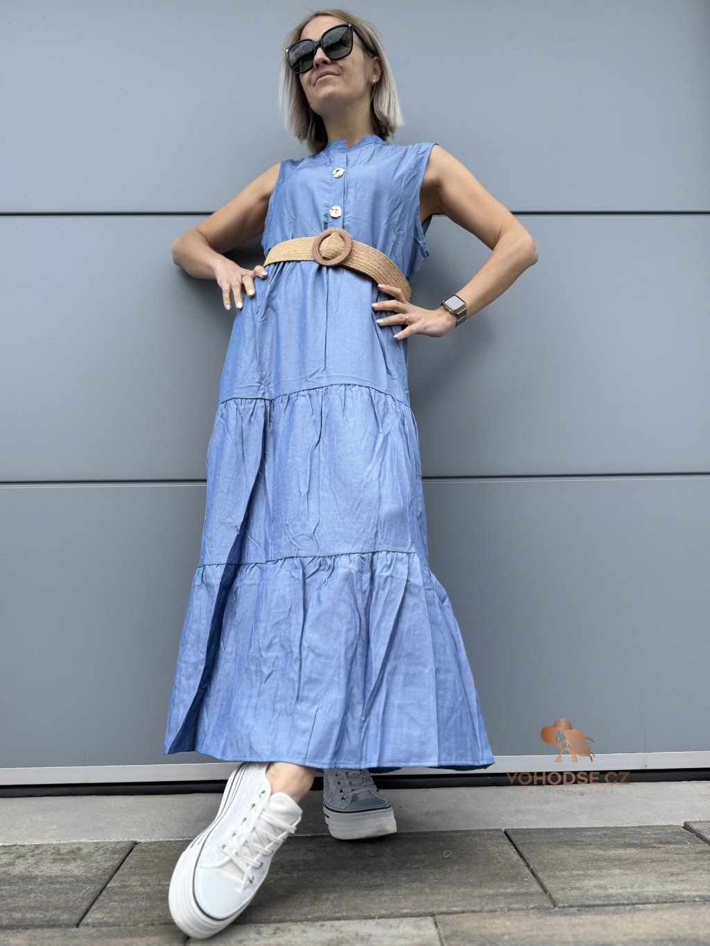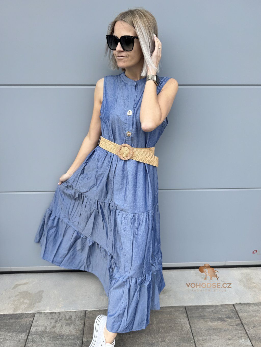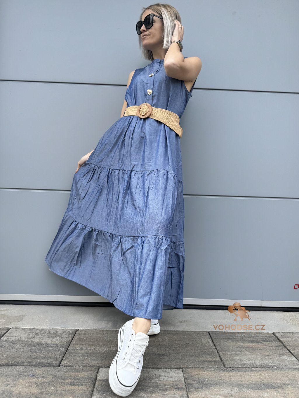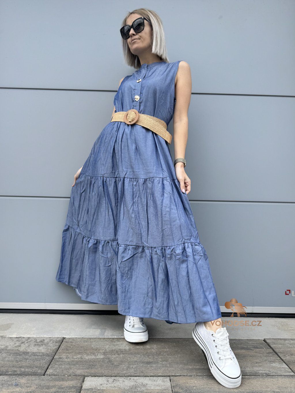 Romantické, vzdušné a maximálně pohodlné. Tyto dlouhé šaty jsou ideální volbou pro dny, kdy chceš vypadat stylově, ale zároveň se cítit úplně volně. Lehký materiál krásně splývá a díky vrstveným volánům dodává šatům ženský a jemný vzhled. Zvýraznění pasu pomocí pásku vytvoří krásnou siluetu a outfit působí upraveně a bez námahy.