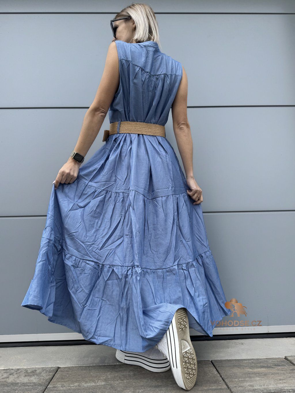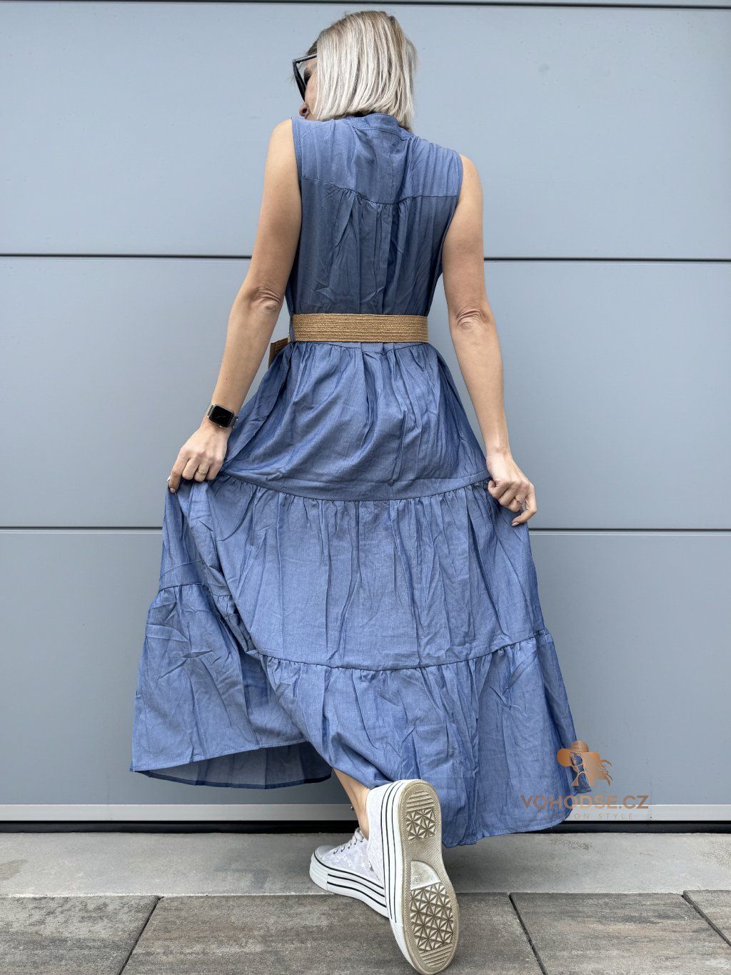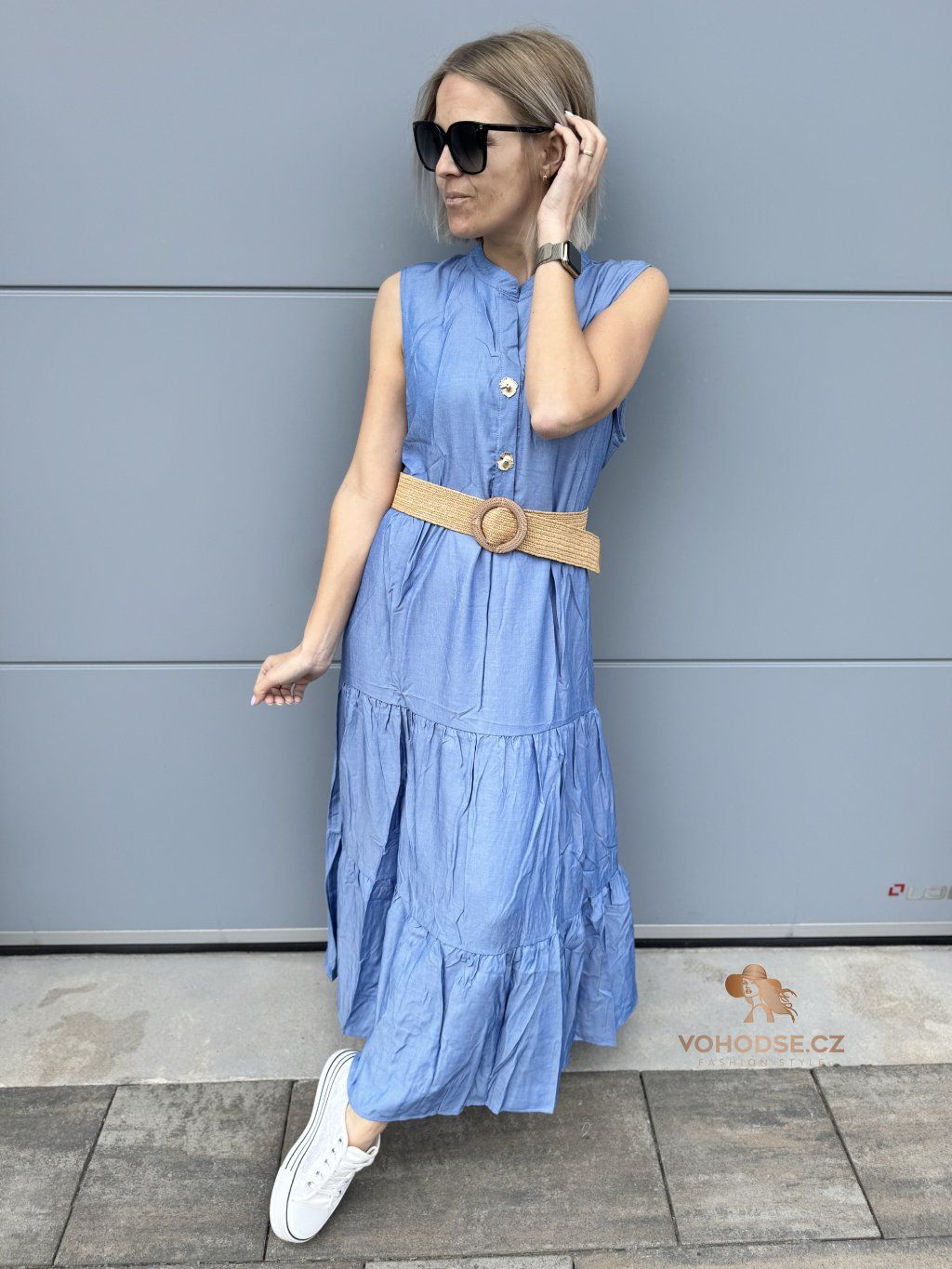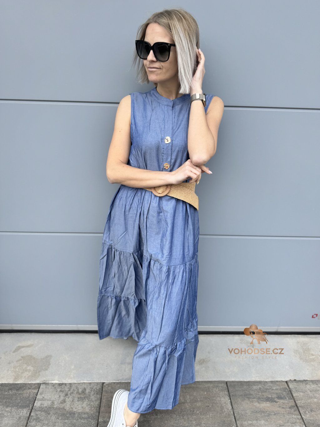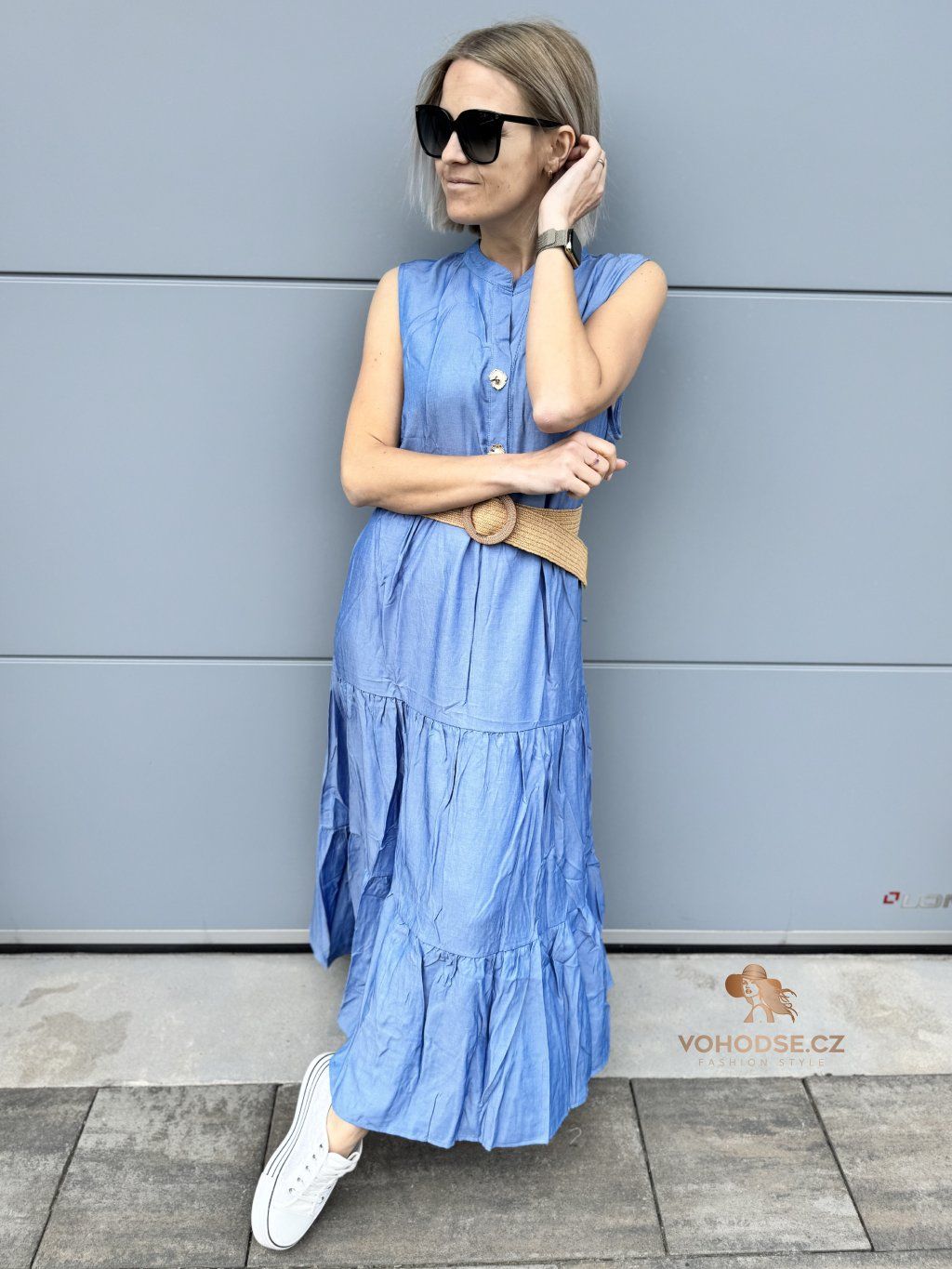 Romantické, vzdušné a maximálně pohodlné. Tyto dlouhé šaty jsou ideální volbou pro dny, kdy chceš vypadat stylově, ale zároveň se cítit úplně volně. Lehký materiál krásně splývá a díky vrstveným volánům dodává šatům ženský a jemný vzhled. Zvýraznění pasu pomocí pásku vytvoří krásnou siluetu a outfit působí upraveně a bez námahy.
