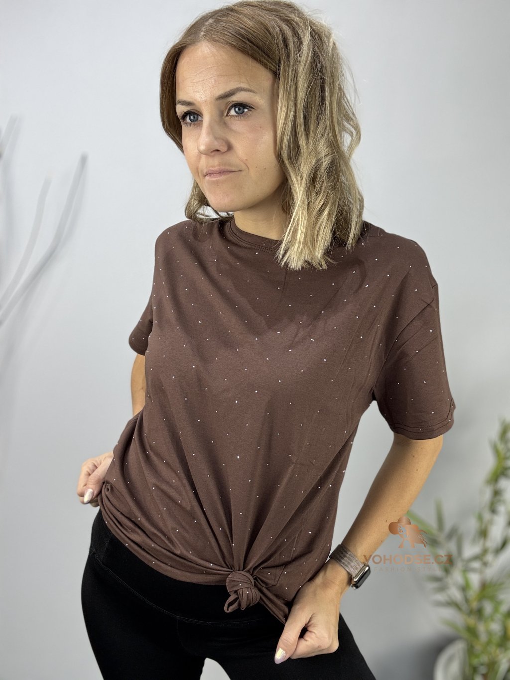 - Krásné bavlněné dámské triko zdobeno kamínky