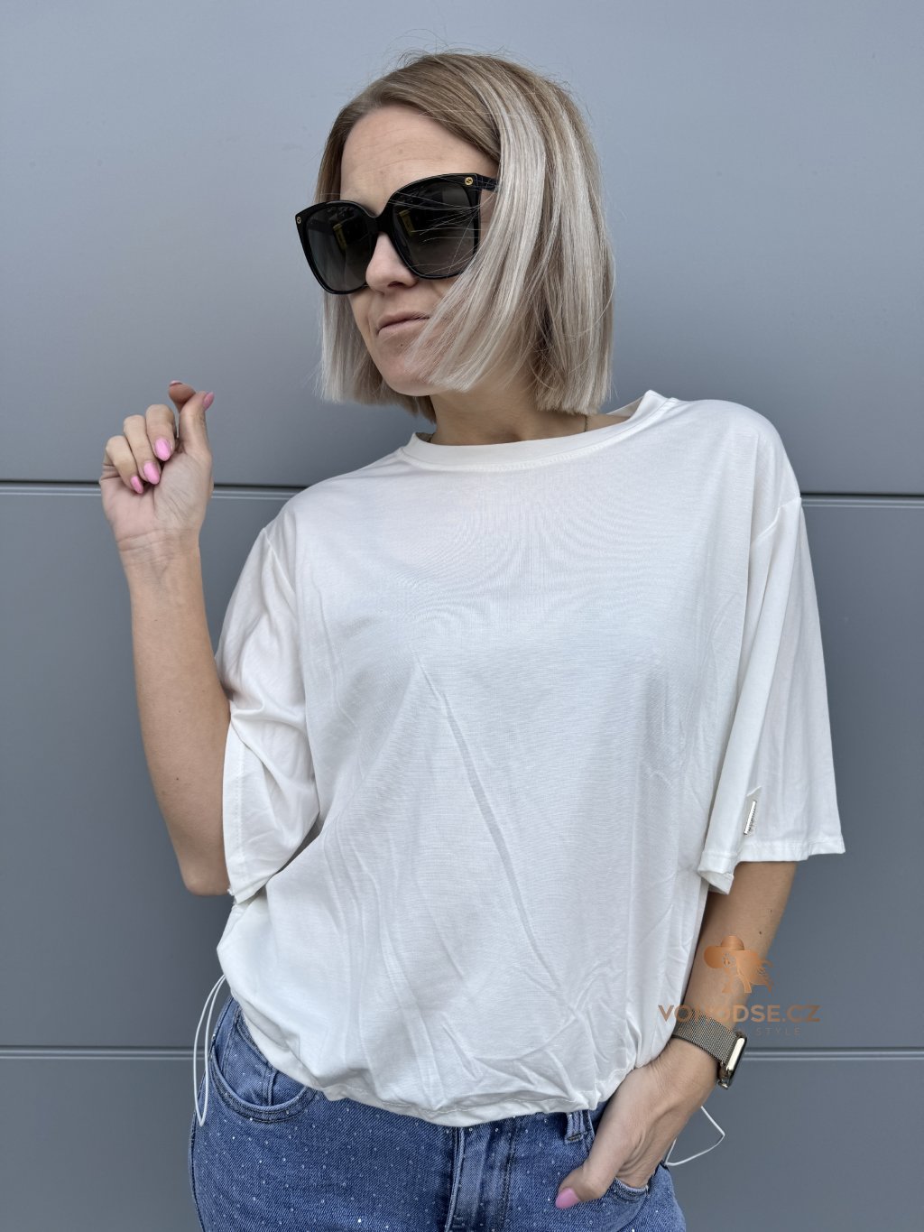 Pohodlné a stylové tričko, které si rychle oblíbíte pro jeho univerzálnost. Volnější střih zajišťuje maximální komfort při nošení a spodní lem je doplněn o šňůrku na stažení, díky které si můžete upravit délku i tvar podle svého stylu.