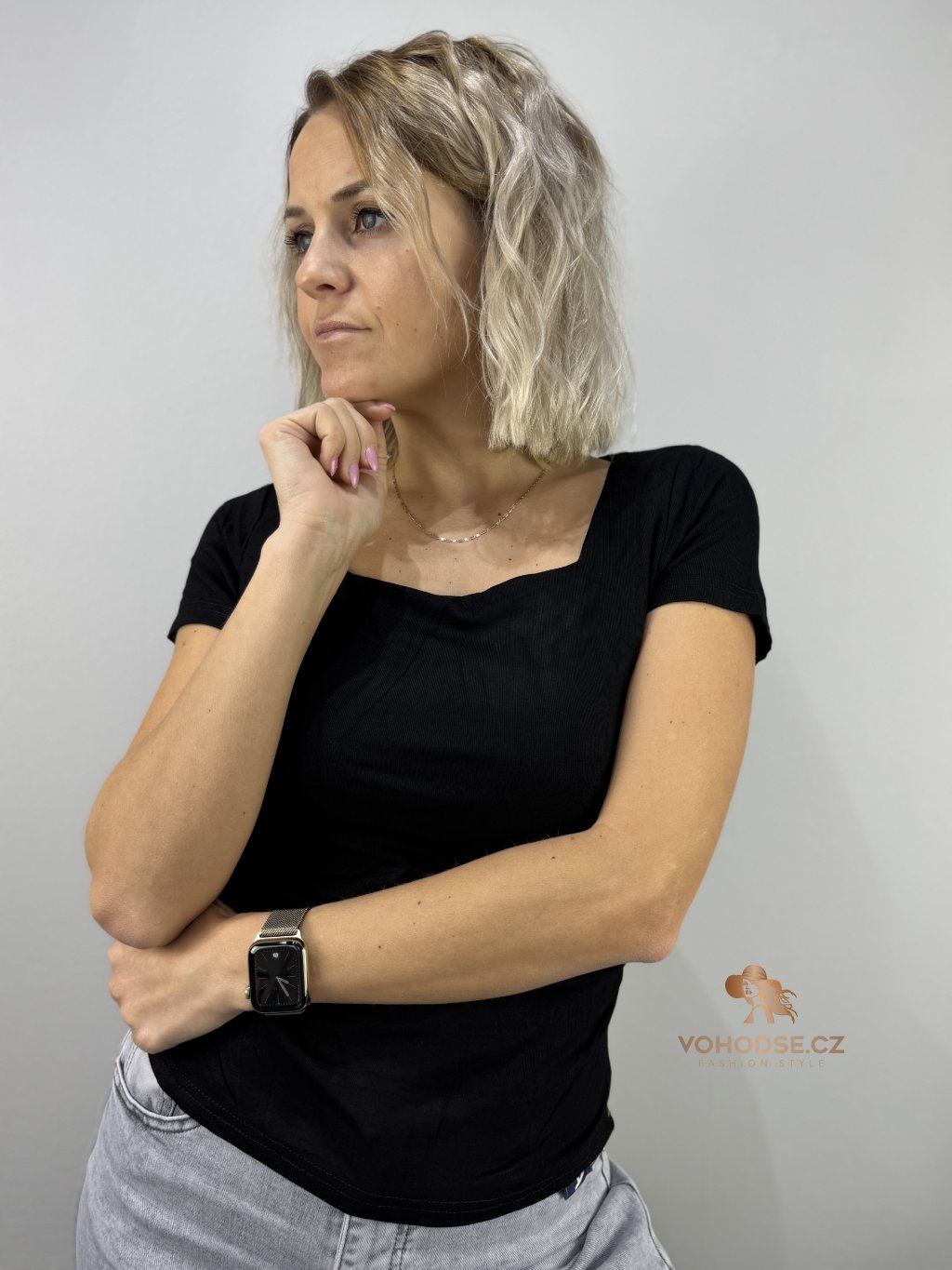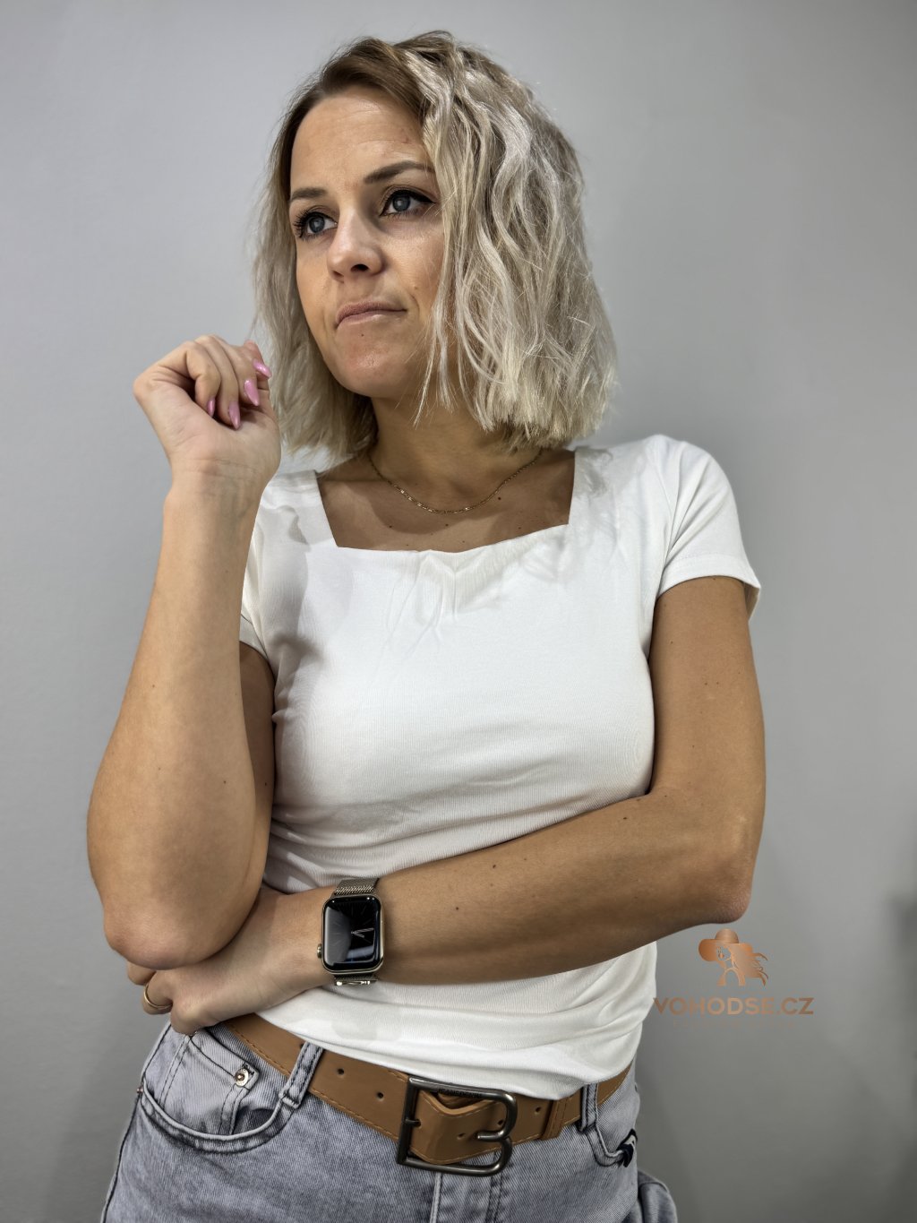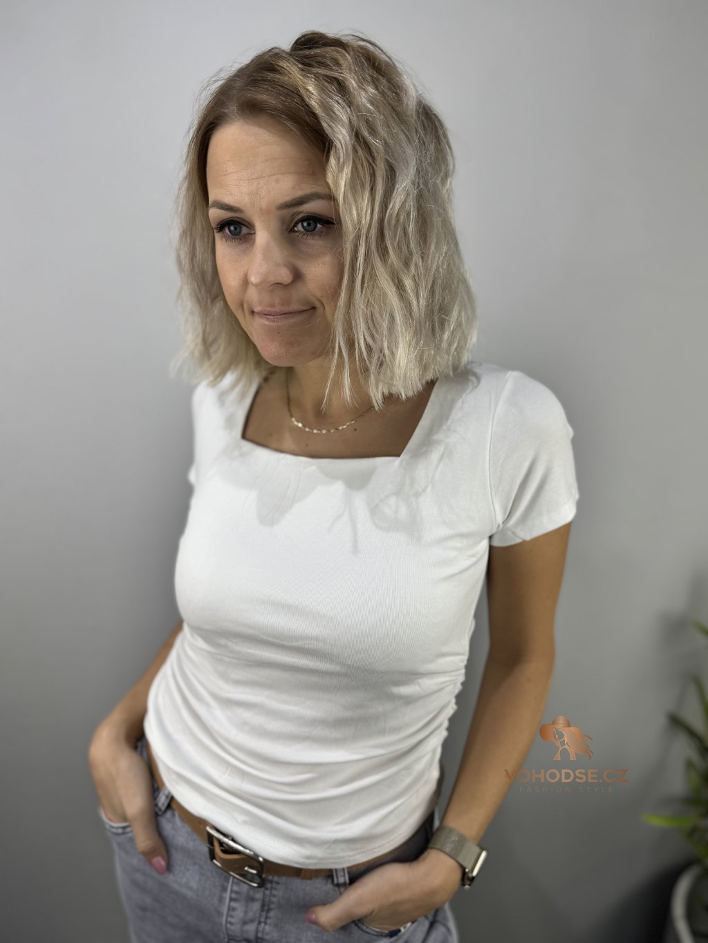 • Jednoduché dámské tričko s moderním čtvercovým výstřihem