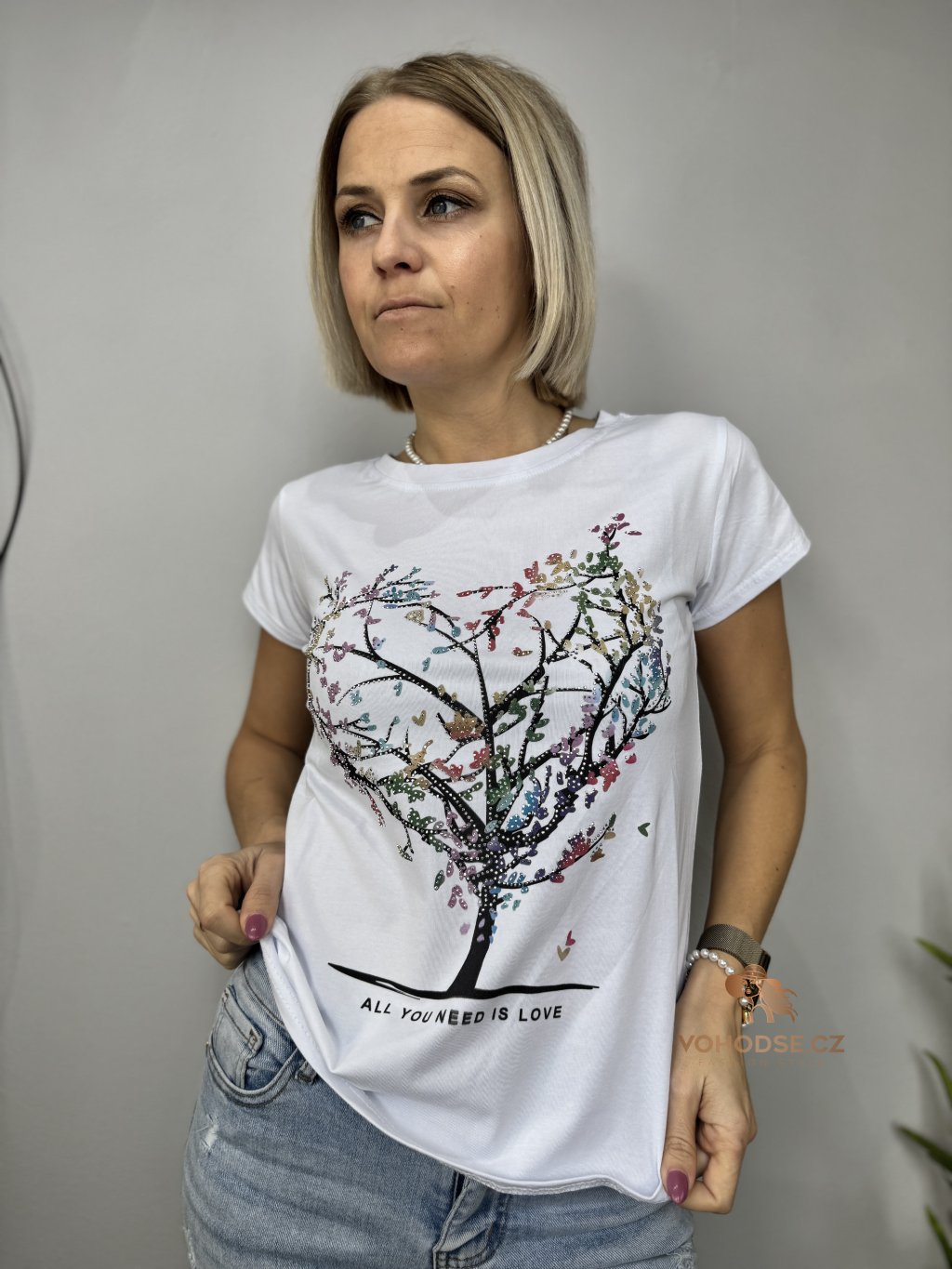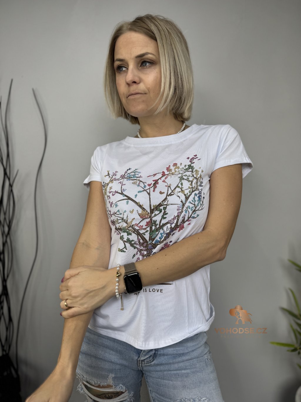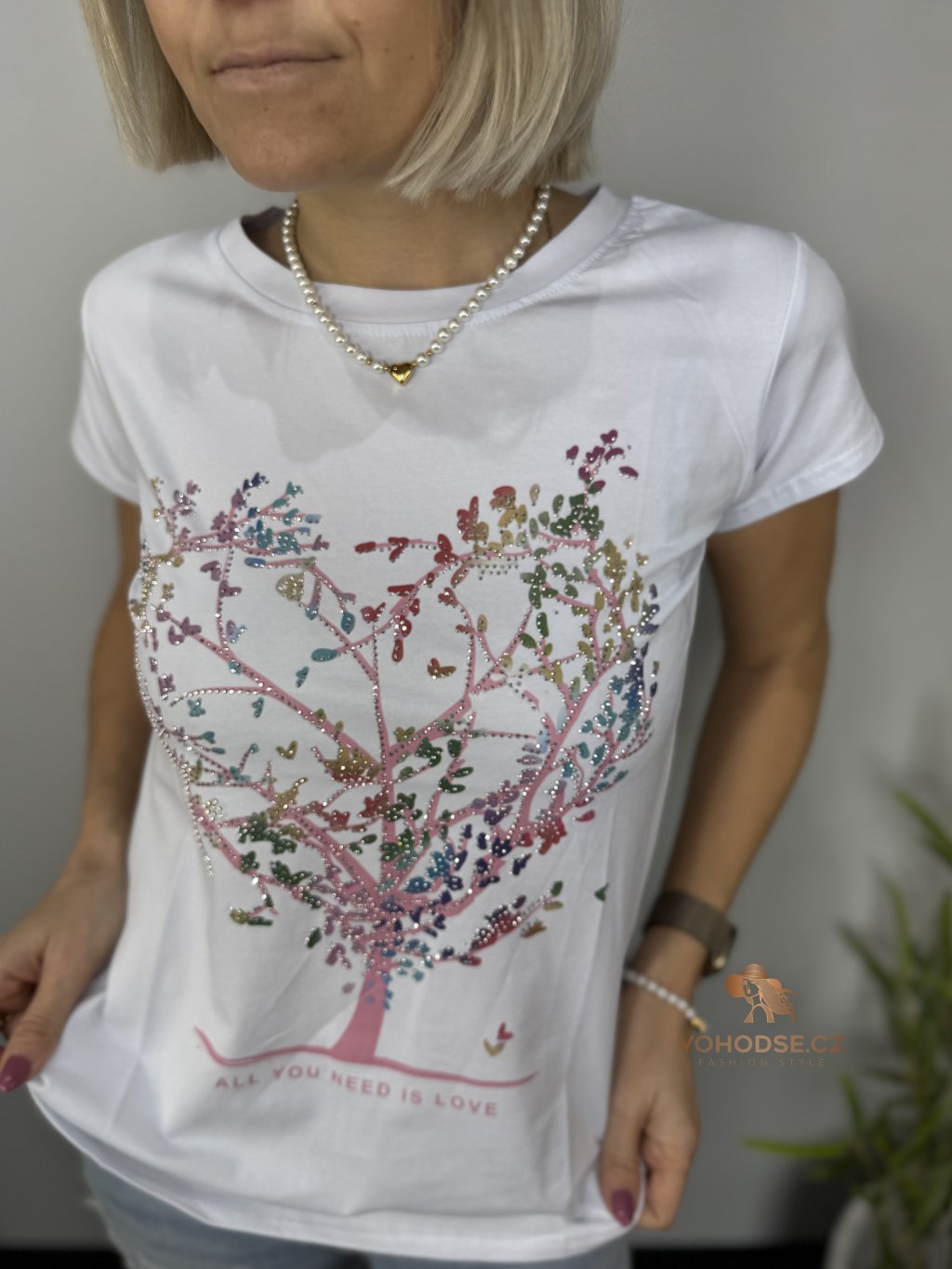 Stylové bílé tričko s originálním motivem stromu ve tvaru srdce, který symbolizuje lásku, jemnost a ženskost. Barevný potisk krásně oživí celý outfit a dodá mu jedinečný vzhled. Tričko má pohodlný střih, příjemný materiál a skvěle se kombinuje s džínami, kraťasy i sukní.