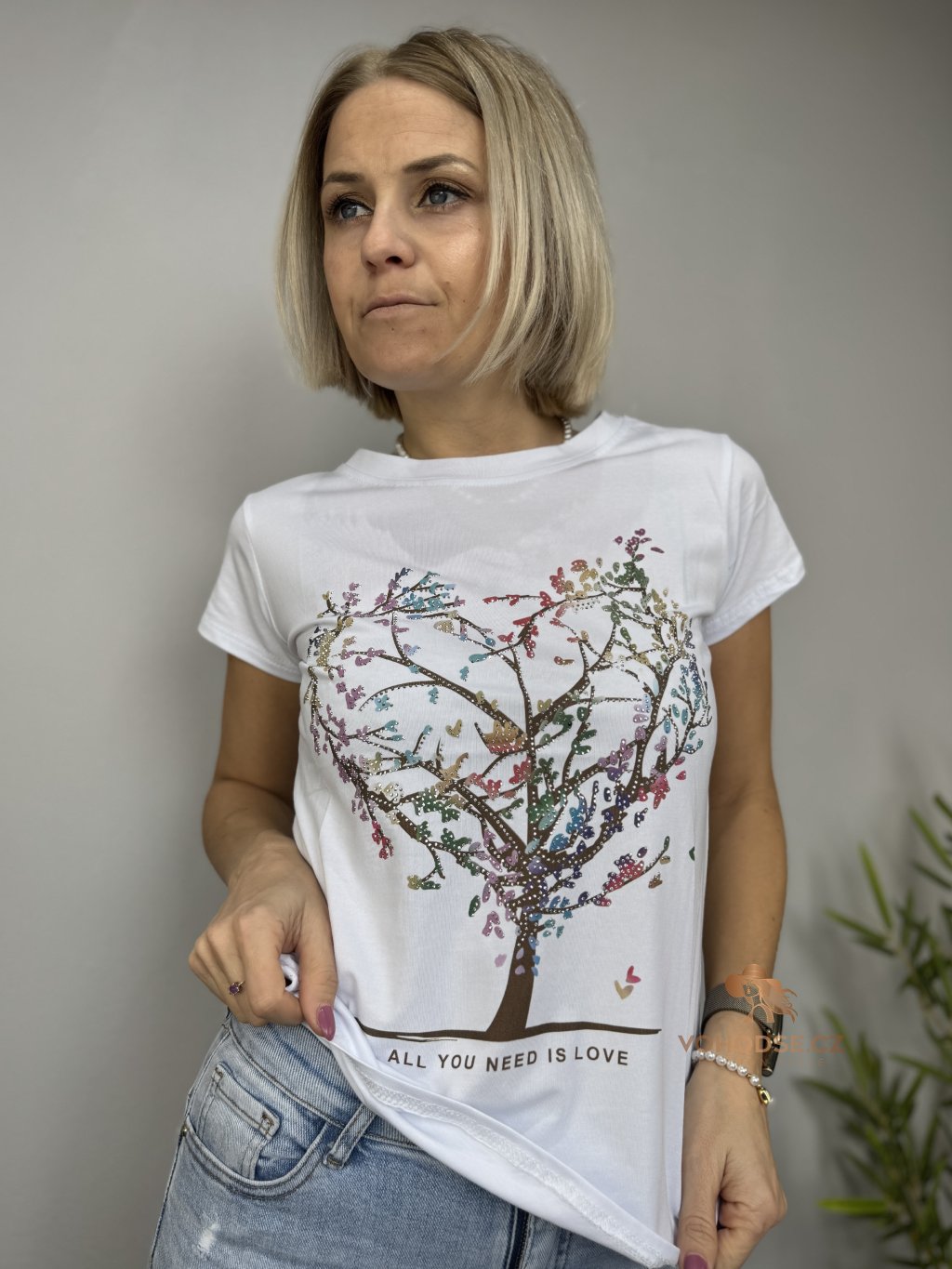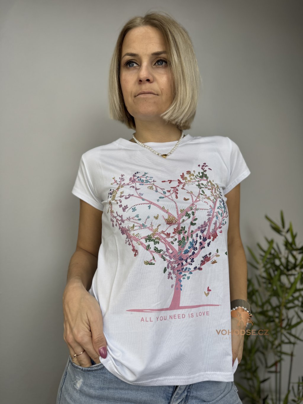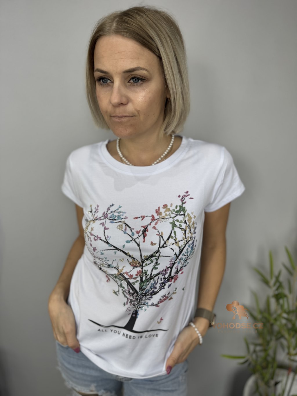 Stylové bílé tričko s originálním motivem stromu ve tvaru srdce, který symbolizuje lásku, jemnost a ženskost. Barevný potisk krásně oživí celý outfit a dodá mu jedinečný vzhled. Tričko má pohodlný střih, příjemný materiál a skvěle se kombinuje s džínami, kraťasy i sukní.