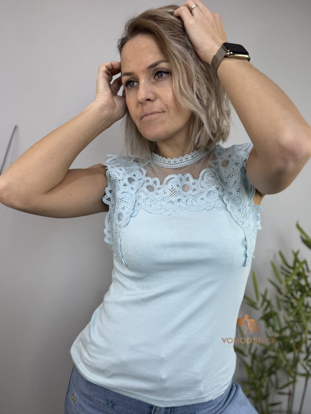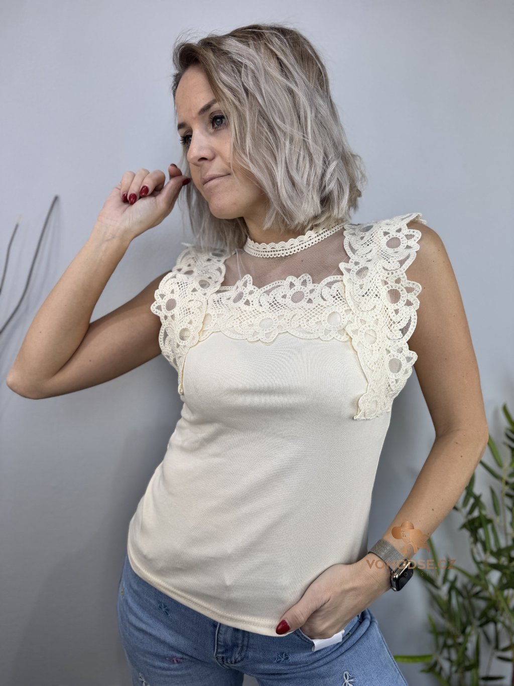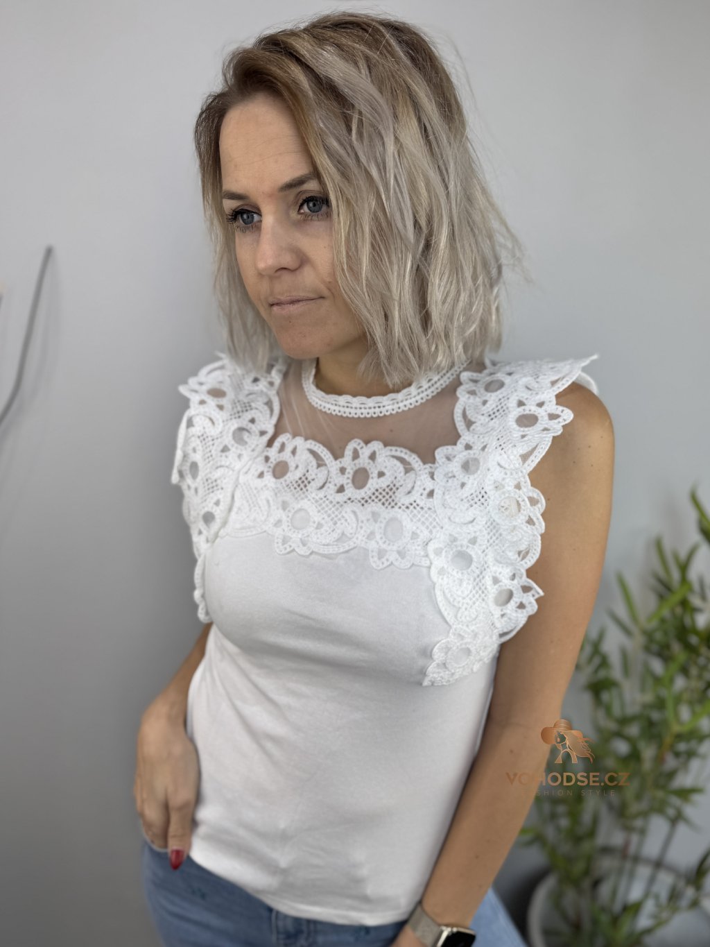 - Dámské bavlněné dámské triko zdobeno krajkou a síťkou v horní části