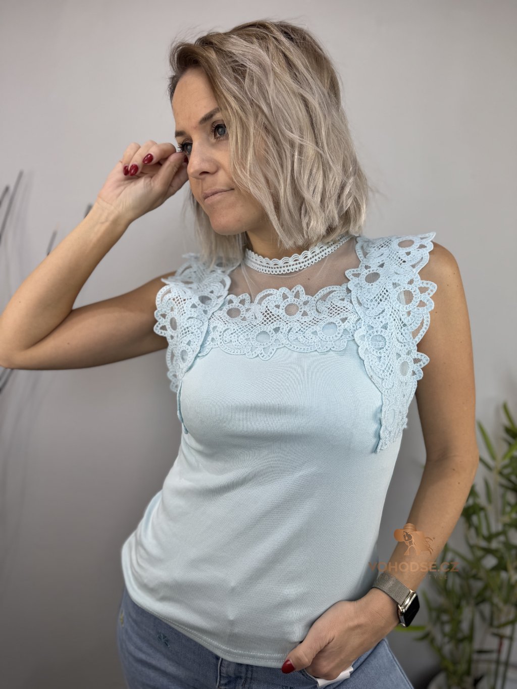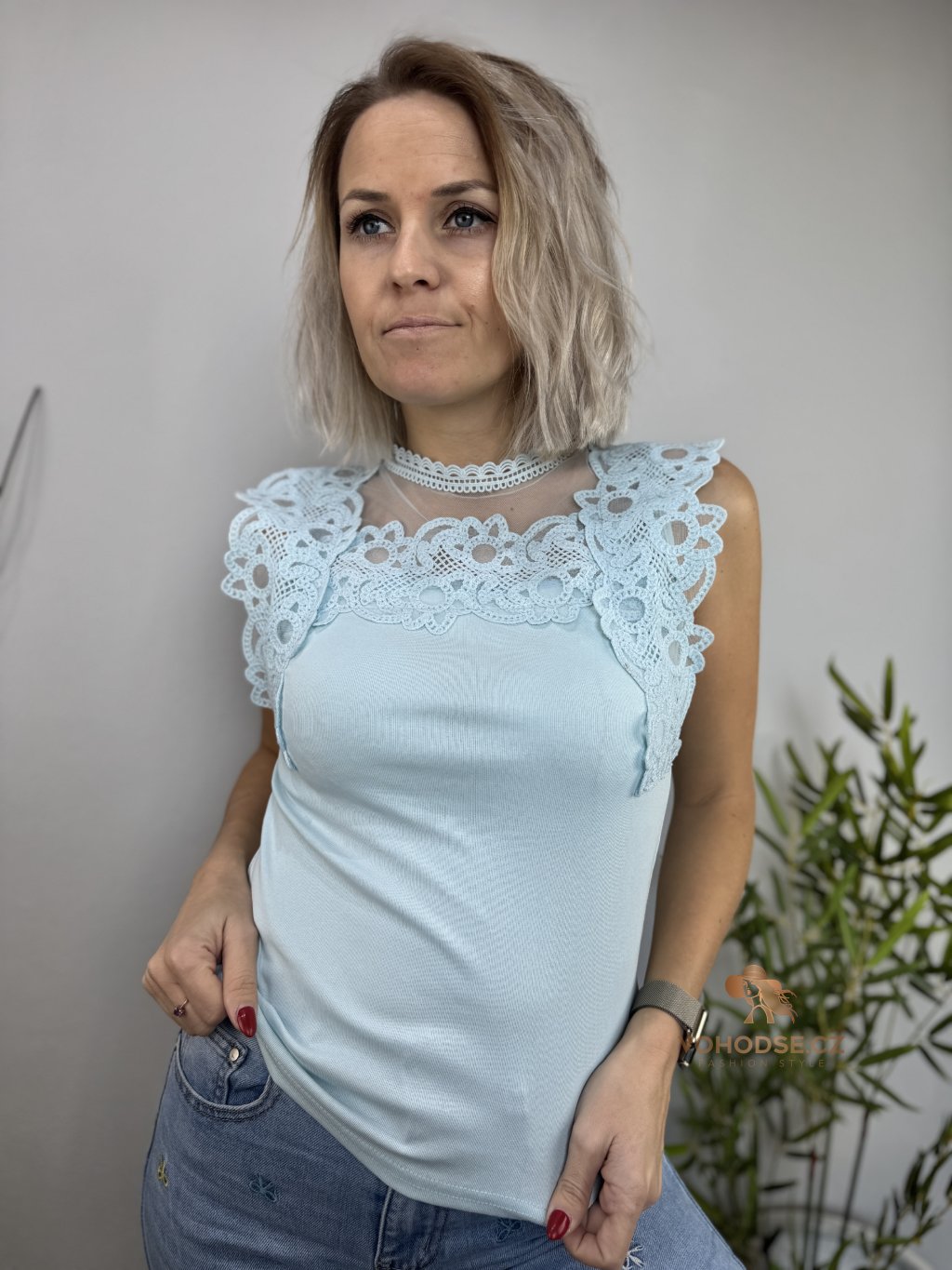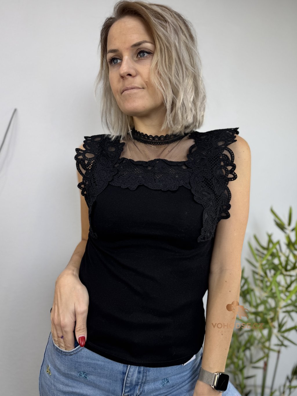 - Dámské bavlněné dámské triko zdobeno krajkou a síťkou v horní části