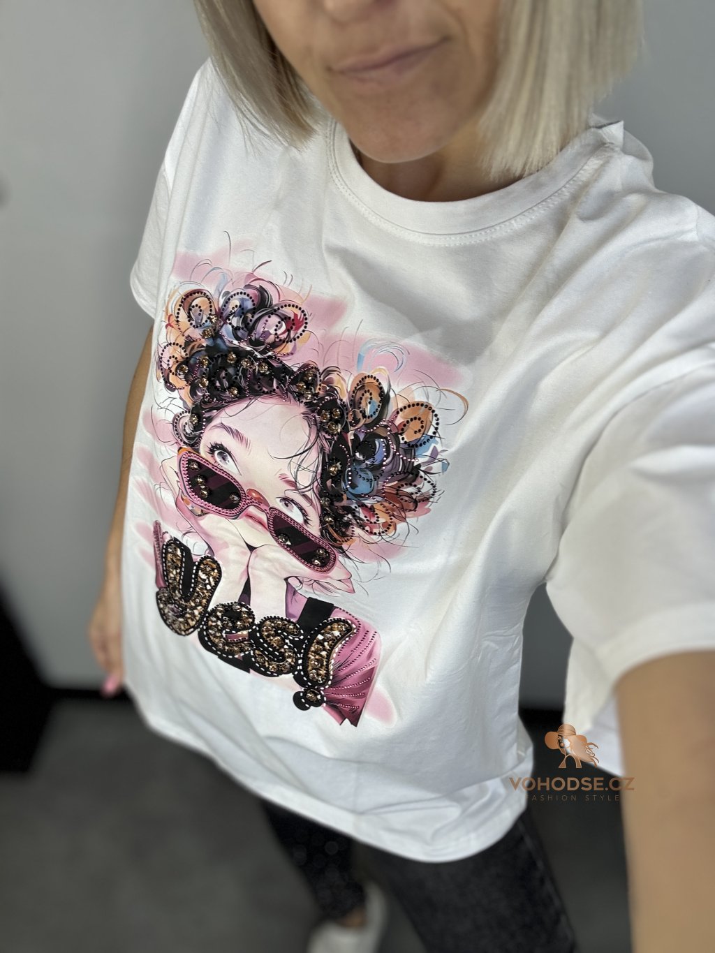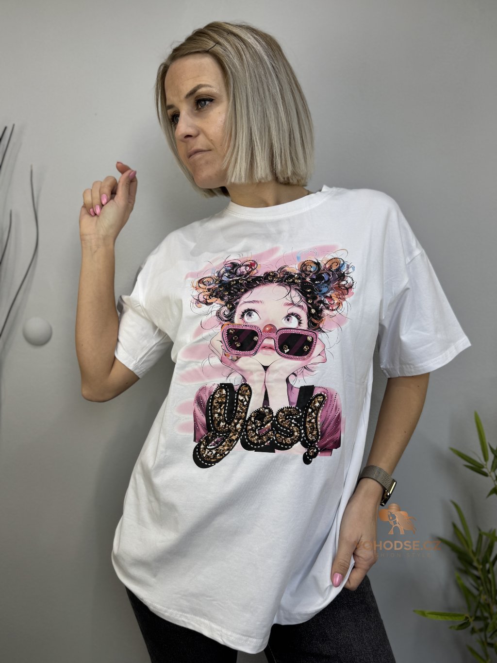 Originální tričko s výrazným potiskem, který zaujme na první pohled. Moderní ilustrace s brýlemi a nápisem YES! dodá šmrnc, hrdost a sebevědomý vibe, který se nebojí být vidět. Volnější, pohodlný střih krásně sedí a skvěle se kombinuje s džíny, legínami i sakem pro trendy kontrast.