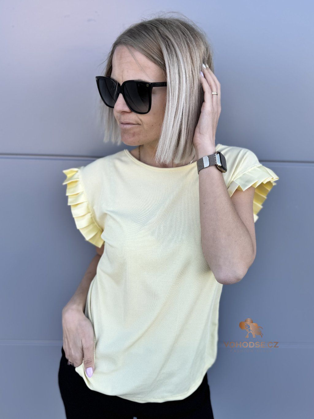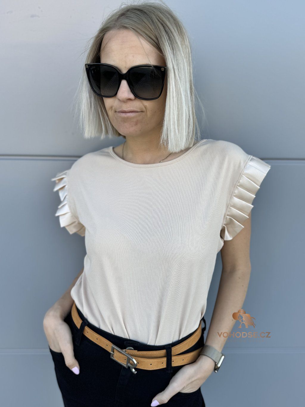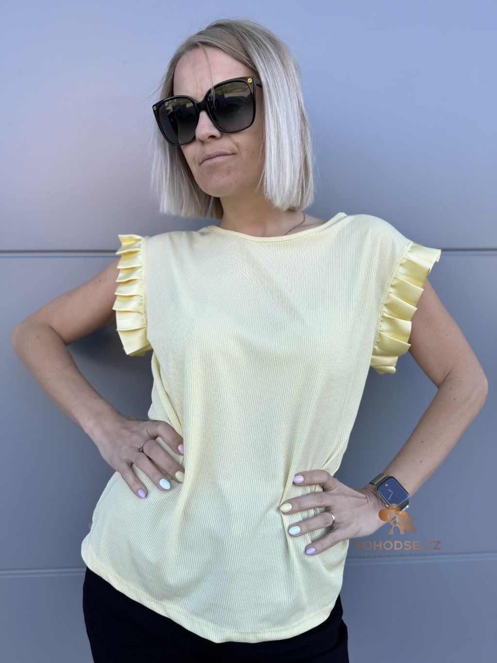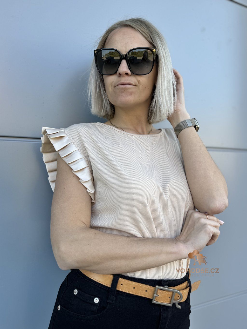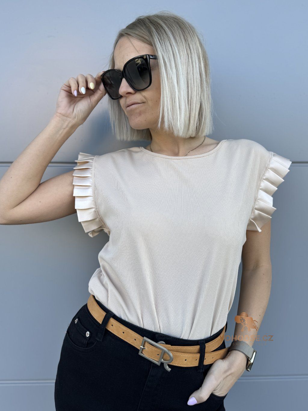 Tričko, které zaujme na první pohled. JEdnoduchý střih doplněný o výrazné řasené rukávy dodává celému outfitu šmrnc a originalitu. Díky příjemnému, lehkému materiálu se skvěle nosí a krásně splývá.