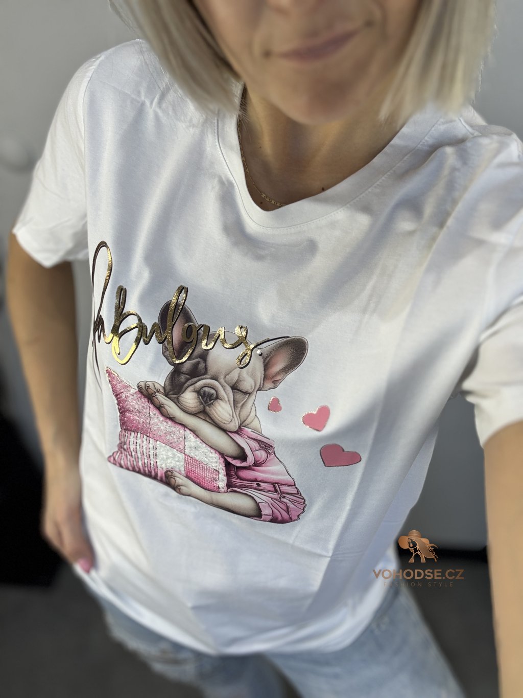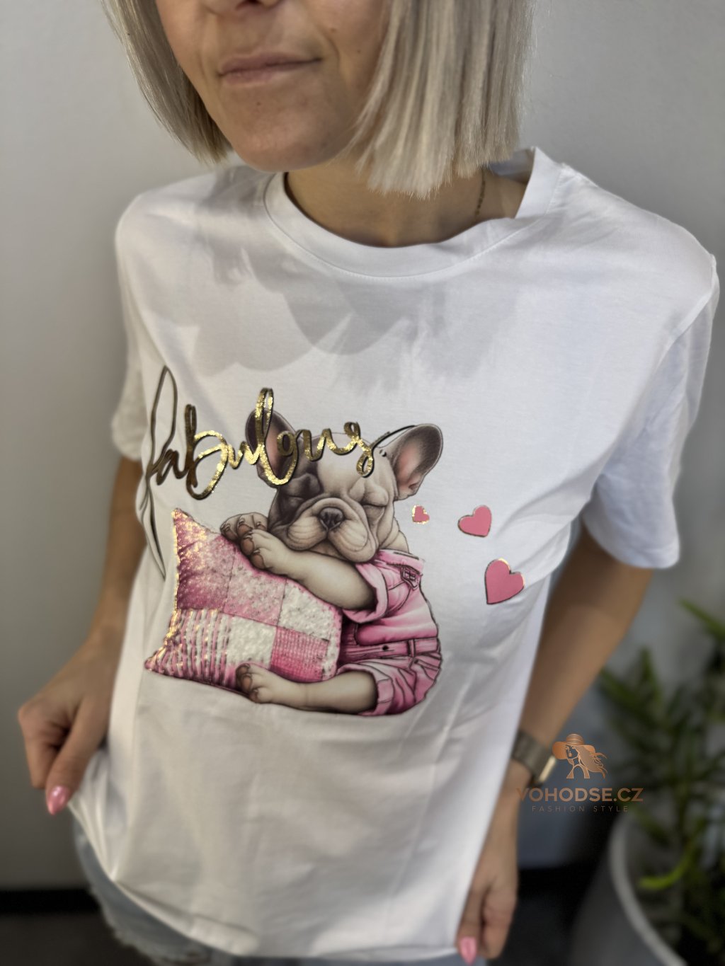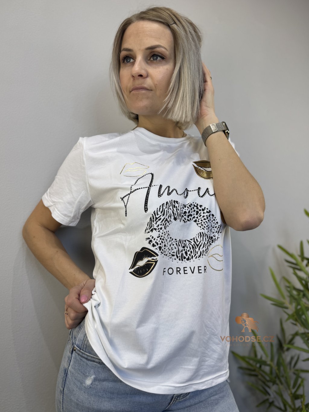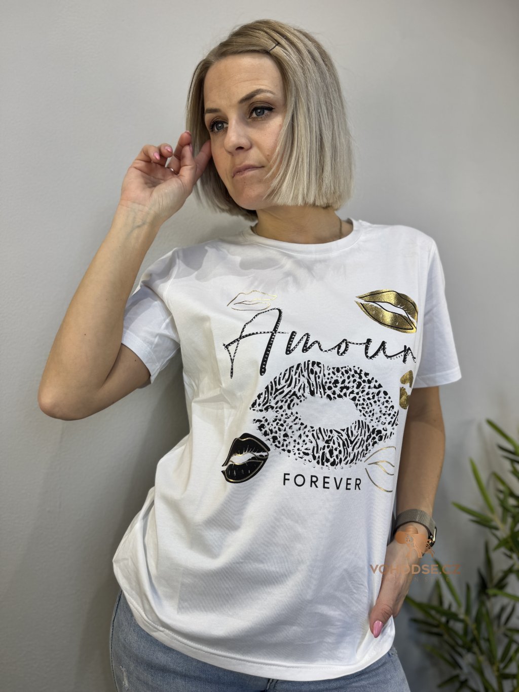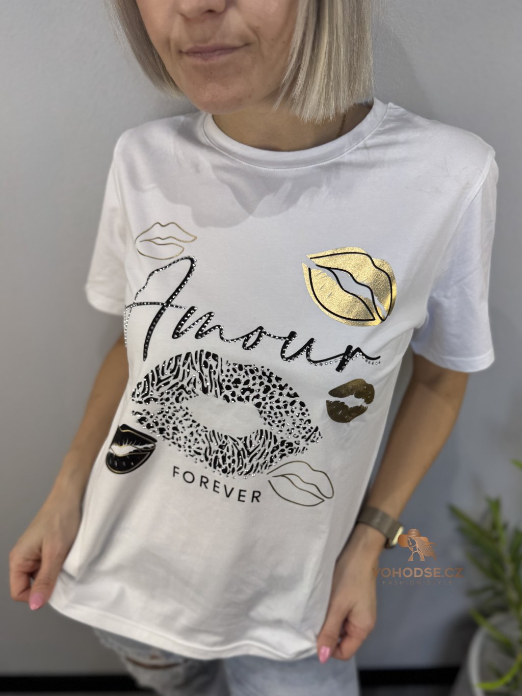 Styl, hravost a špetka lesku v jednom kousku. Toto tričko oživí každý outfit díky výraznému potisku s módními motivy a jemnými zlatými detaily, které dodávají luxusní nádech. Volnější střih zajišťuje pohodlí po celý den a příjemný materiál je ideální na běžné nošení.
