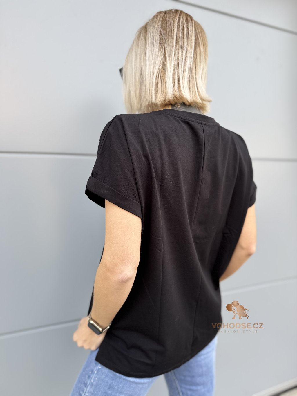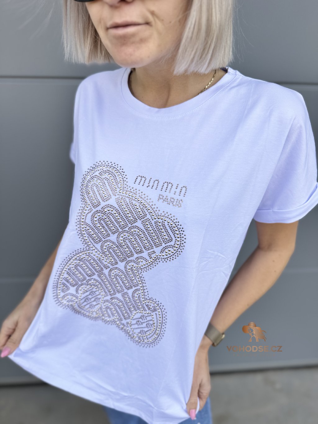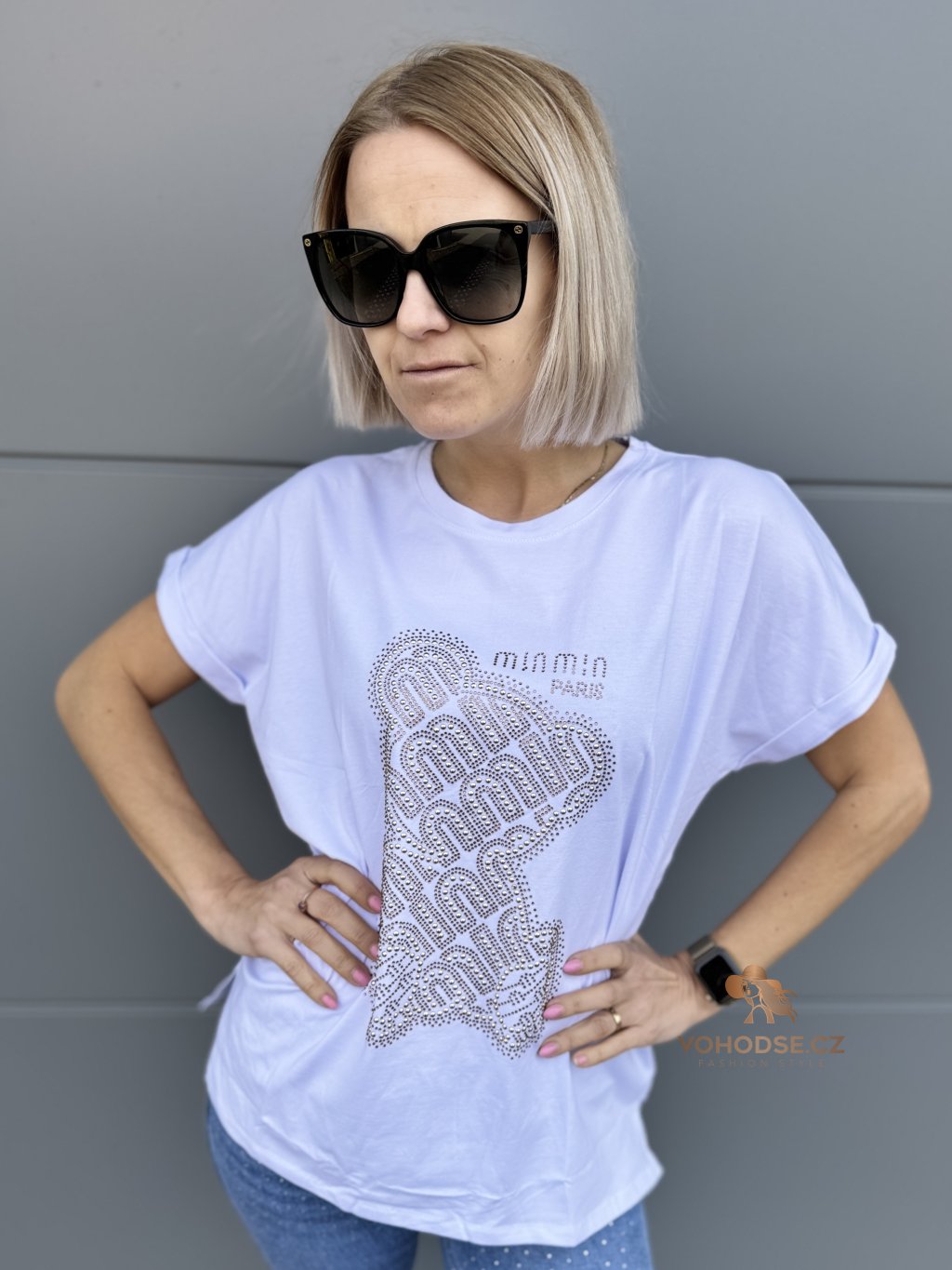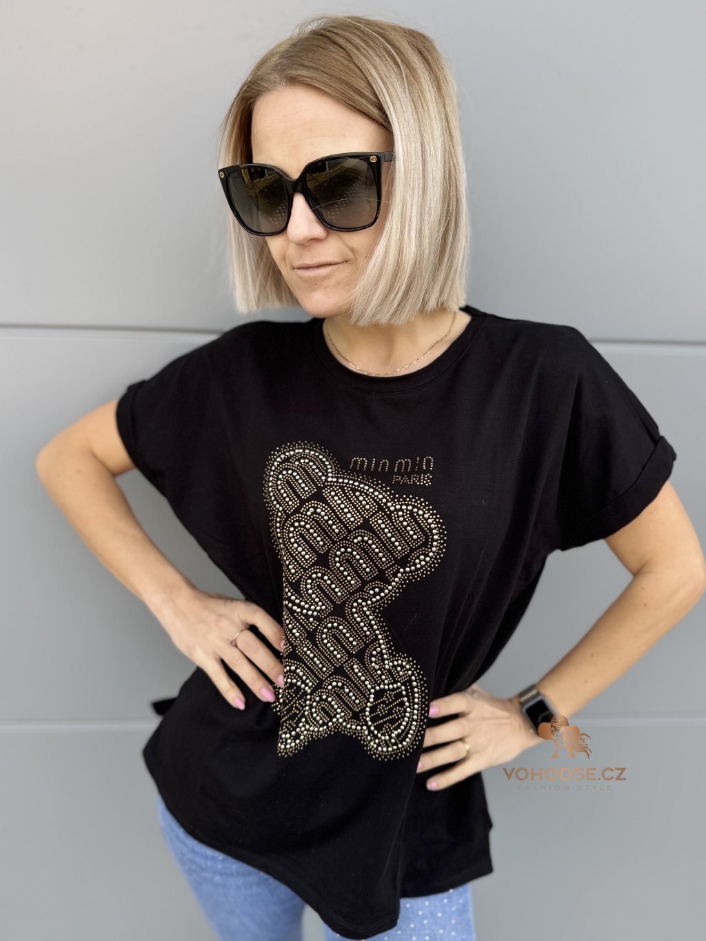 Stylové tričko, které zaujme na první pohled. Dominantou je výrazný motiv medvídka tvořený jemnými kamínky, které dodávají tričku elegantní a originální vzhle. Volnější střih zajišťuje pohodlí při nošení a zároveň skvěle sedí k džínům, šortkám i sukním.