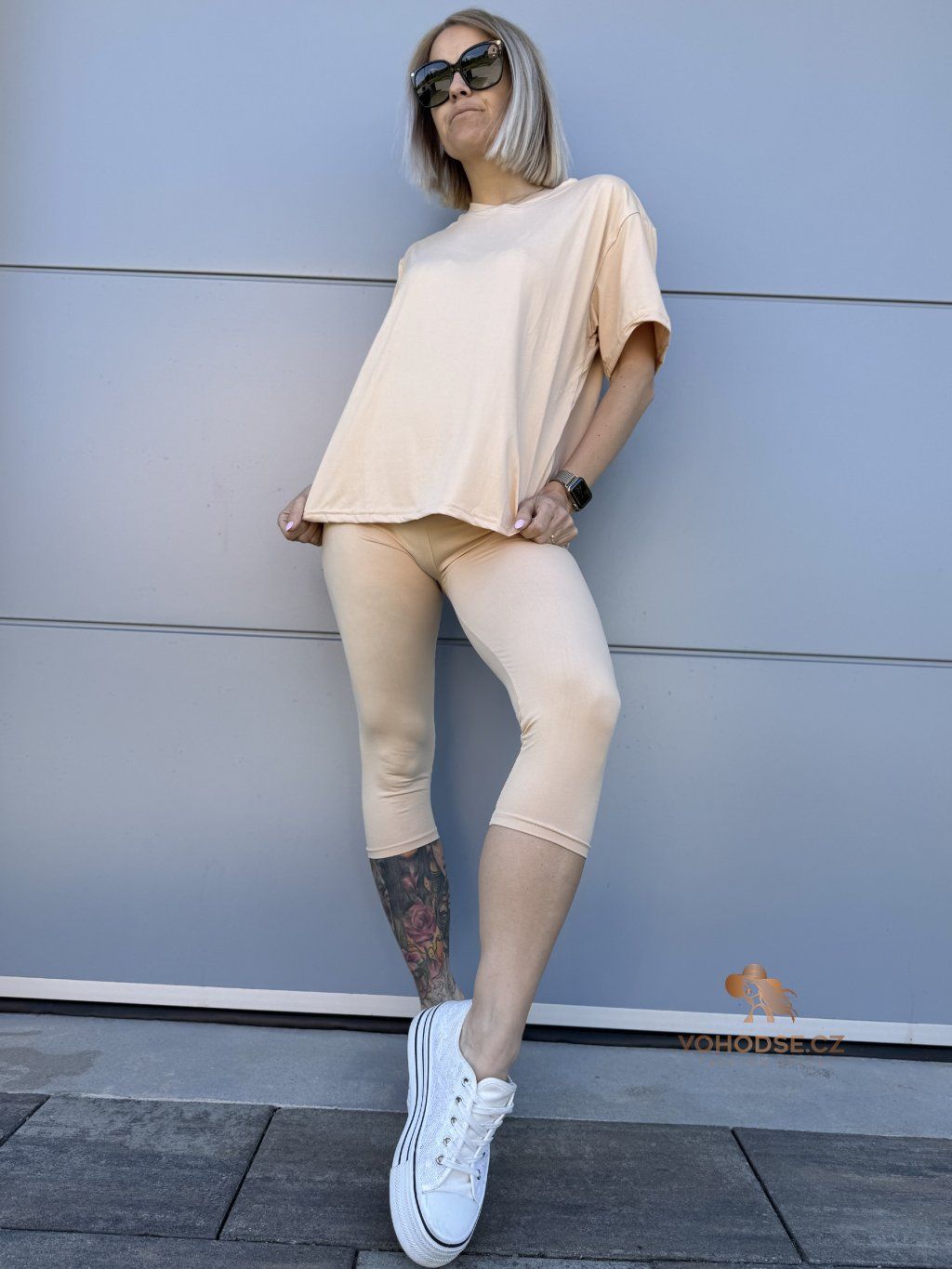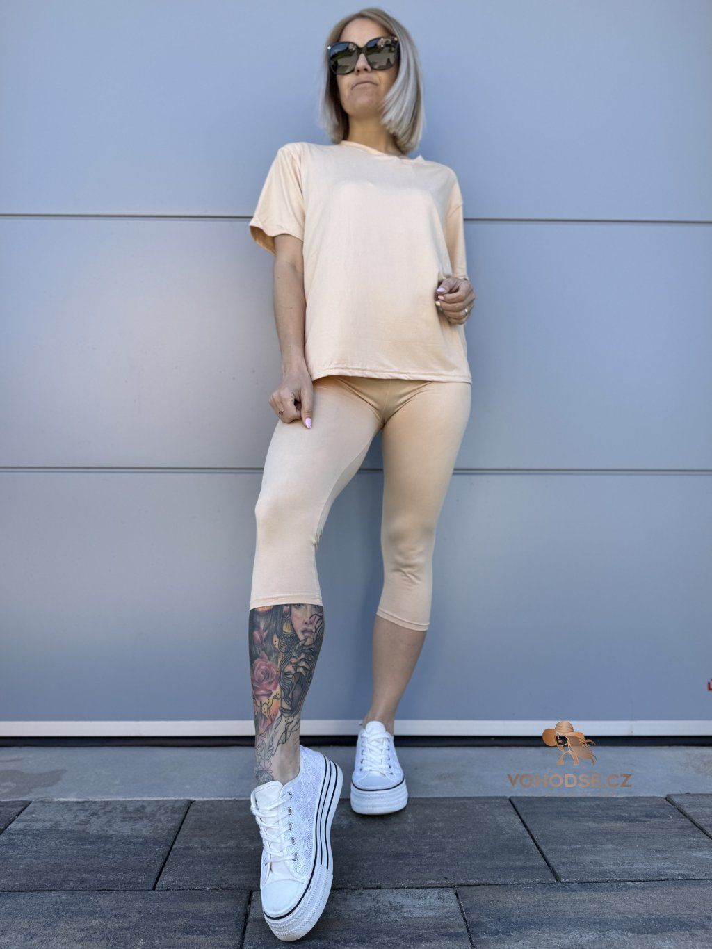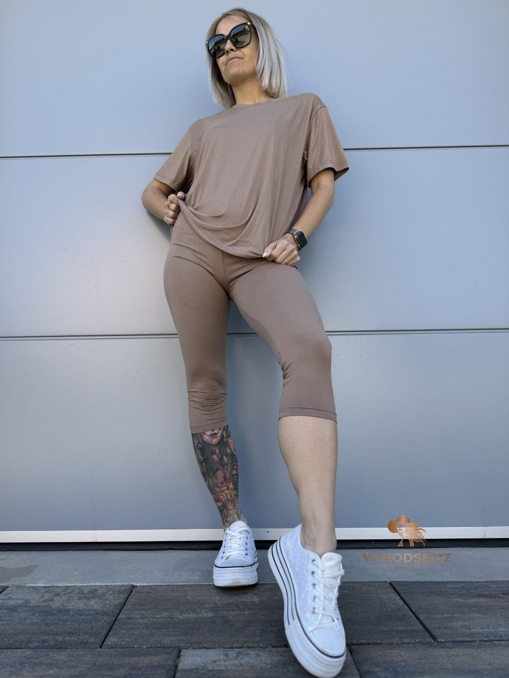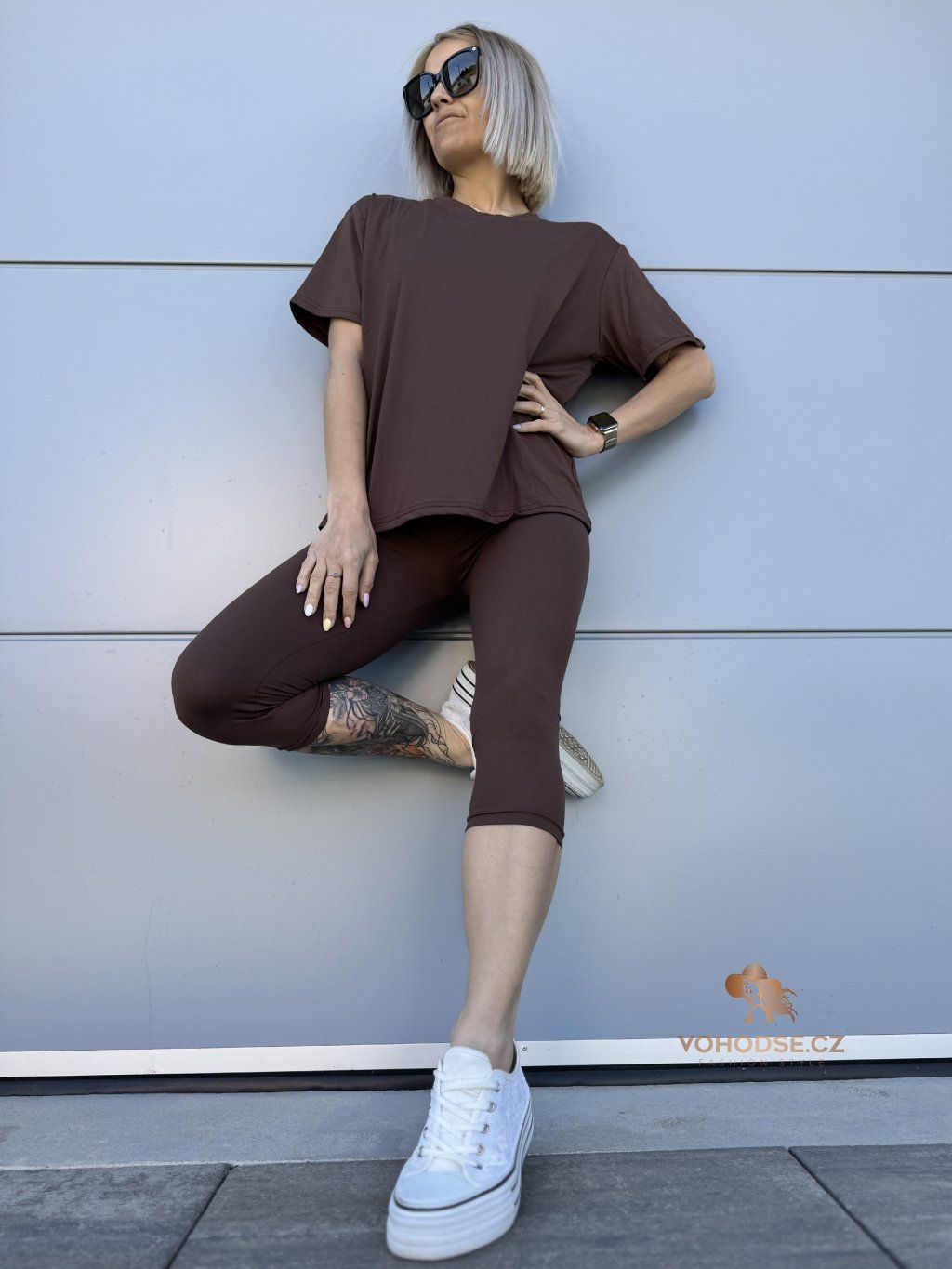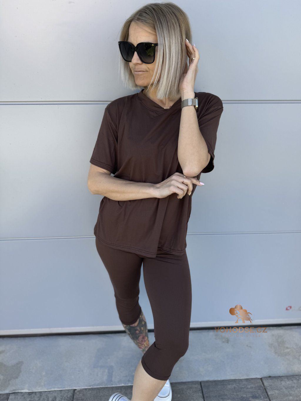 Minimalismus, který si zamiluješ. Tenhle pohodlný komplet je ideální volba na každý den - jednoduchý, stylový a hlavně maximálně komfortní. Volnější tričko splývá a neomezuje v pohybu, zatímco 3/4 legíny perfektně sedí na těle a zvýrazní postavu. Díky příjemnému, pružnému materiálu se v něm budeš cítit skvěle celý den.