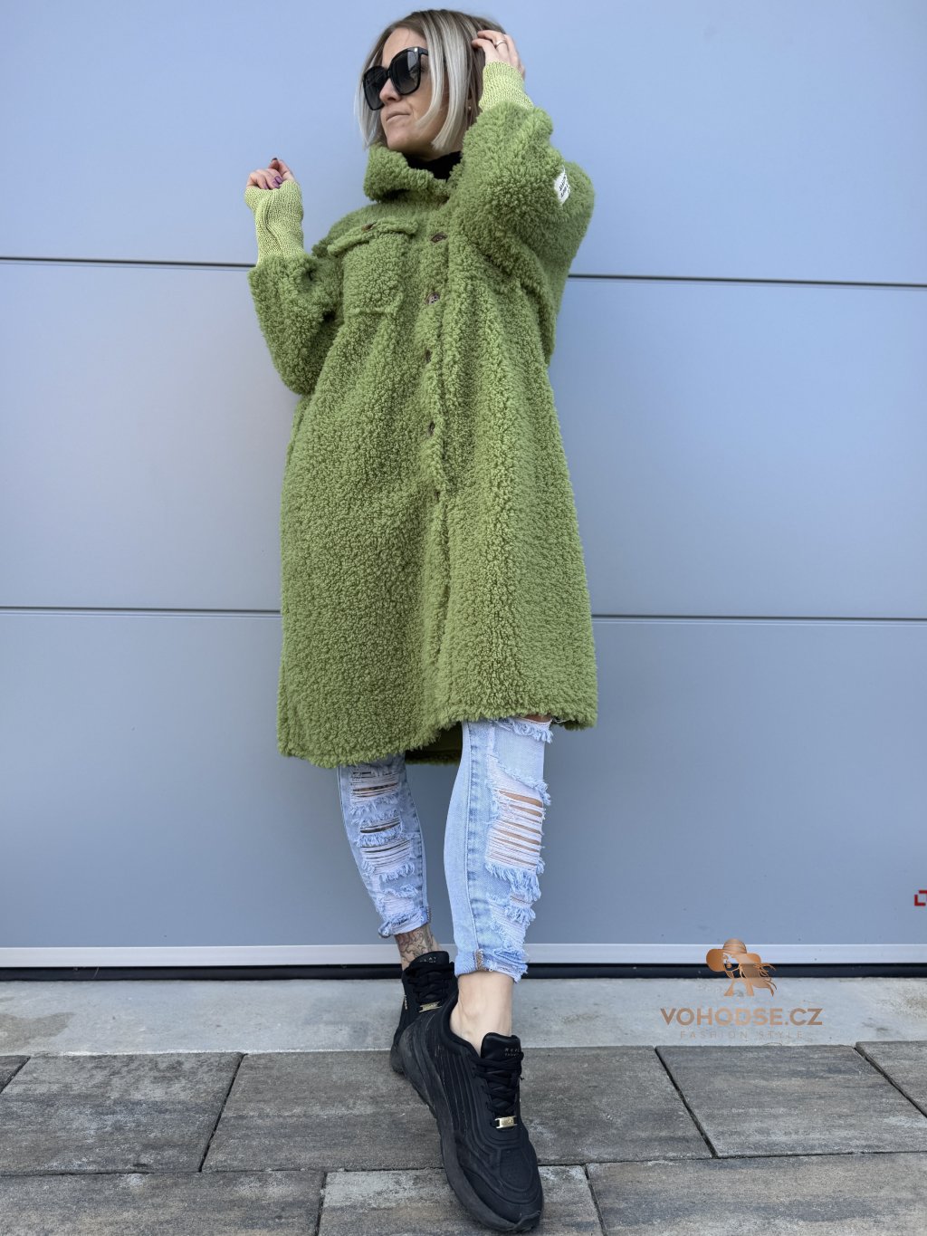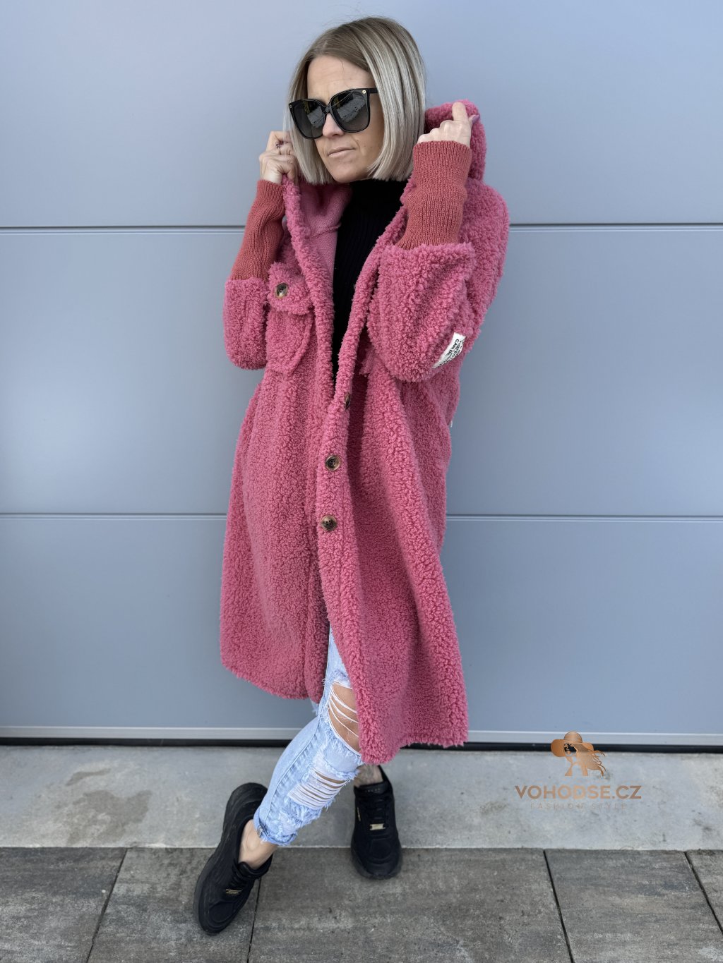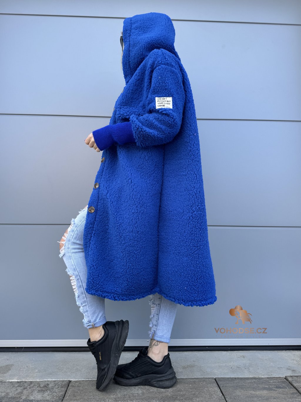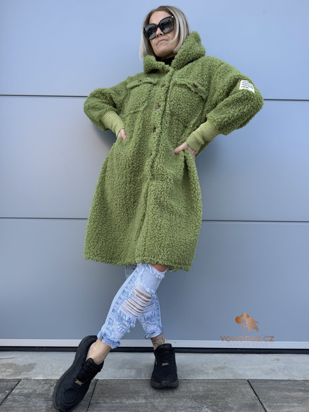 Stylový teddy kabát s kapucí je perfektní volbou pro chladnější dny kdy chcete vypadat skvěle. Měkoučký materiál je velmi příjemný na dotek a poskytuje maximální komfort při nošení. Delší střih krásně prodlužuje siluetu a hodí se jak k džínám, tak k legínám či šatům. Kabát ma praktickou kapuci, zapínání na knoflík a přední kapsy.