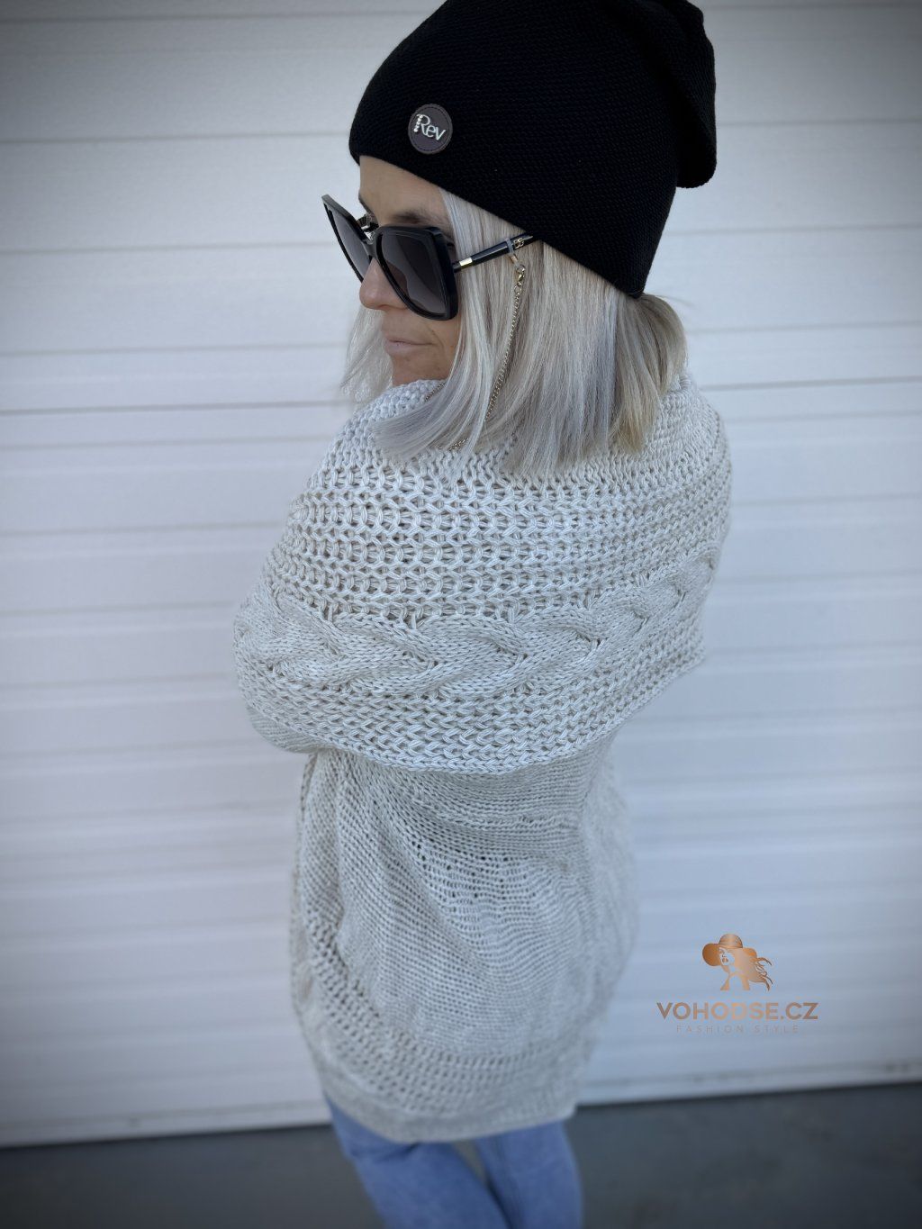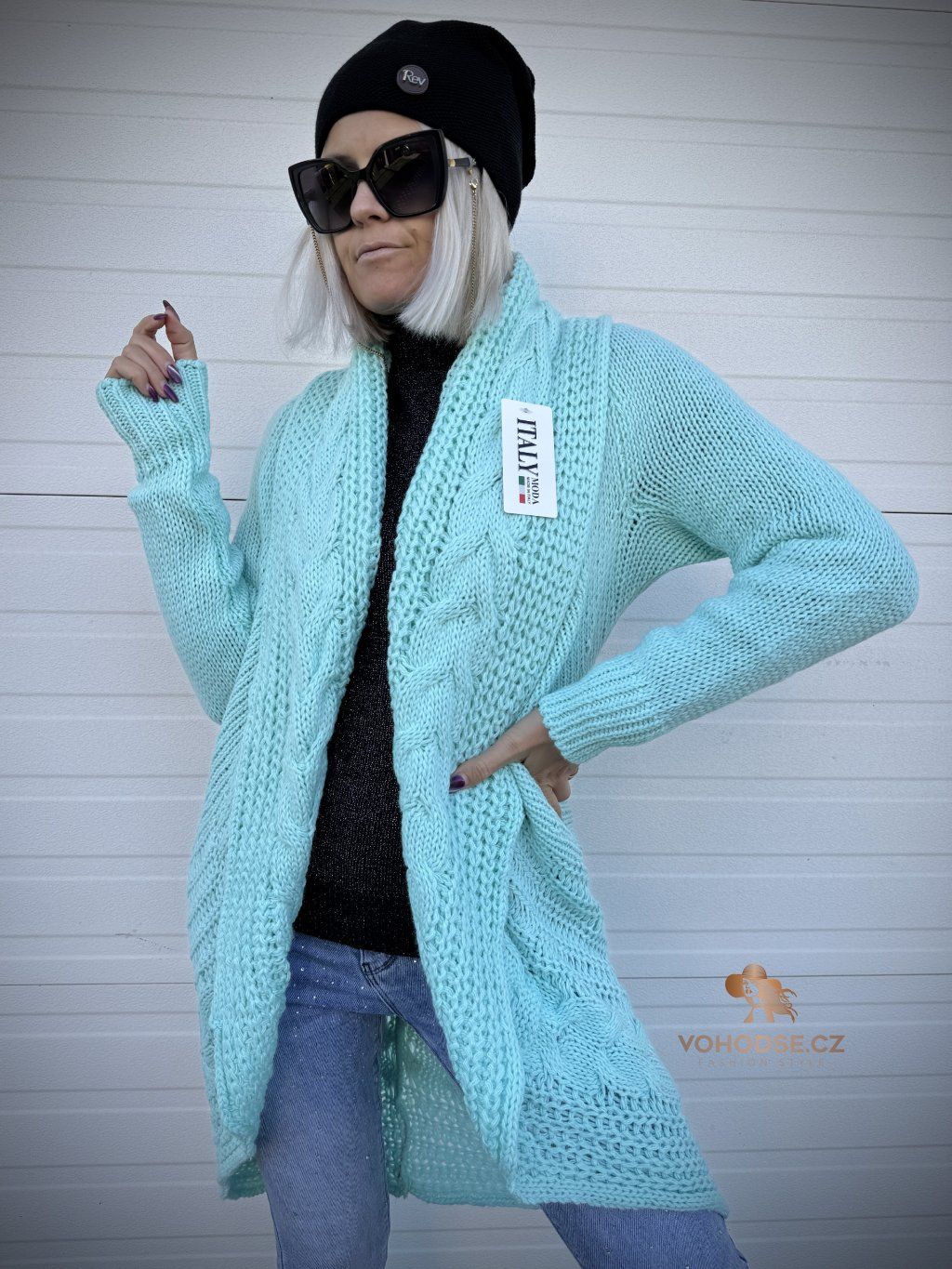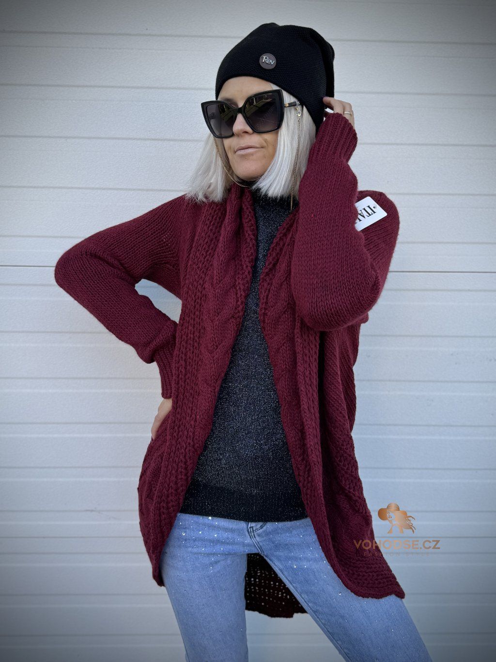 - Nadčasový dámský svetrový kardigan s copánkovým vzorem