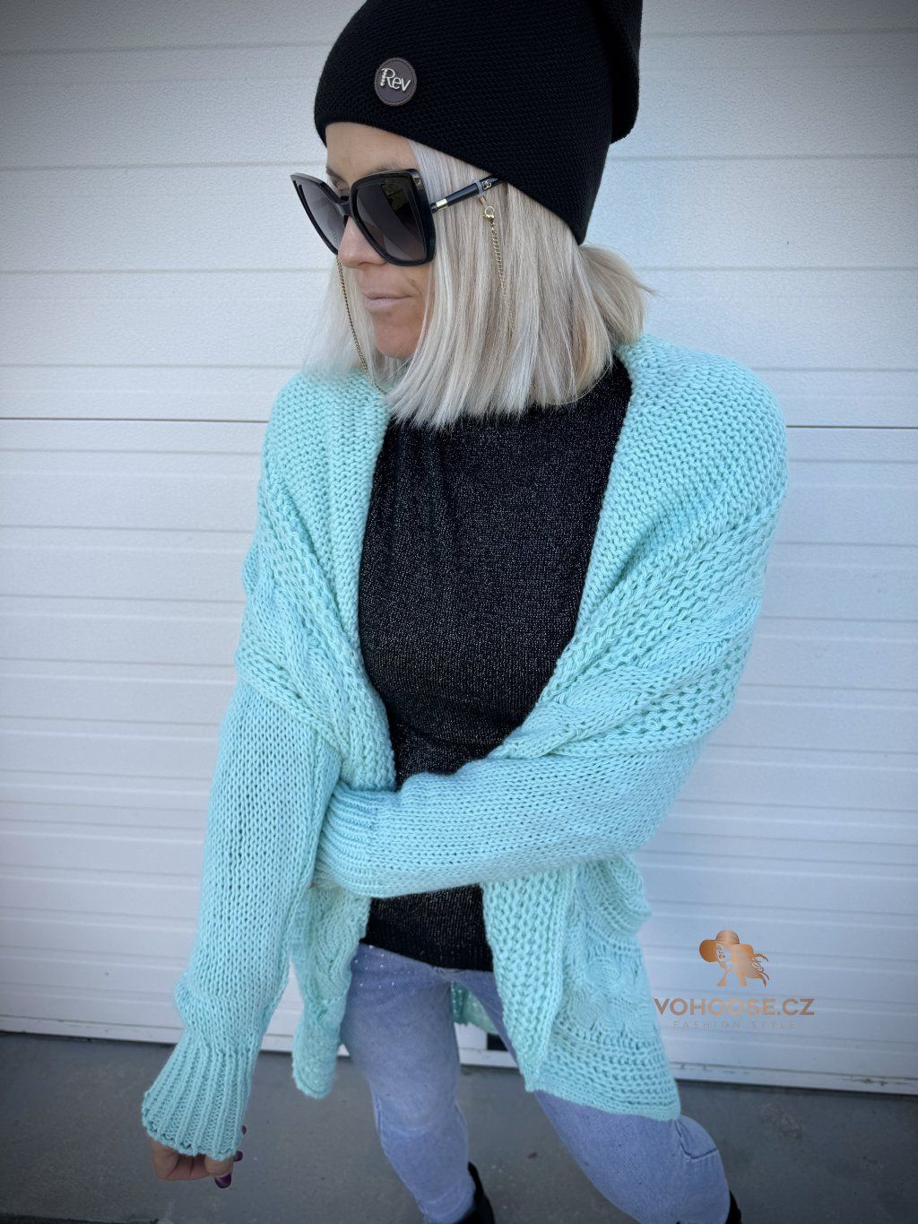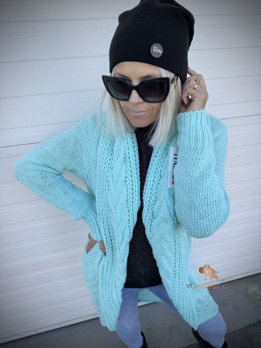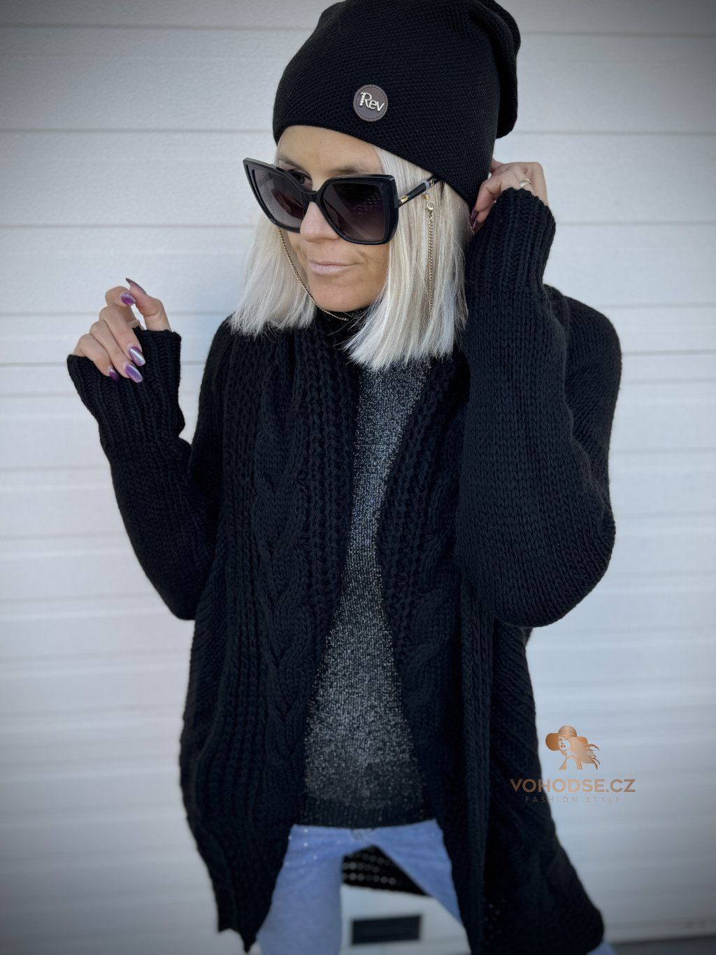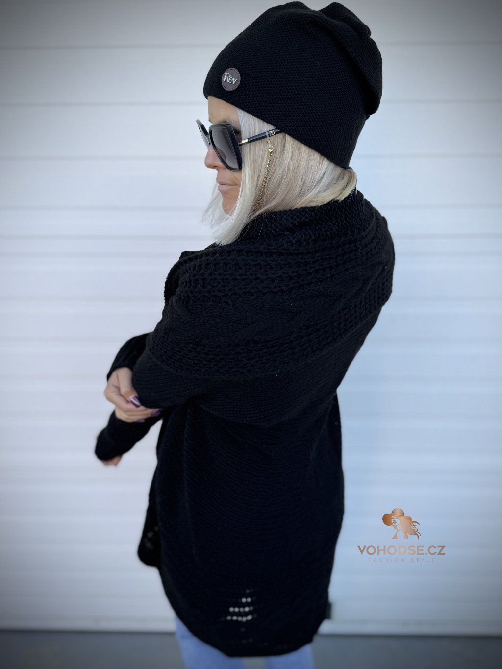 - Nadčasový dámský svetrový kardigan s copánkovým vzorem