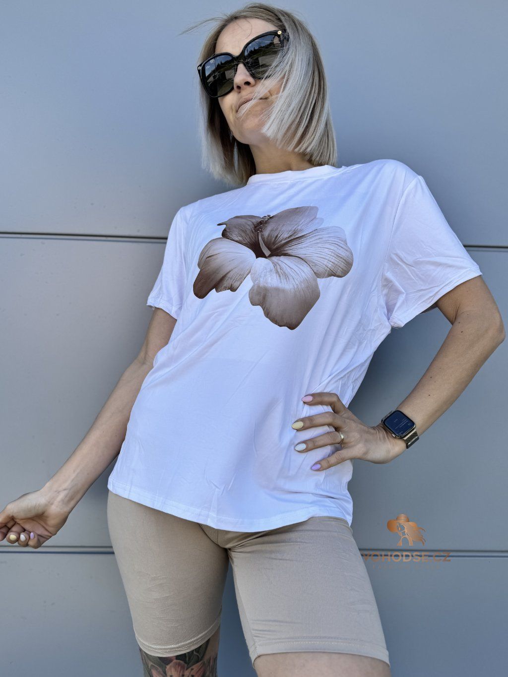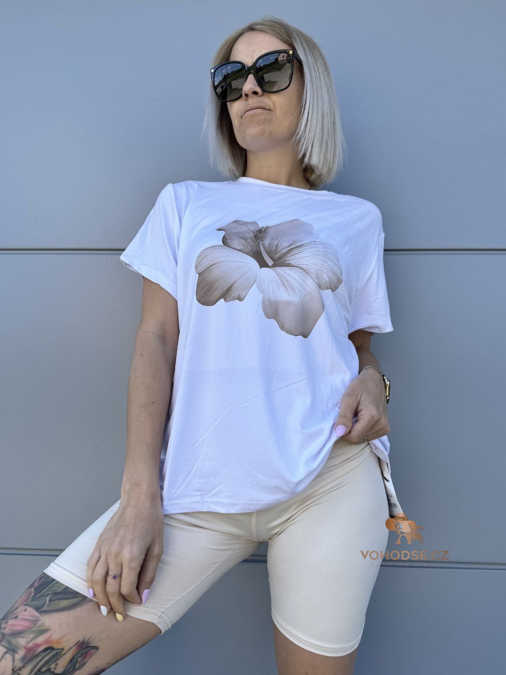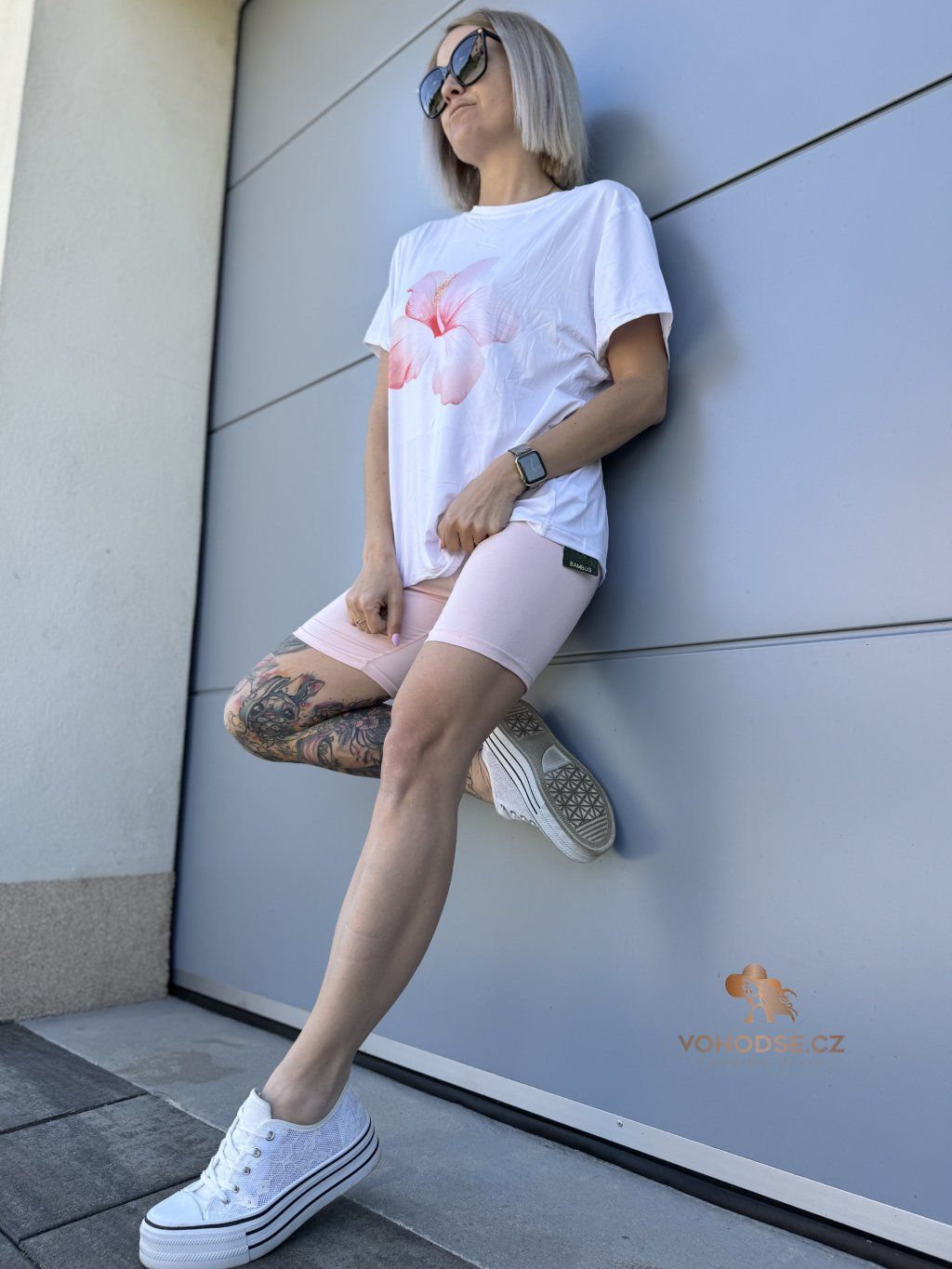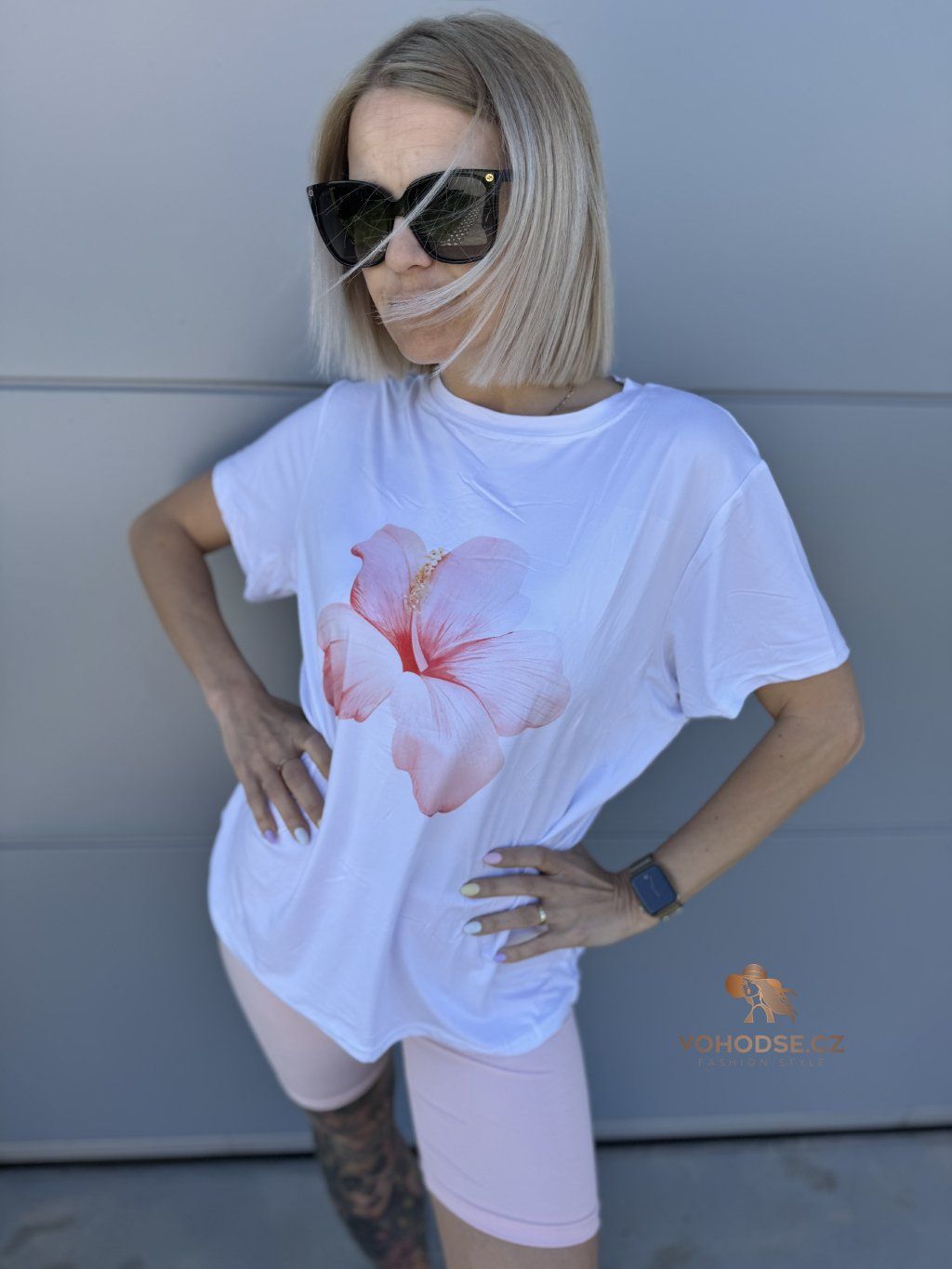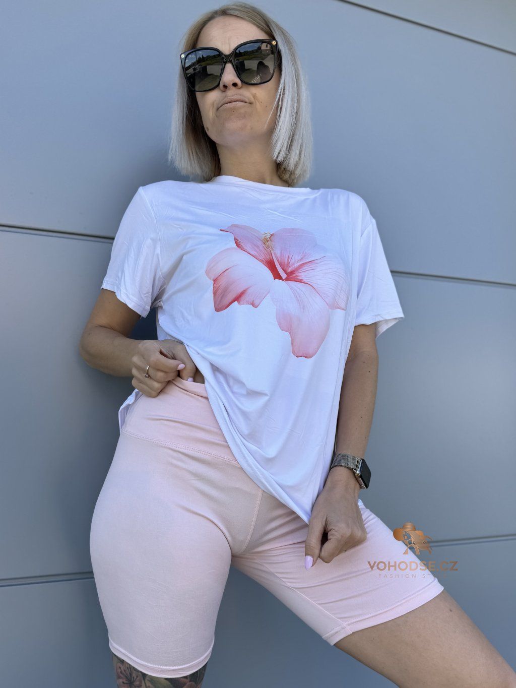 Letní komplet, ve kterém se budeš cítit pohodlně a zároveň stylově. Kombinace volného trička s výrazným květinovým motivem a elastických kraťasů je ideální na každý den - do města, na dovolenou i na pohodu. Tričko je lehké, vzdušné a krásně splývá. Kraťasy skvěle sedí, nikde netlačí a díky pružnému materiálu se přizpůsobí postavě.
