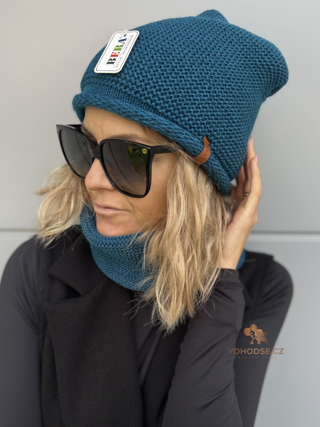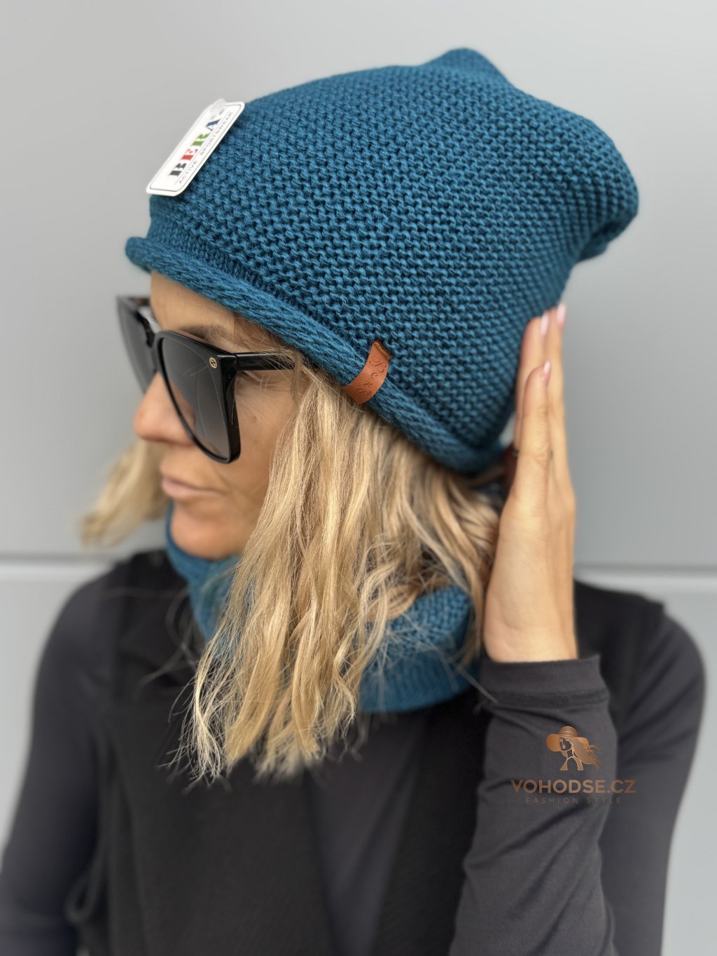 - Dámský komplet čepice a nákrčník, s nášivkou