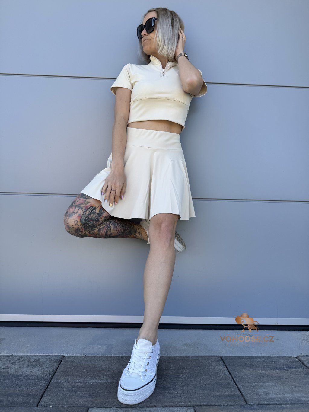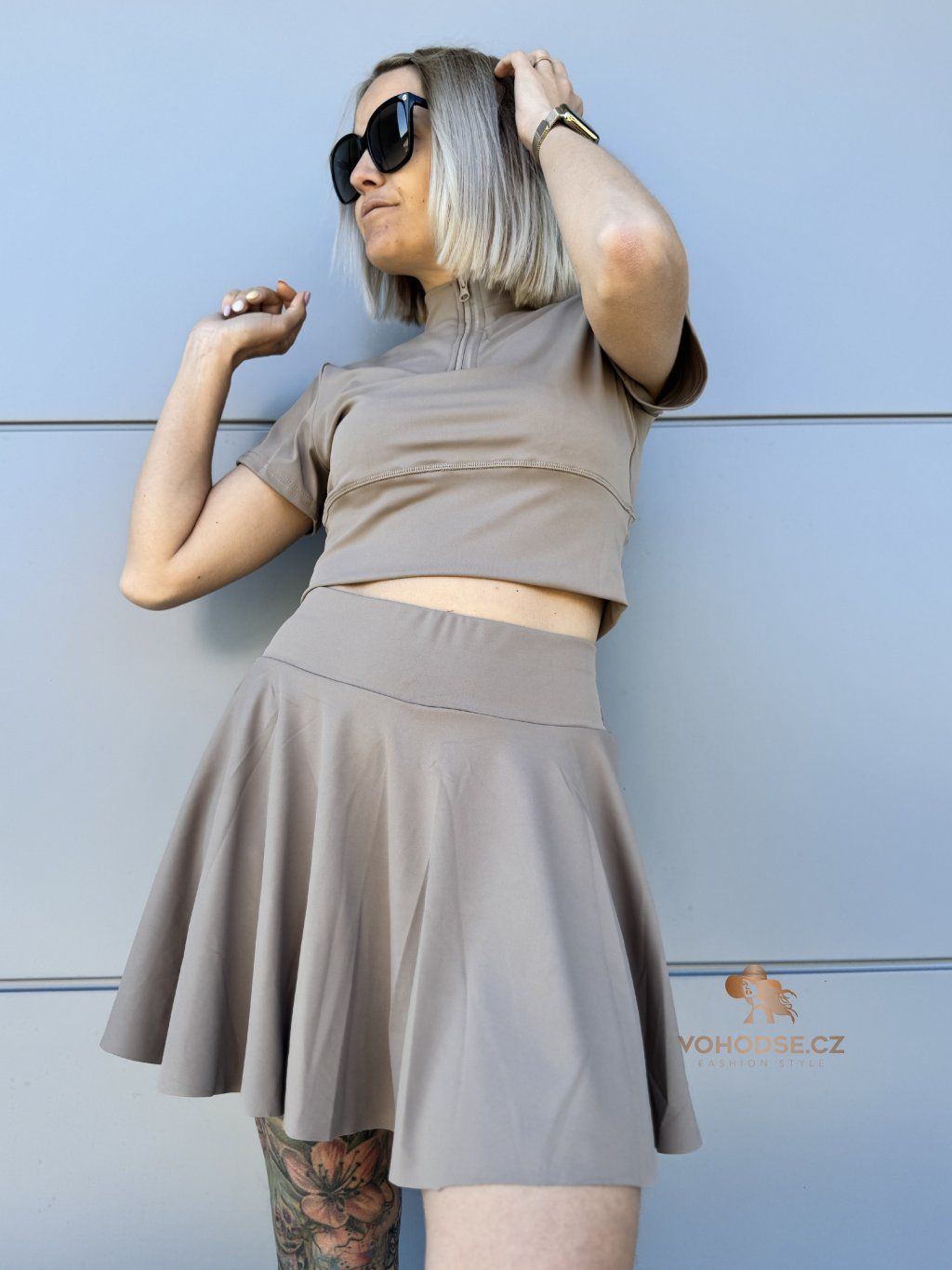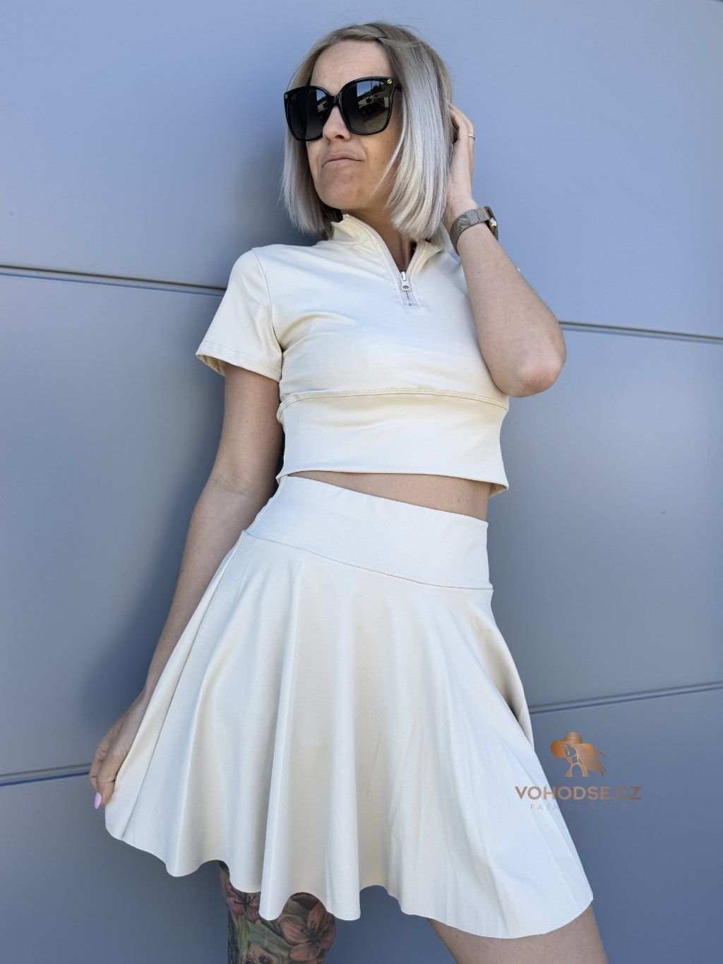 Dámský komplet crop topu a sukně s všitými karásky, který spojuje pohodlí a trendy vzhled. Ideální na léto, procházky i aktivní dny - můžeš se cítit pohodlně a zároveň skvěle vypadat. Nosit můžeš jako komplet nebo kombinovat zvlášť.