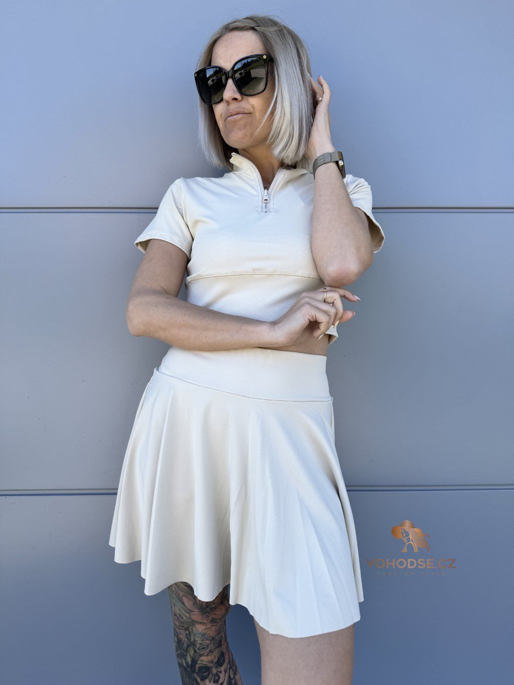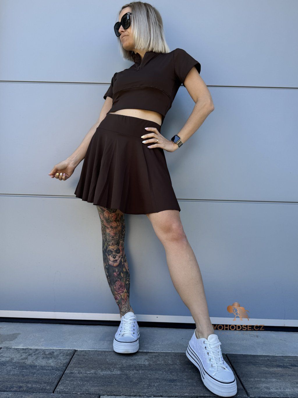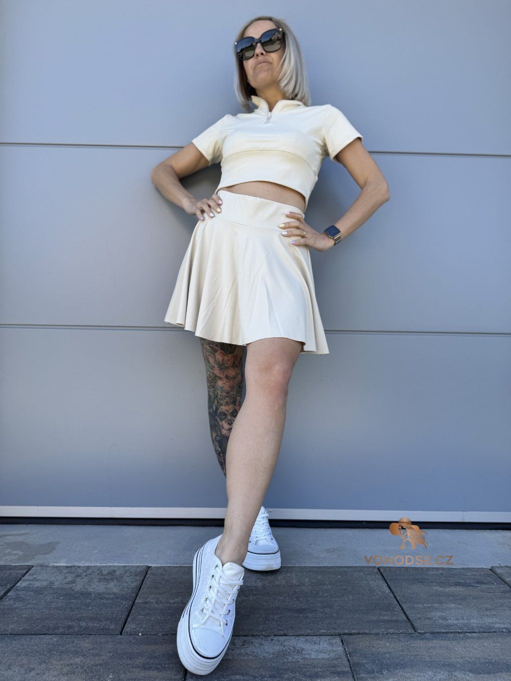 Dámský komplet crop topu a sukně s všitými karásky, který spojuje pohodlí a trendy vzhled. Ideální na léto, procházky i aktivní dny - můžeš se cítit pohodlně a zároveň skvěle vypadat. Nosit můžeš jako komplet nebo kombinovat zvlášť.