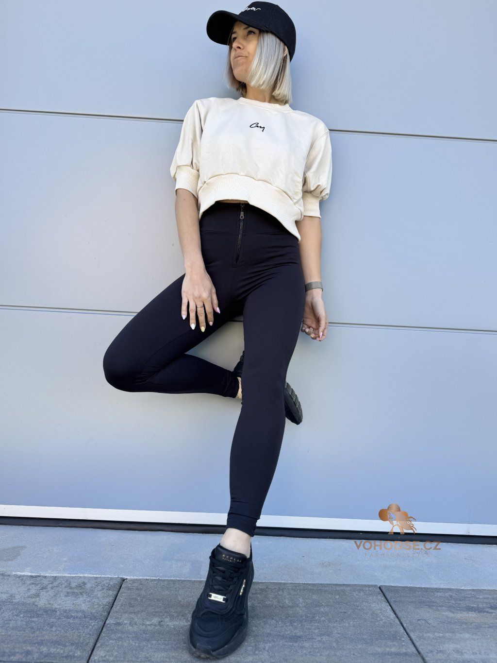 Dokonalý komplet pro pohodlí i styl v jednom. Krátká mikina v trendy střihu krásně doplňuje přiléhavé legíny s vysokým pasem - outfit, ve kterém se budeš cítit skvěle doma, ve městě i na cestách.
