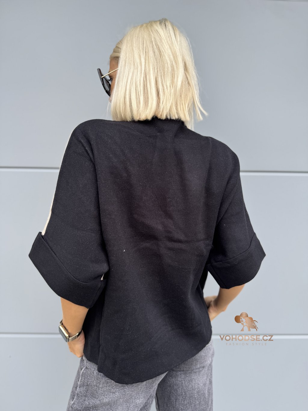 - Netopýří rukávy , menší stojáček u krku , zadní díl je jednobarevný