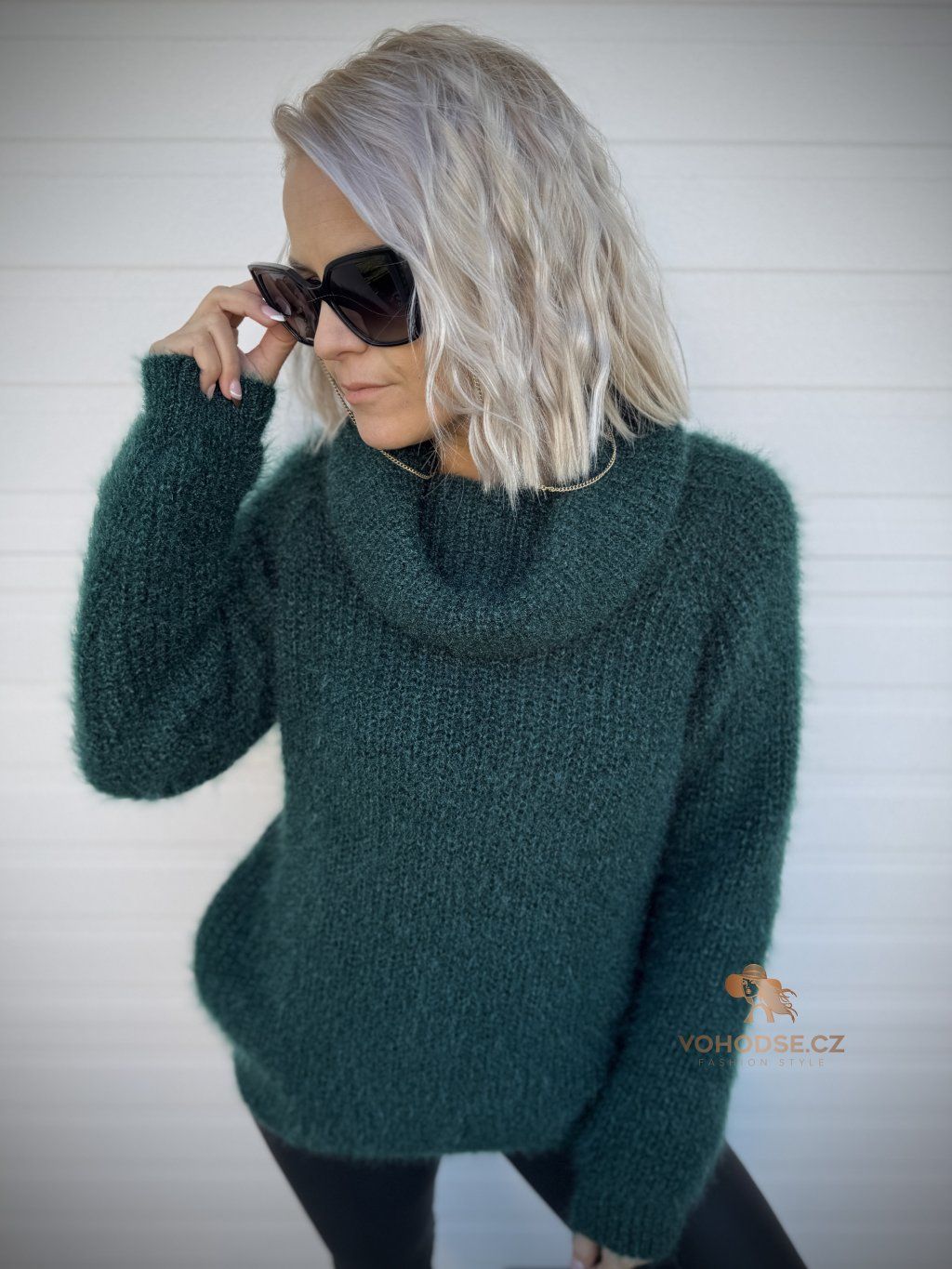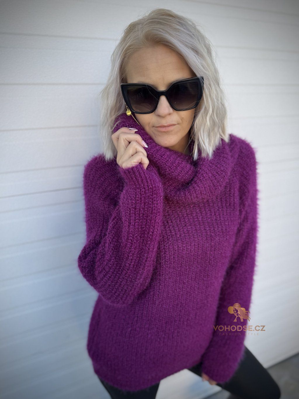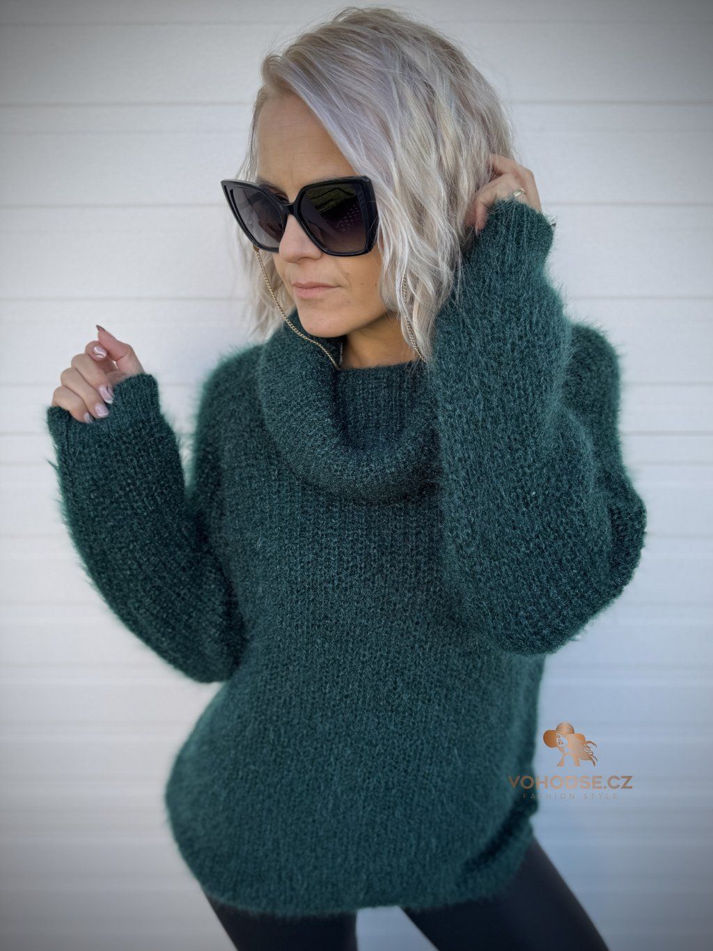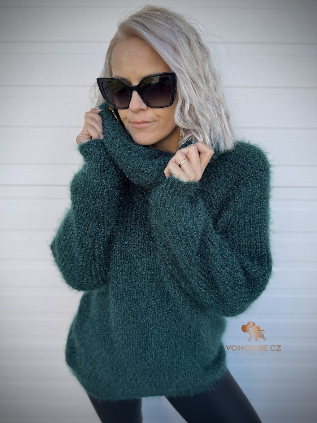 - Huňatý dámský svetr s rolákem u krku
